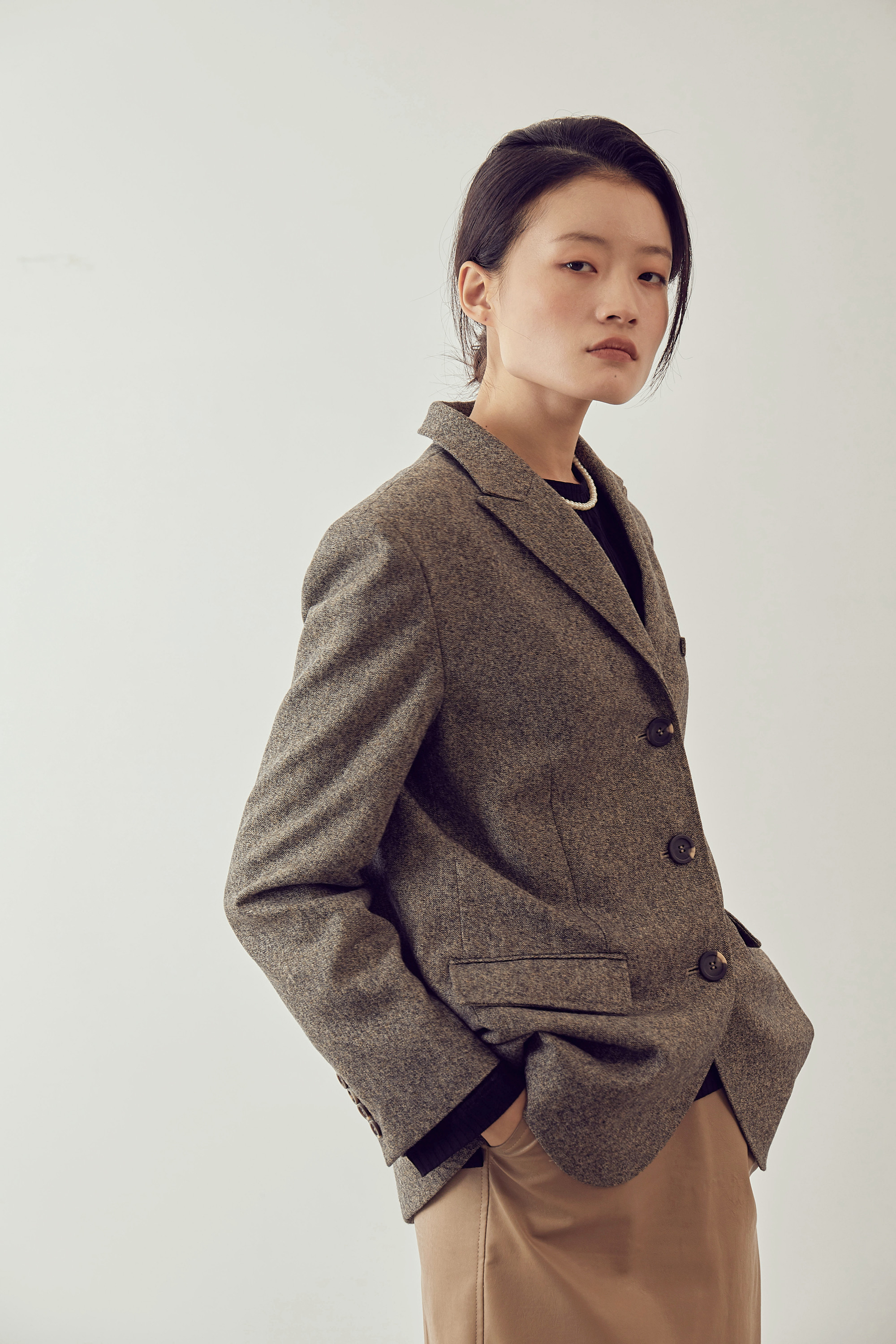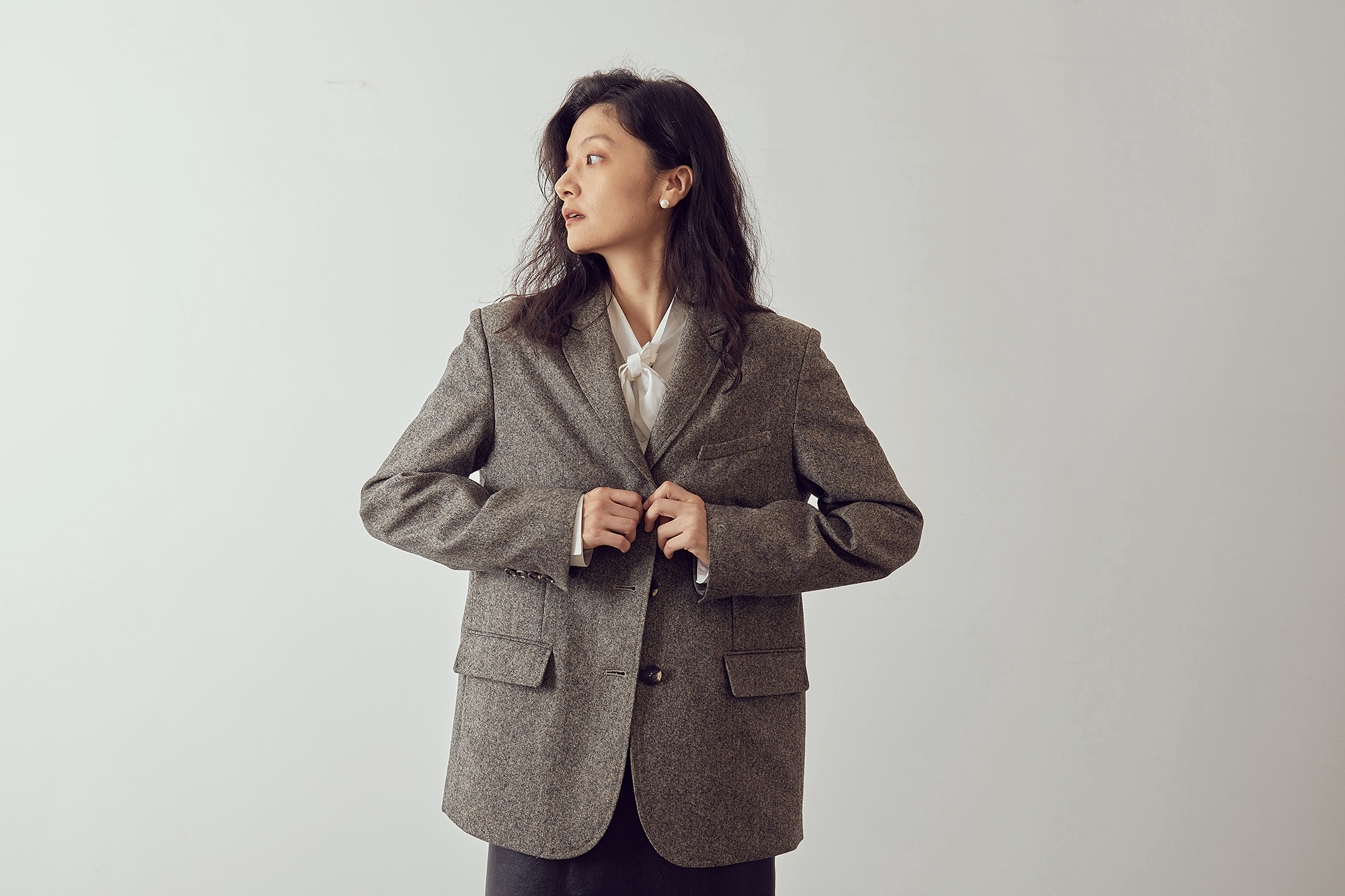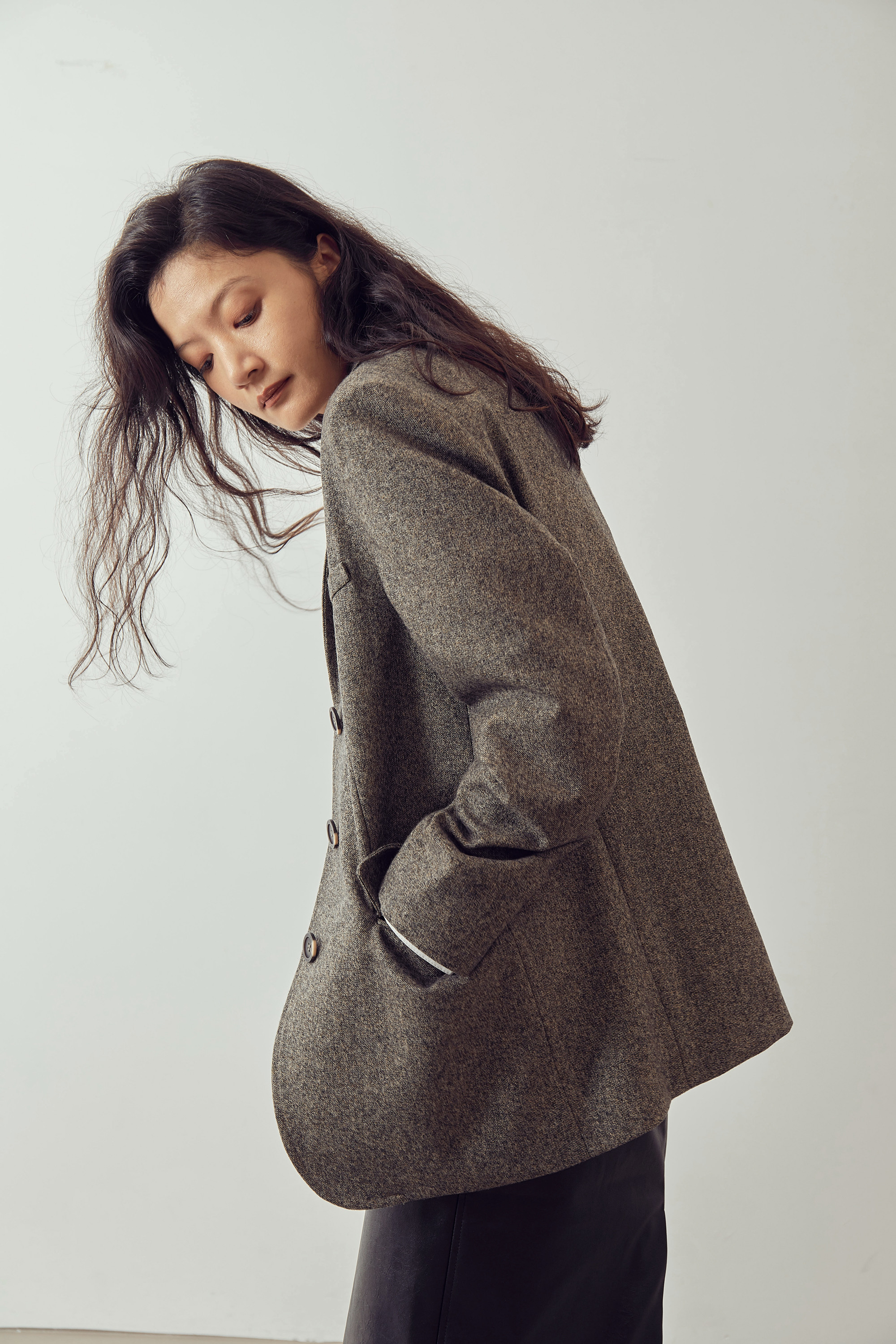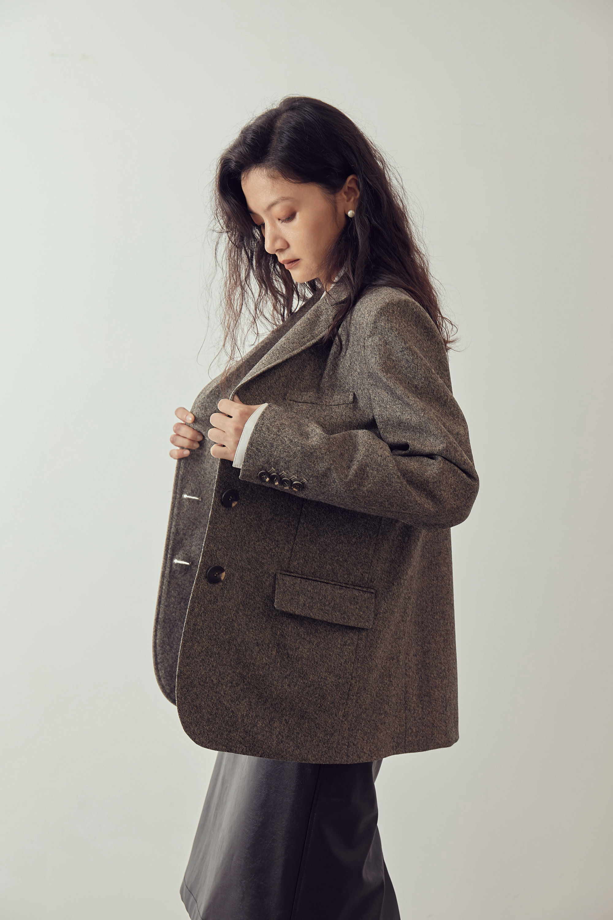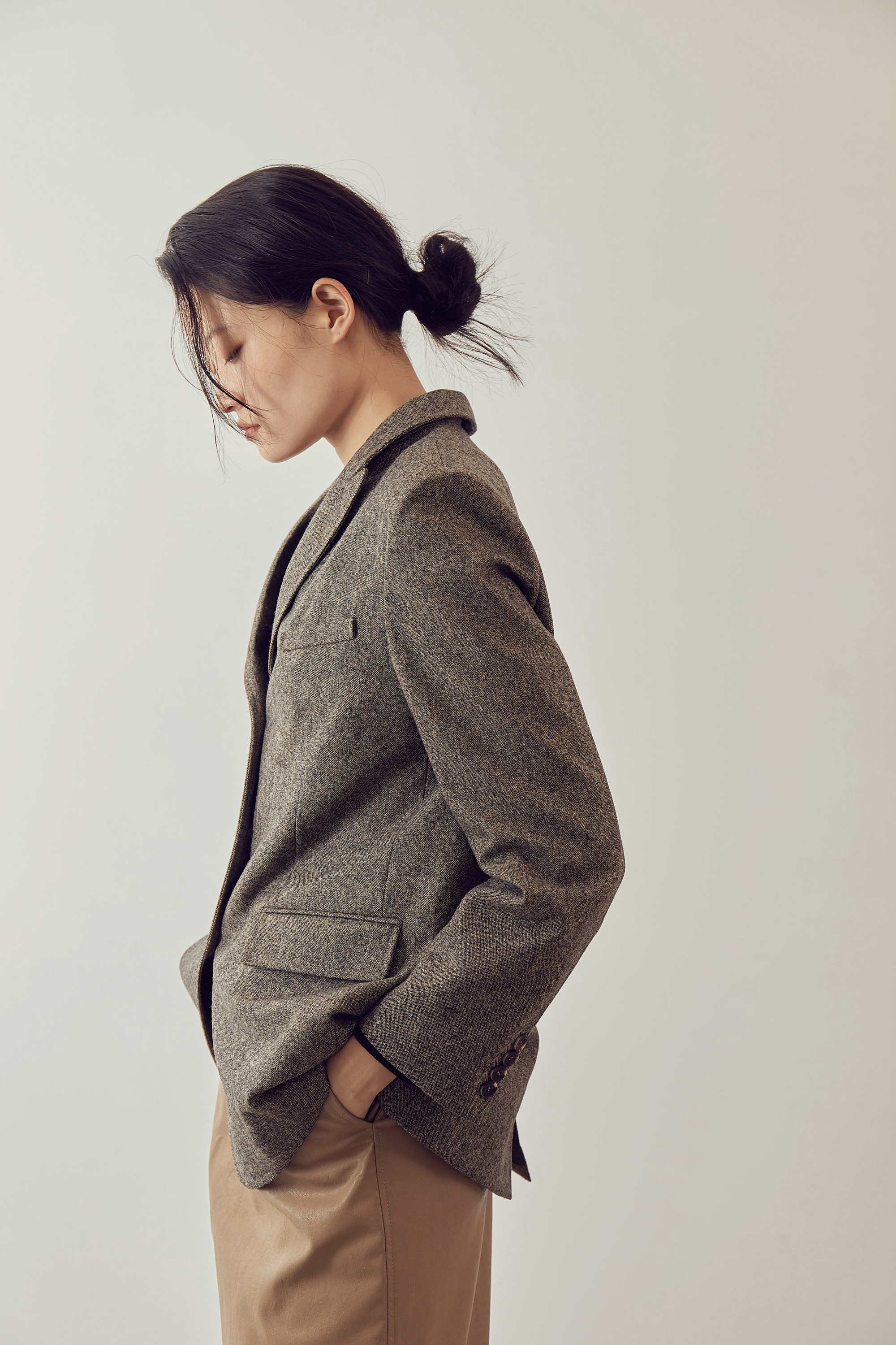 브라운계열의 여러 원사가 섞인 보카시 울 원단으로 제작되었습니다.