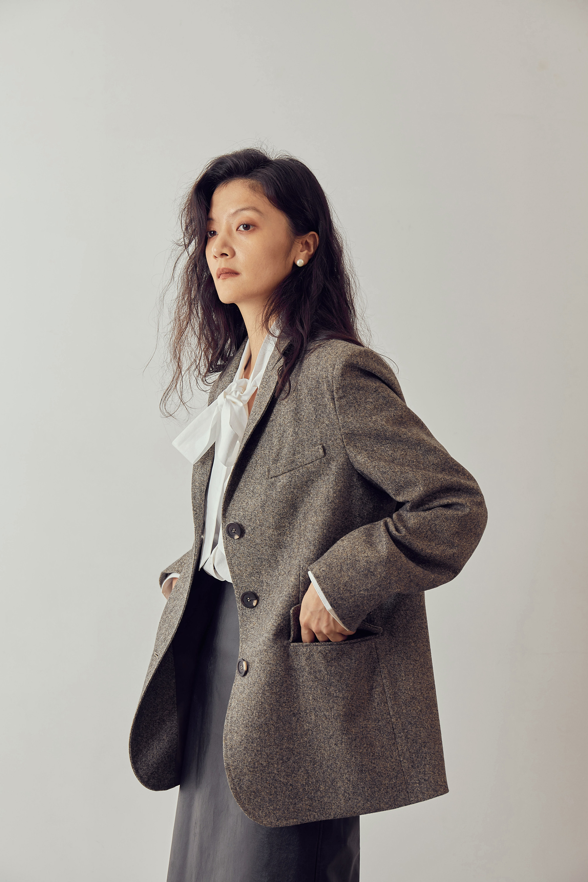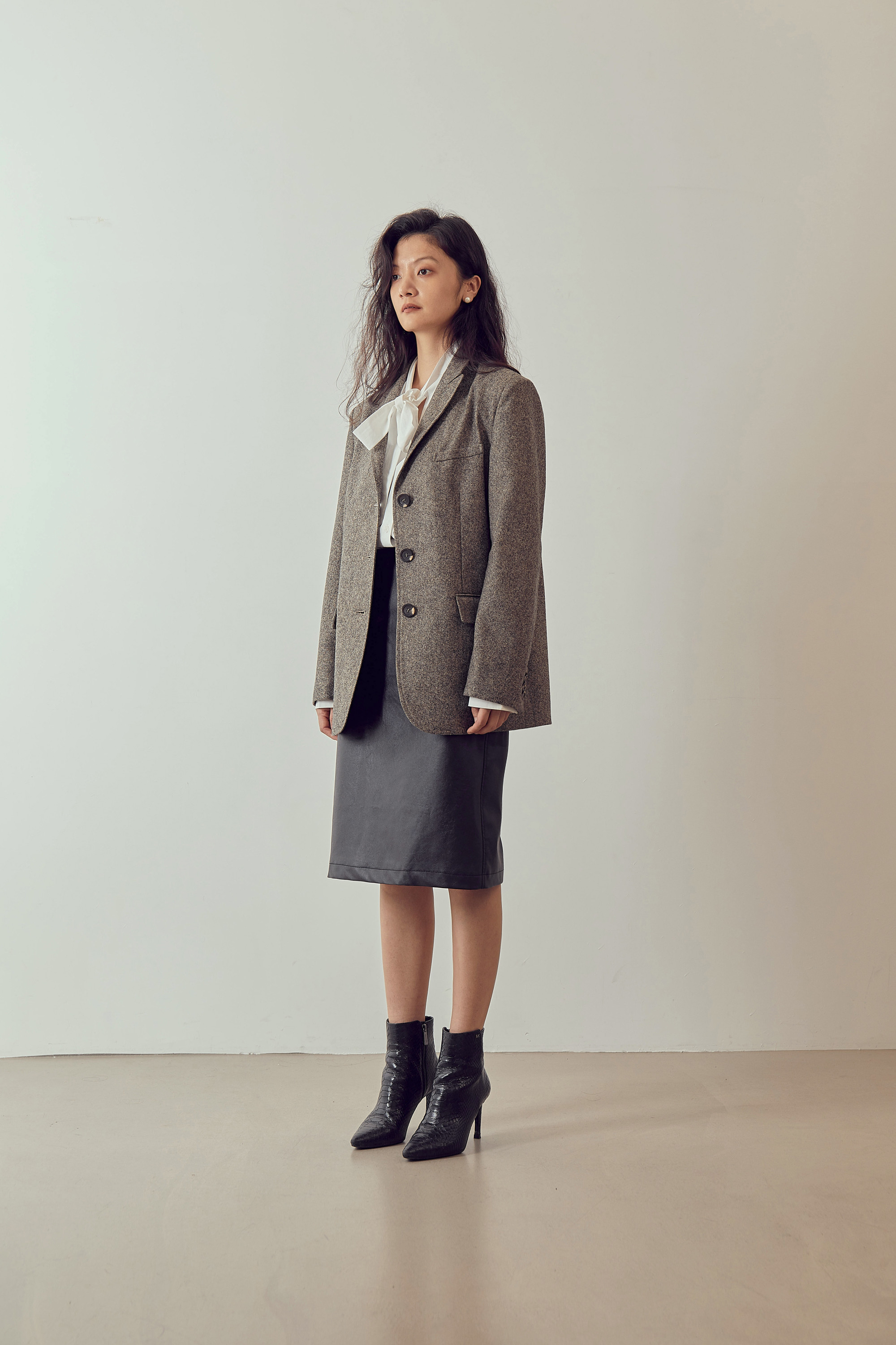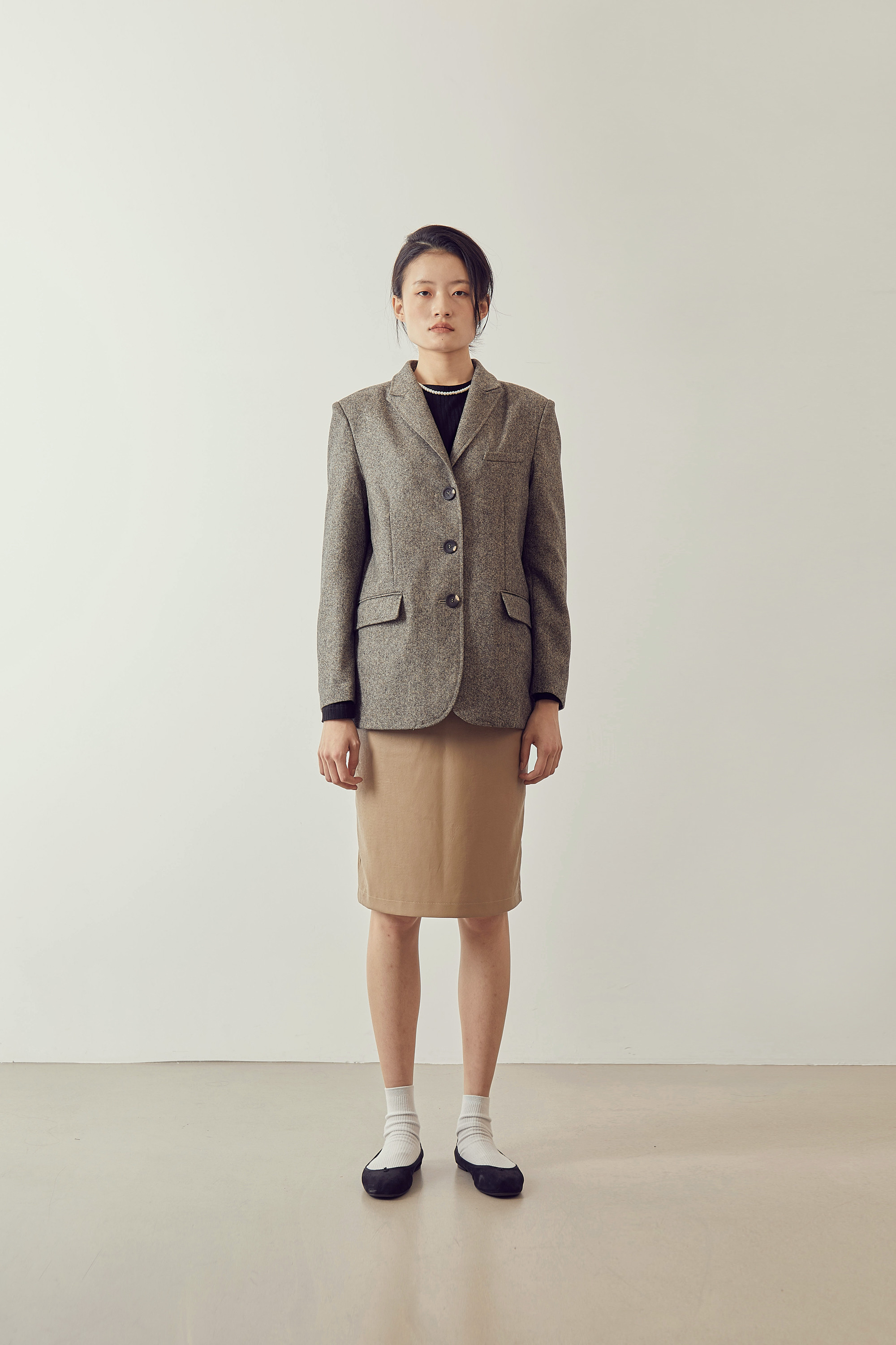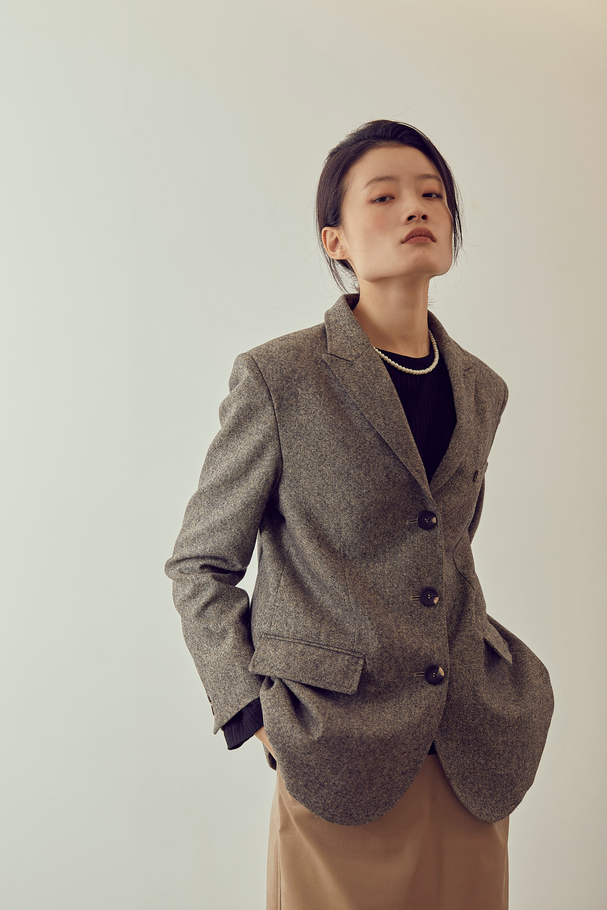 브라운계열의 여러 원사가 섞인 보카시 울 원단으로 제작되었습니다.