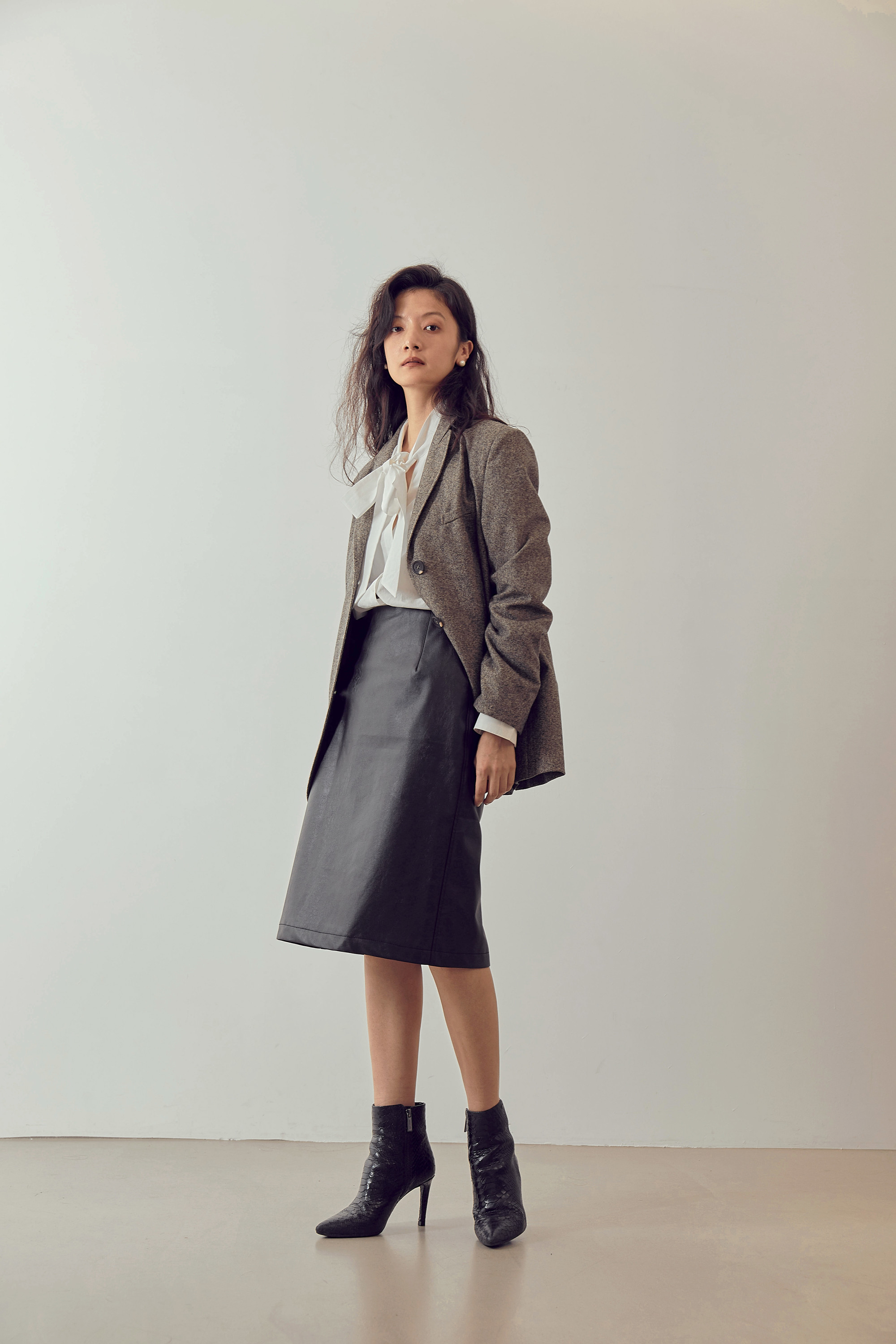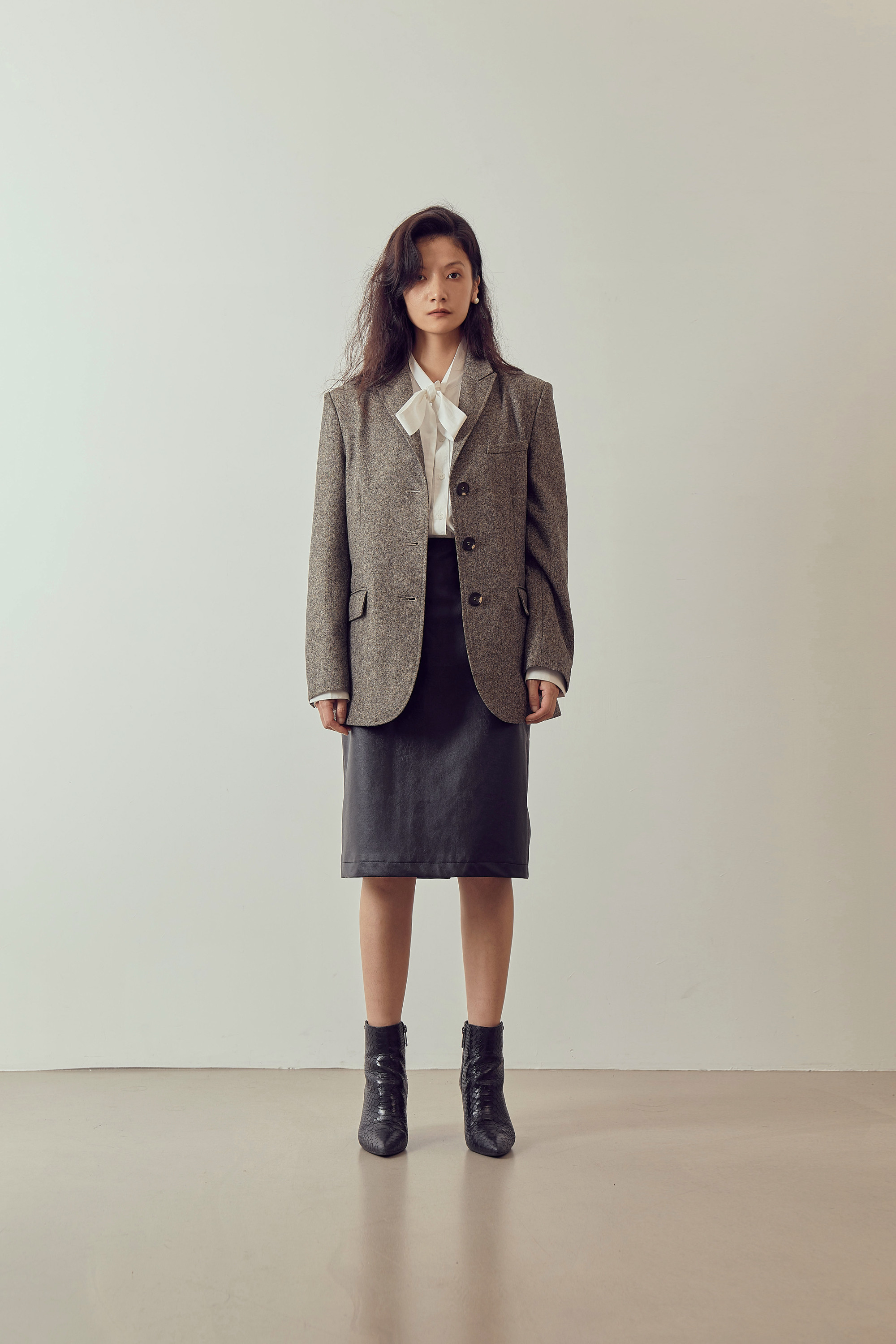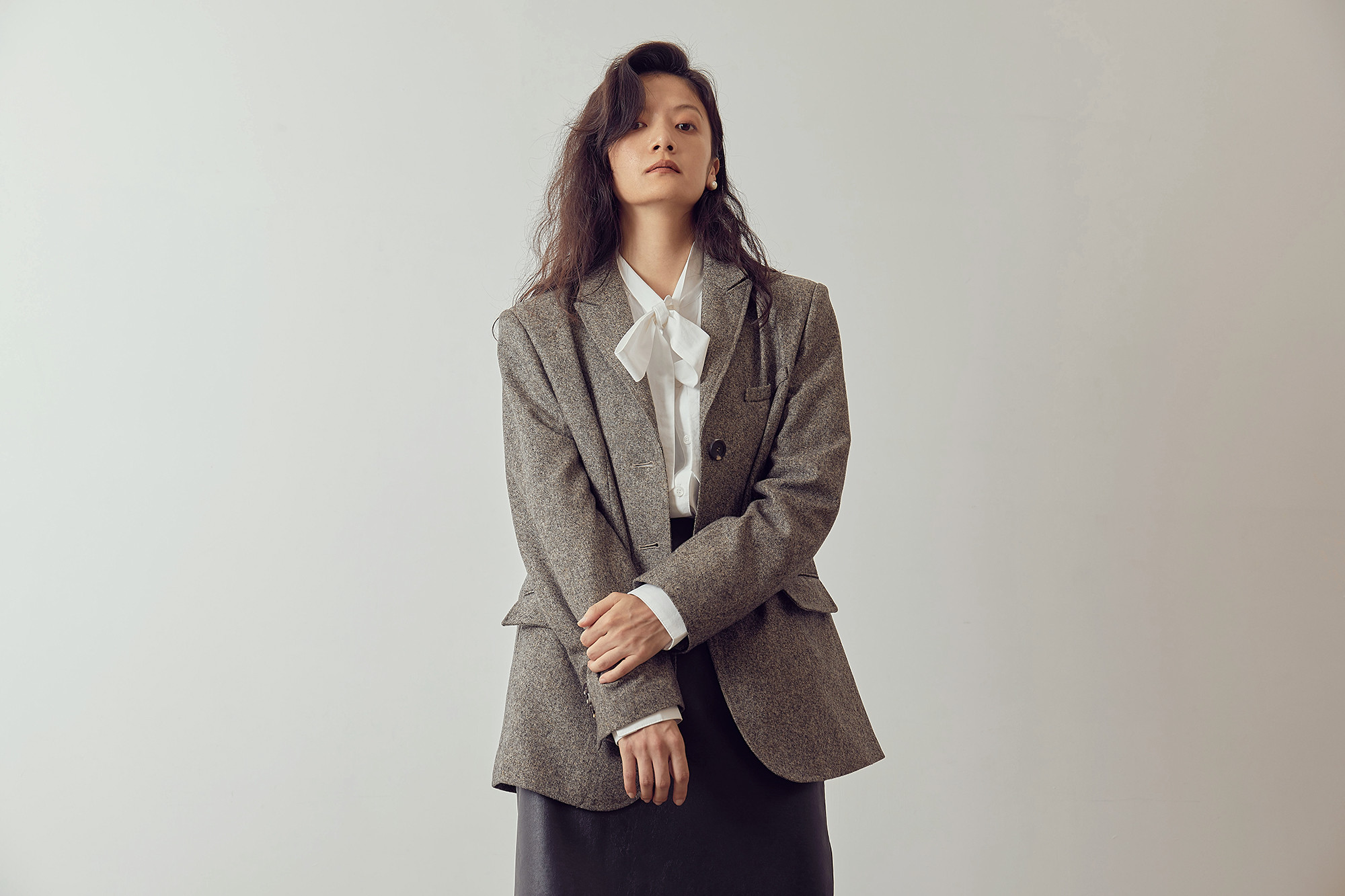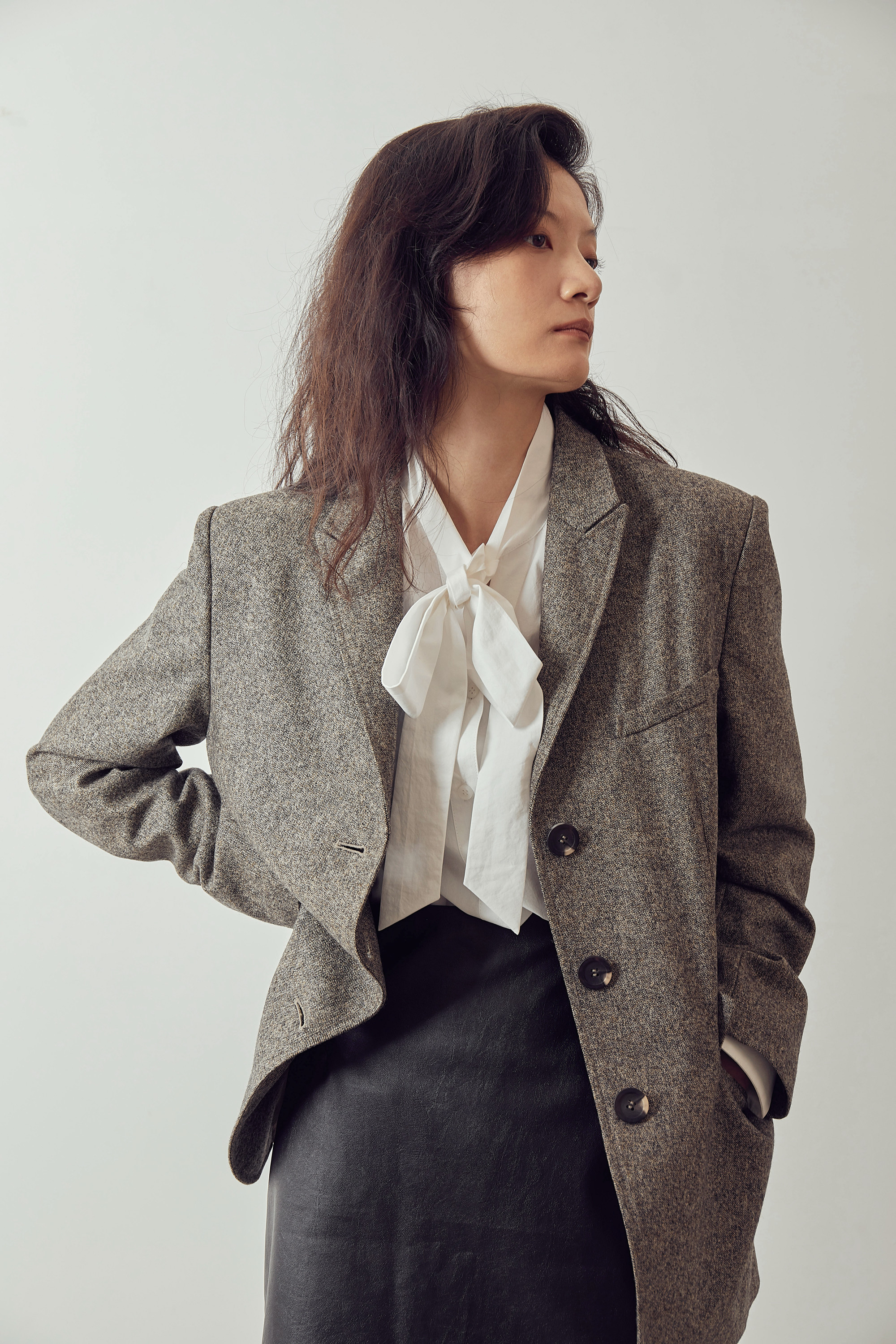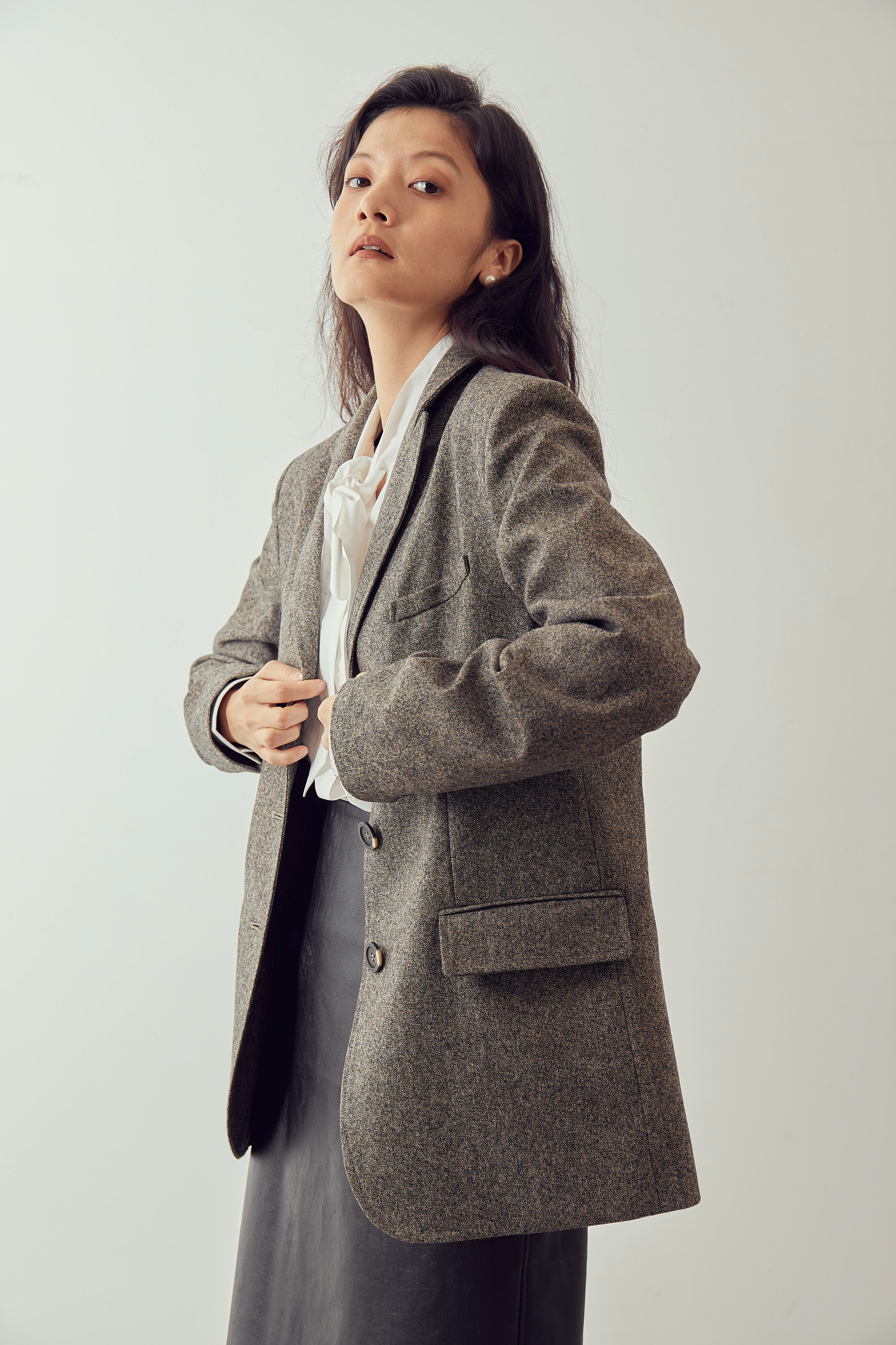 브라운계열의 여러 원사가 섞인 보카시 울 원단으로 제작되었습니다.