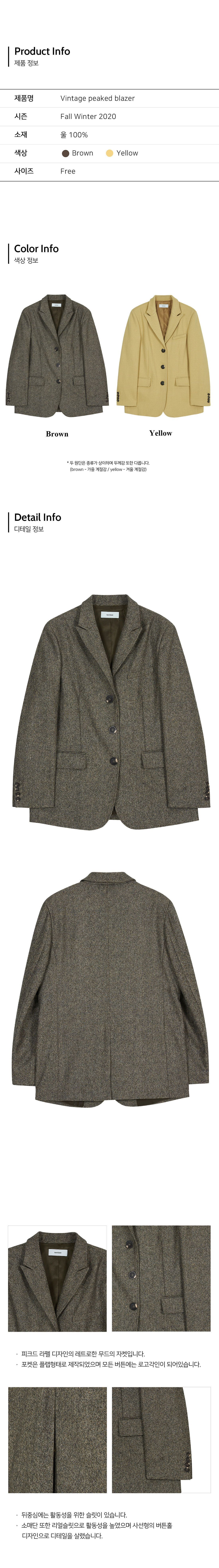 베이직한 디자인의 피크드 칼라 자켓입니다.