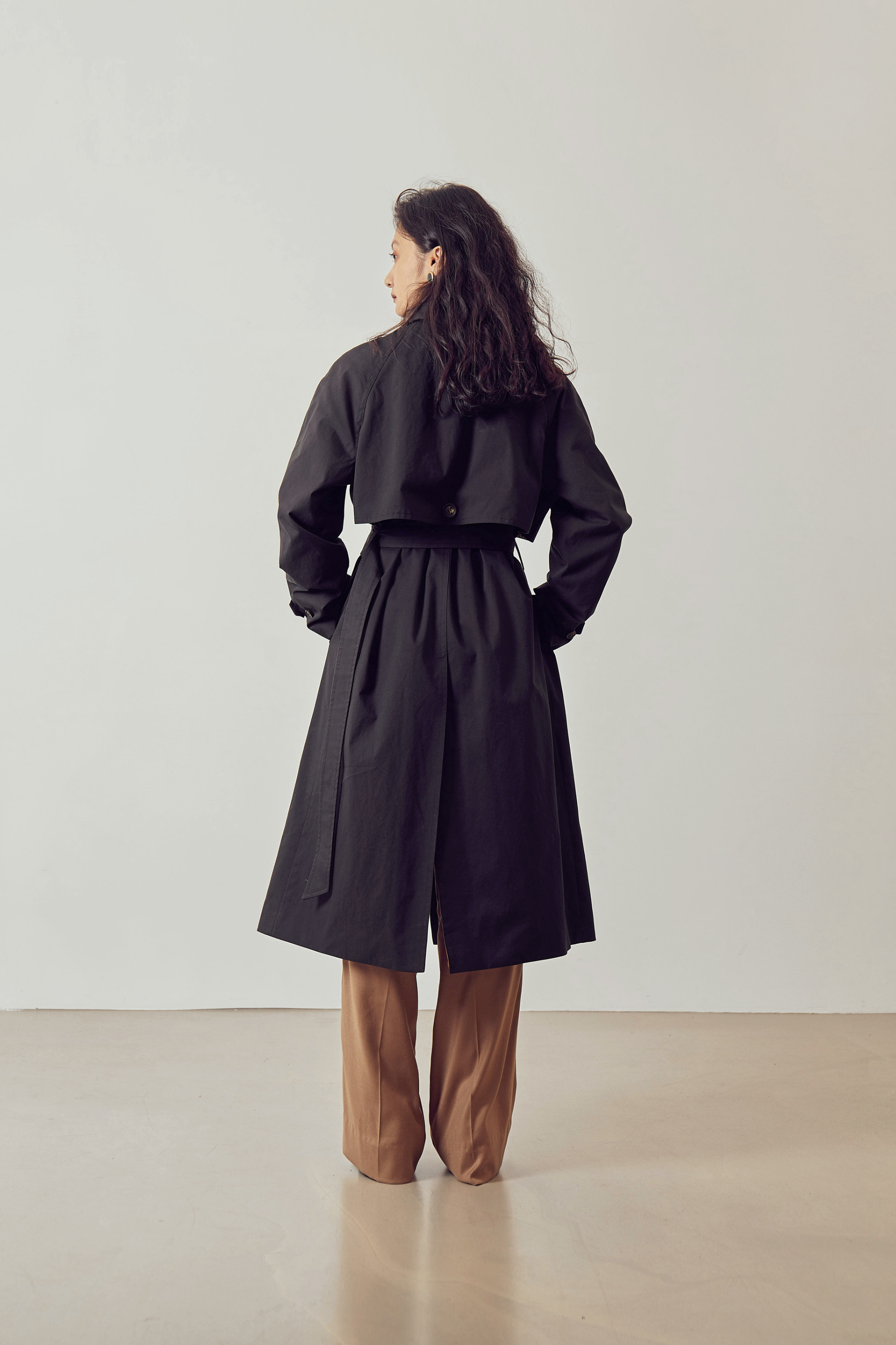 밑단은 원단 안쪽에서 투명사로 마감하여 깔끔한 실루엣을 보여줍니다.