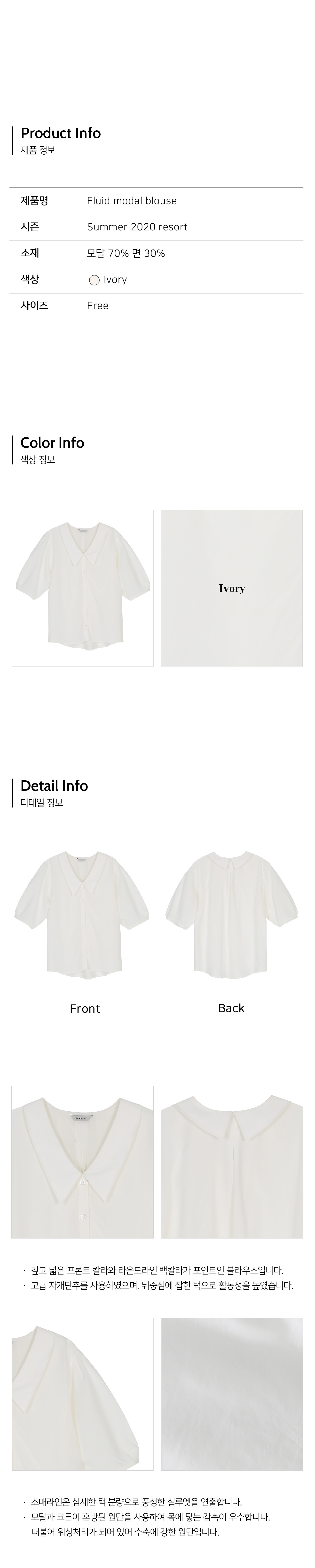 워싱처리된 모달 혼방 원단으로 제작되어 몸에 닿는 감촉이 좋은 블라우스입니다.