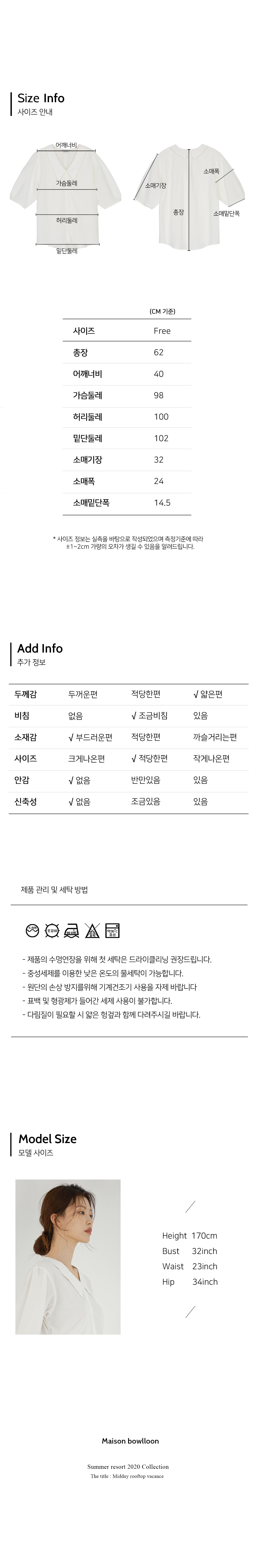 총장 62 / 어깨 40 / 가슴둘레 98 / 허리둘레 100 / 소매기장 32