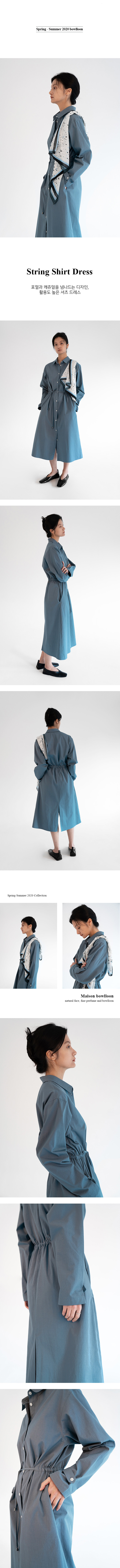 허리 스트링과 소매 비조 디테일의 셔츠 드레스입니다.