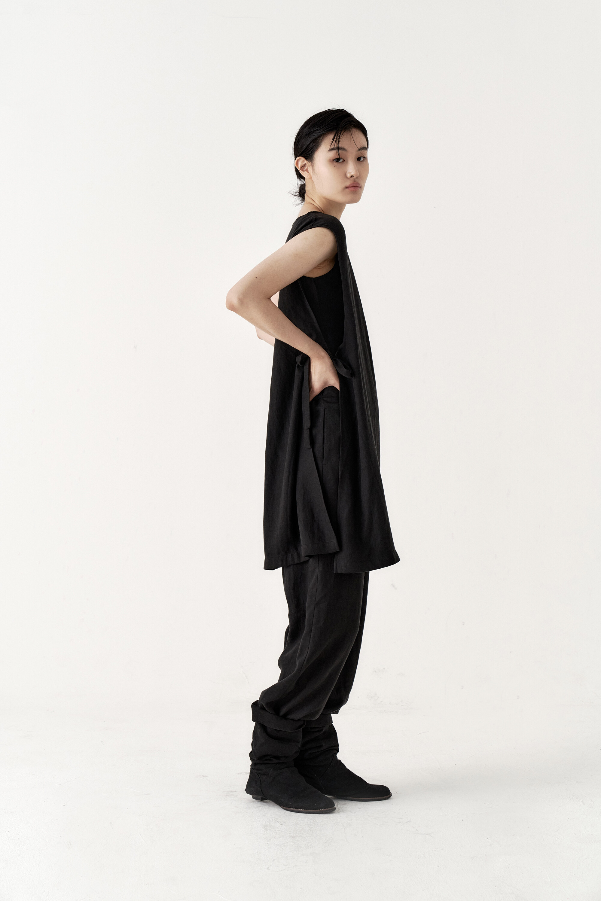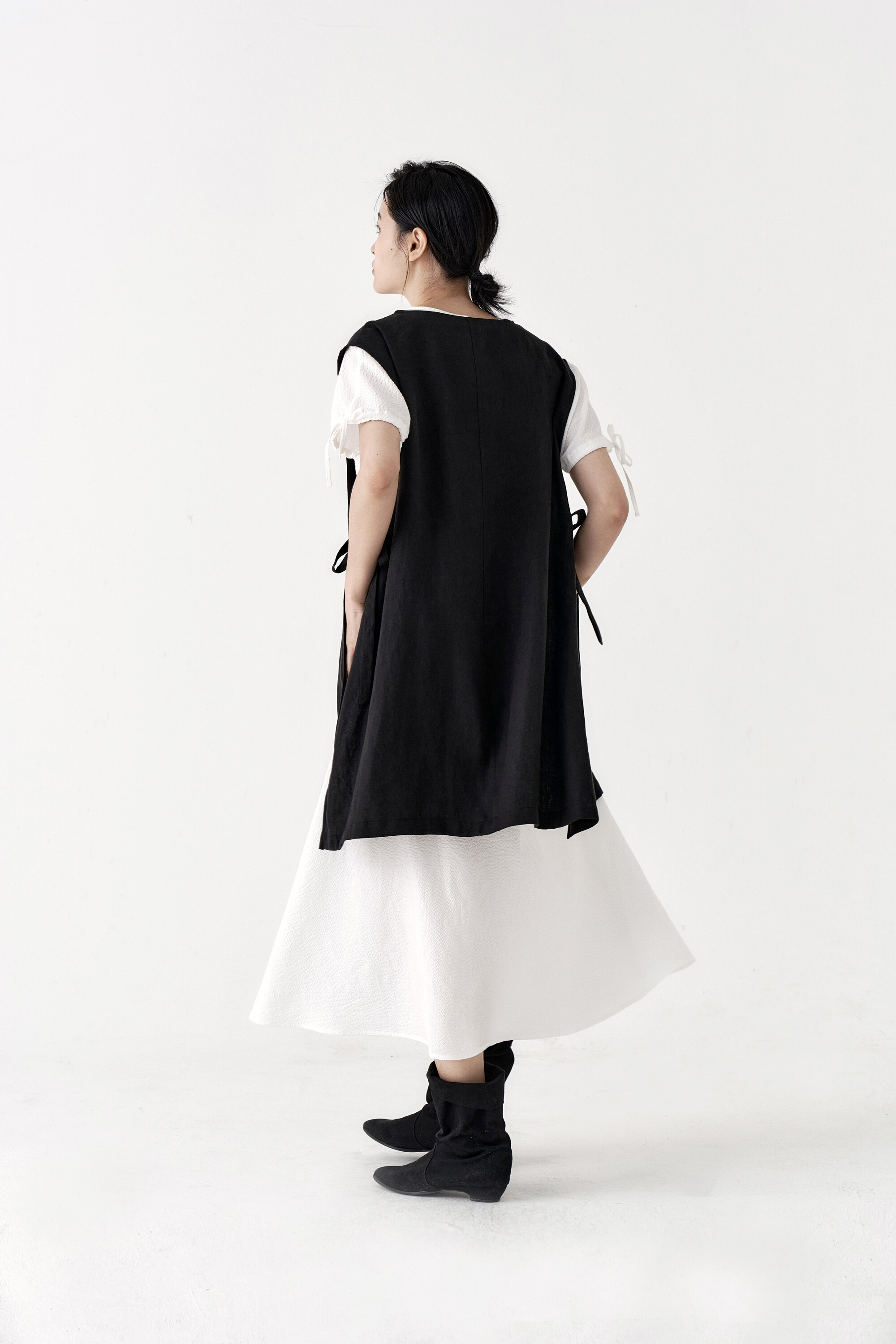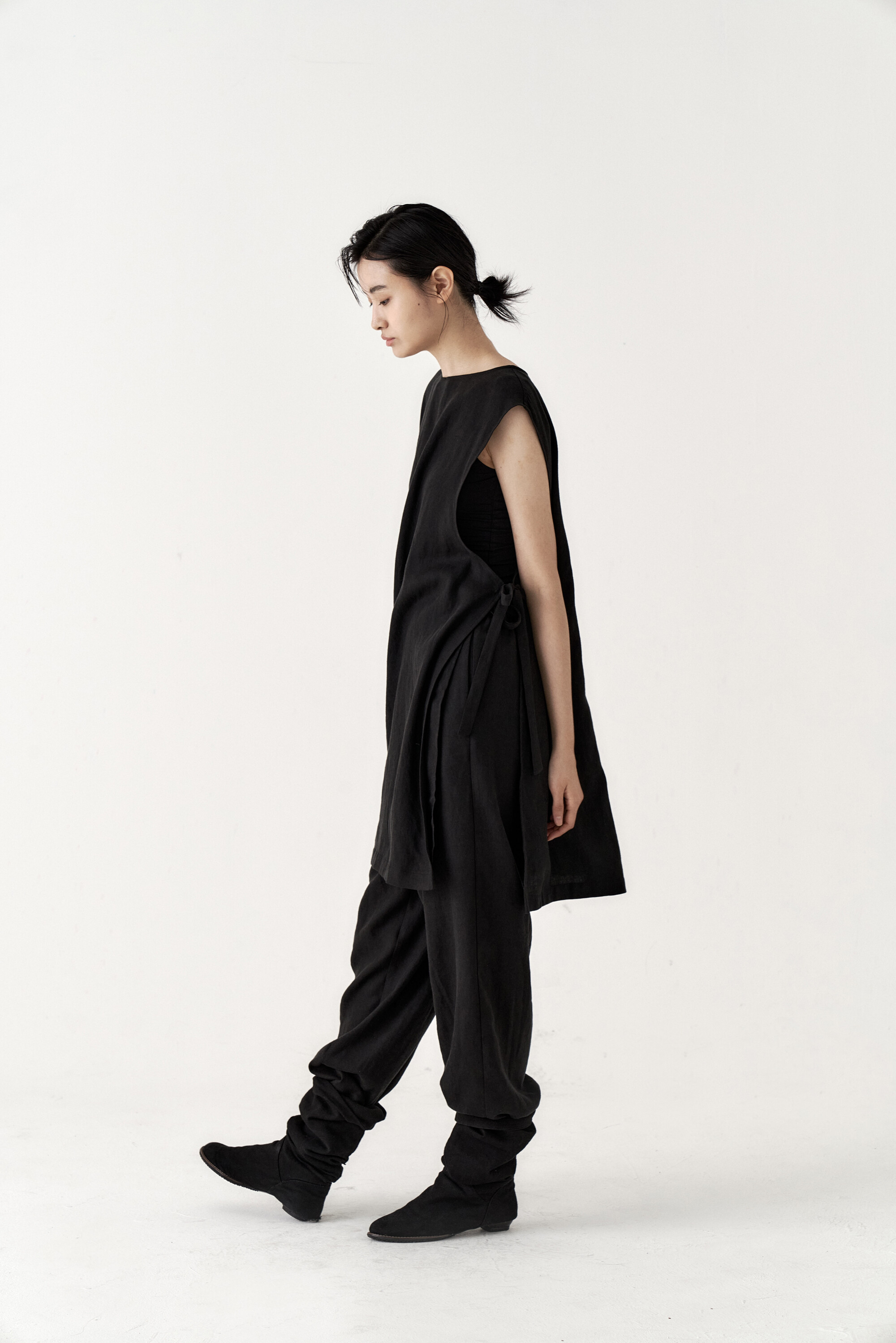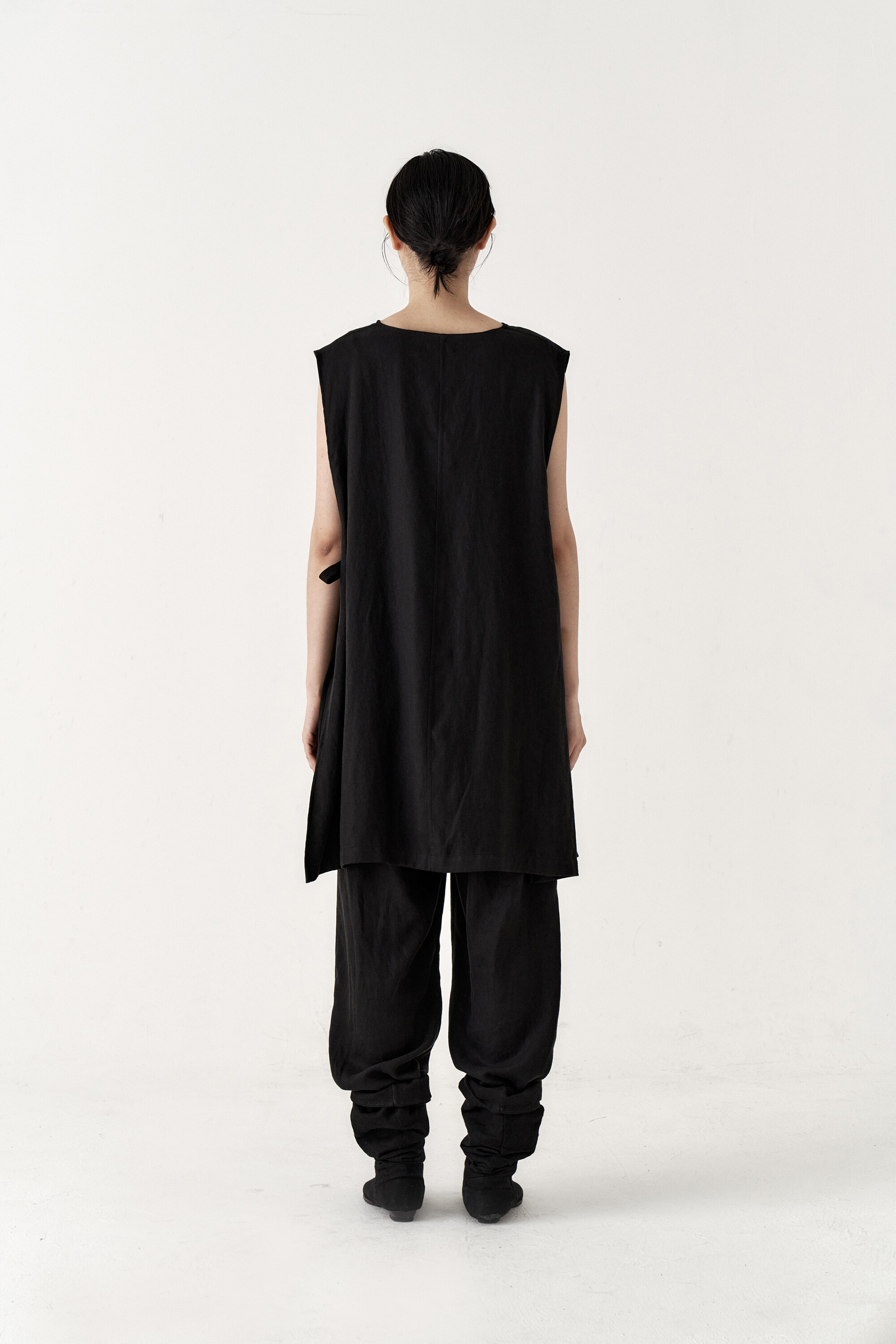 혼방 린넨으로 제작된 롱 베스트입니다.