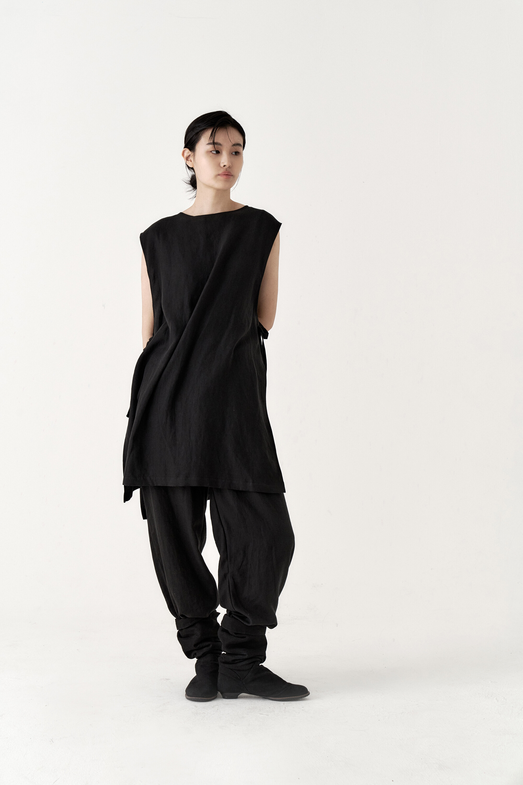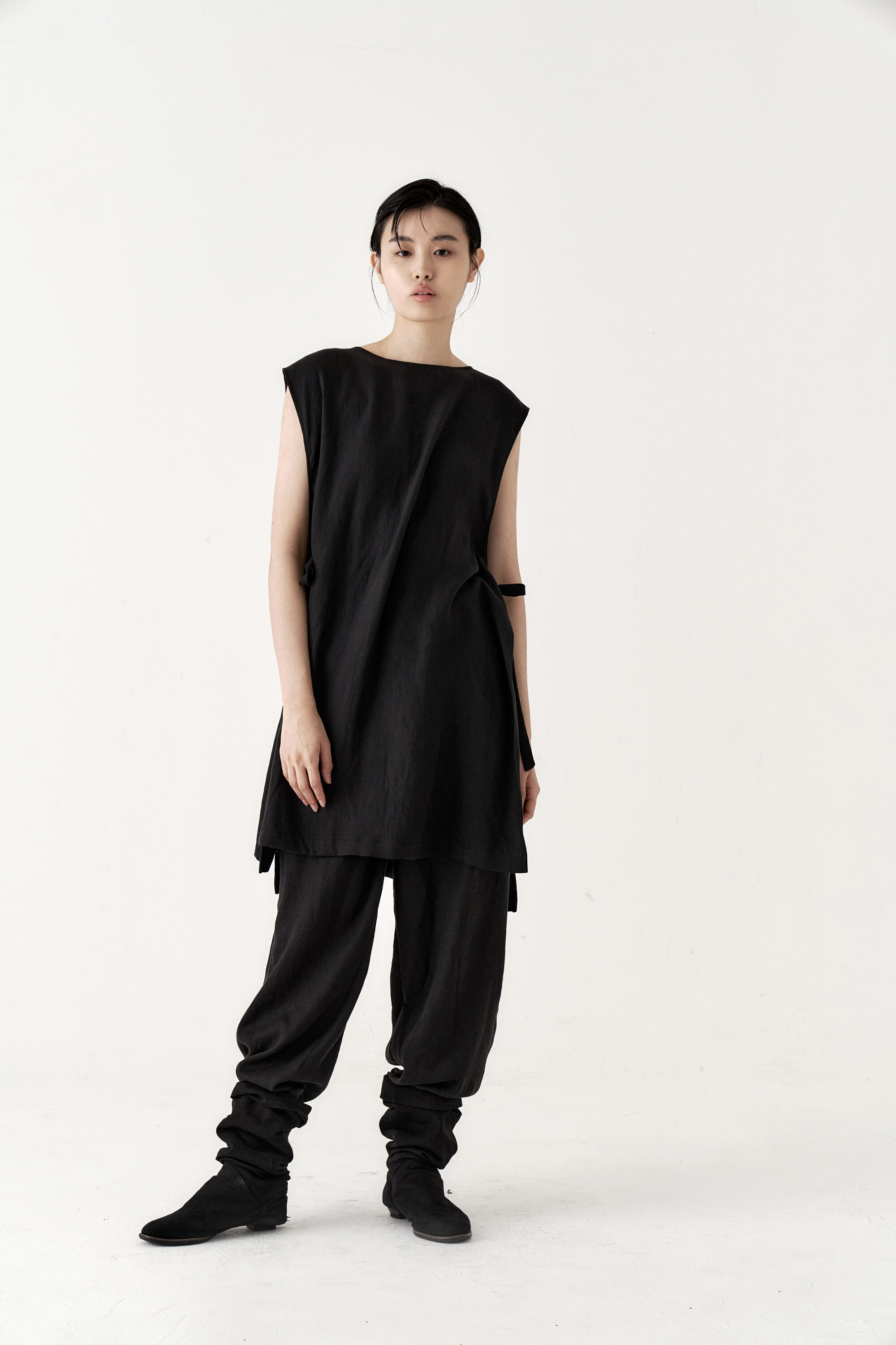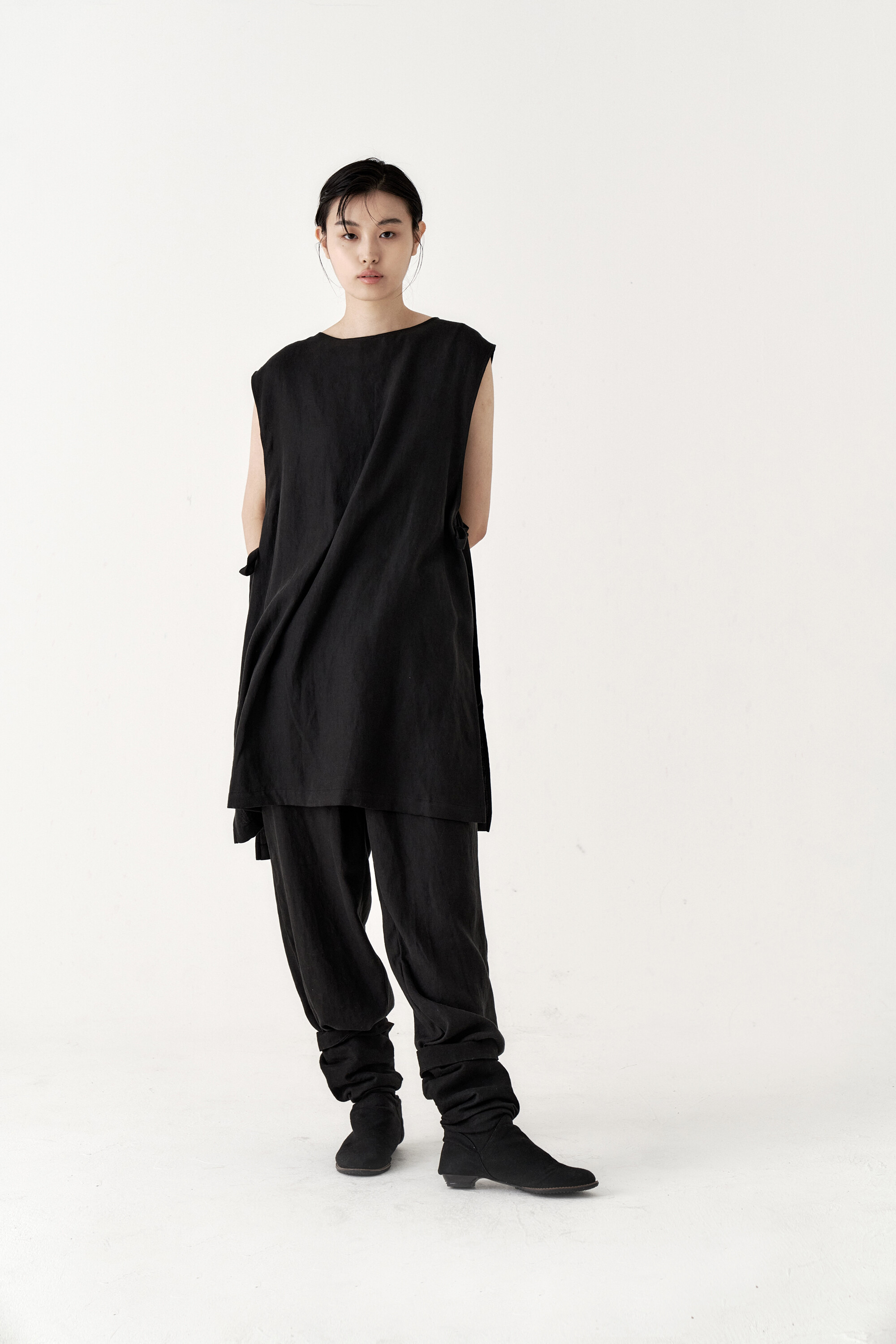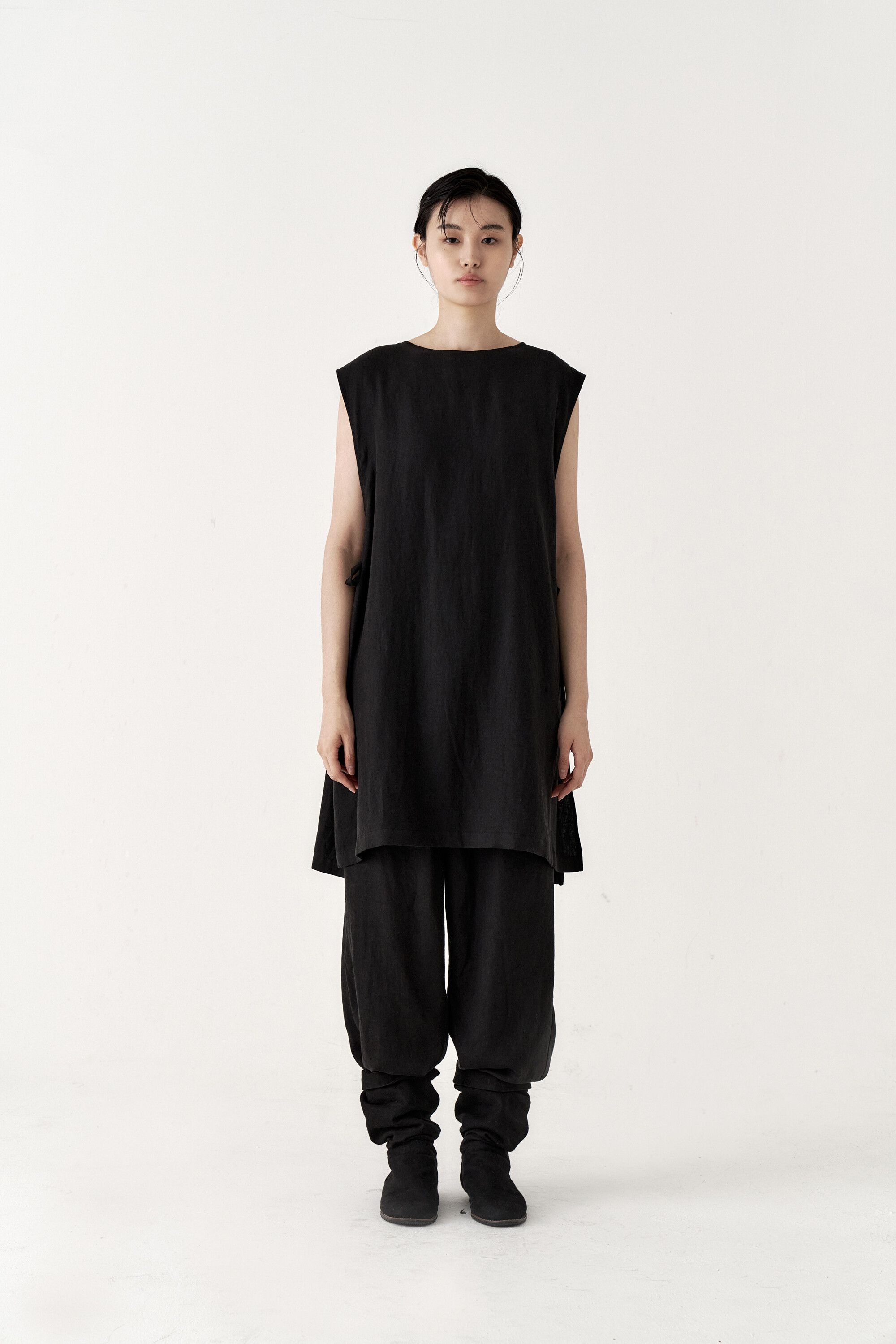 혼방 린넨으로 제작된 롱 베스트입니다.