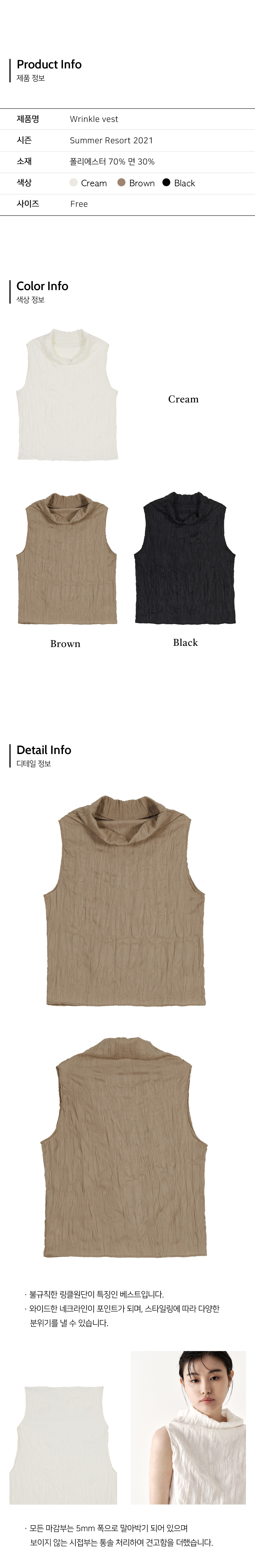 불규칙한 링클 원단으로 제작된 베스트입니다.