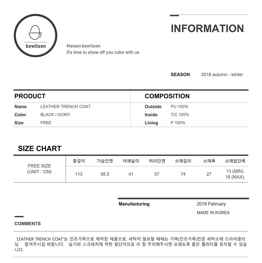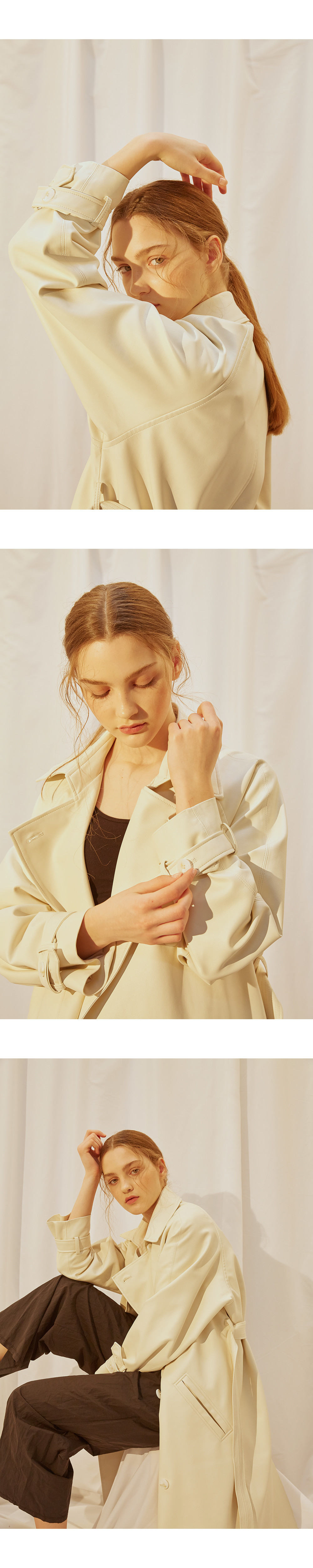 인조가죽으로 제작된 트렌치 코트입니다.