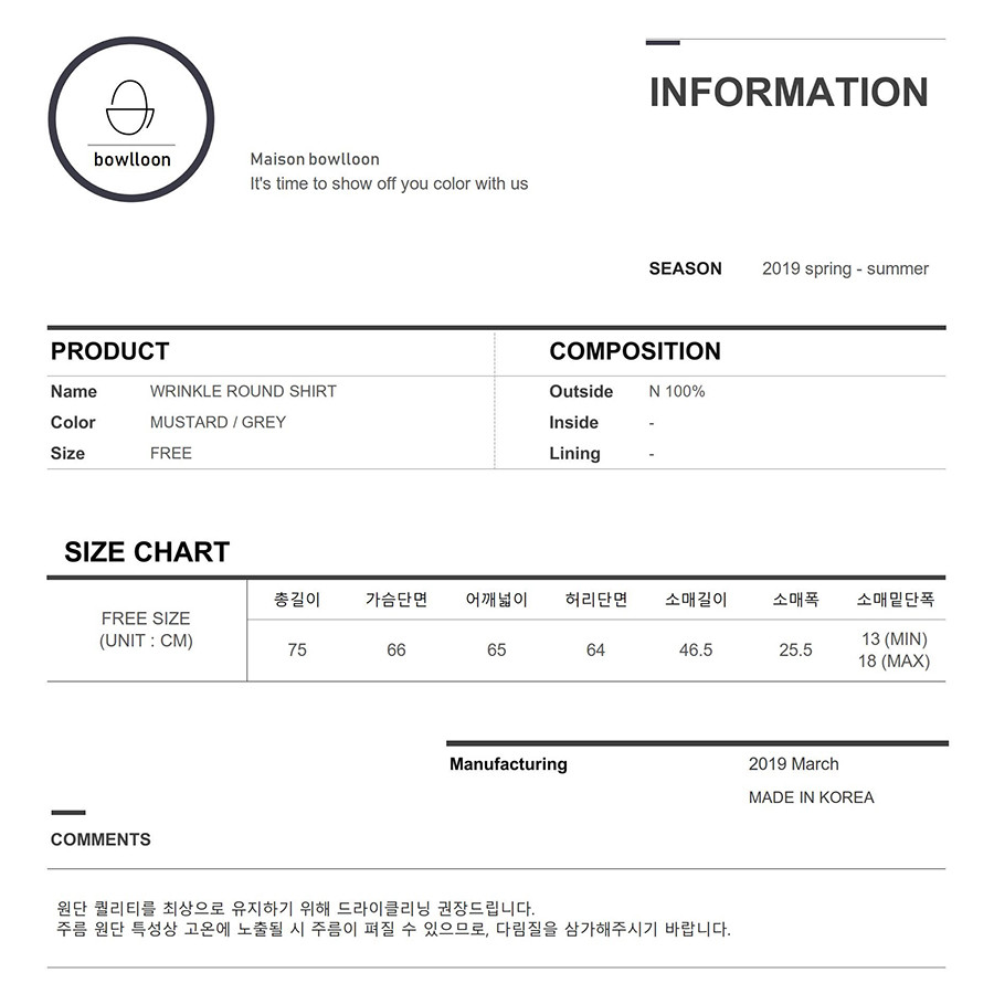 가벼운 주름 소재로 제작되어 한여름까지 착용 가능한 제품입니다.