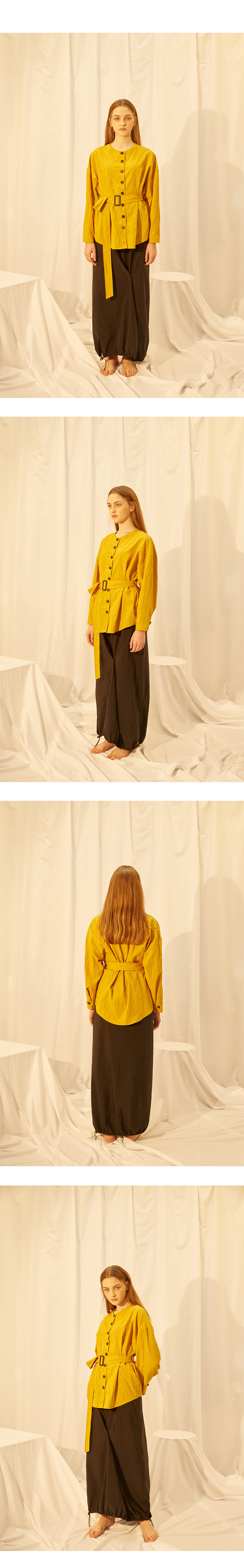 [10% OFF] WRINKLE ROUND SHIRT - MUSTARD