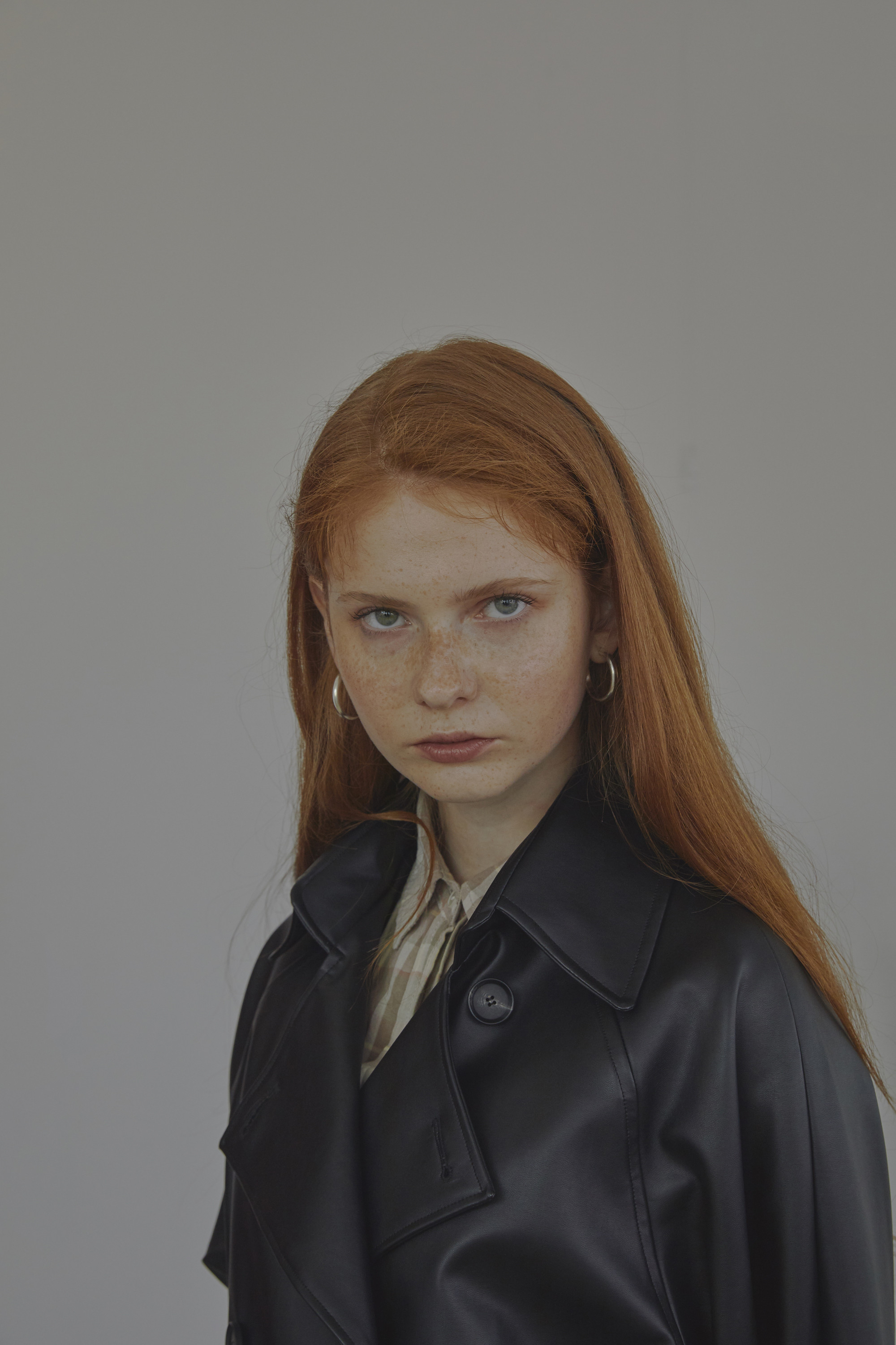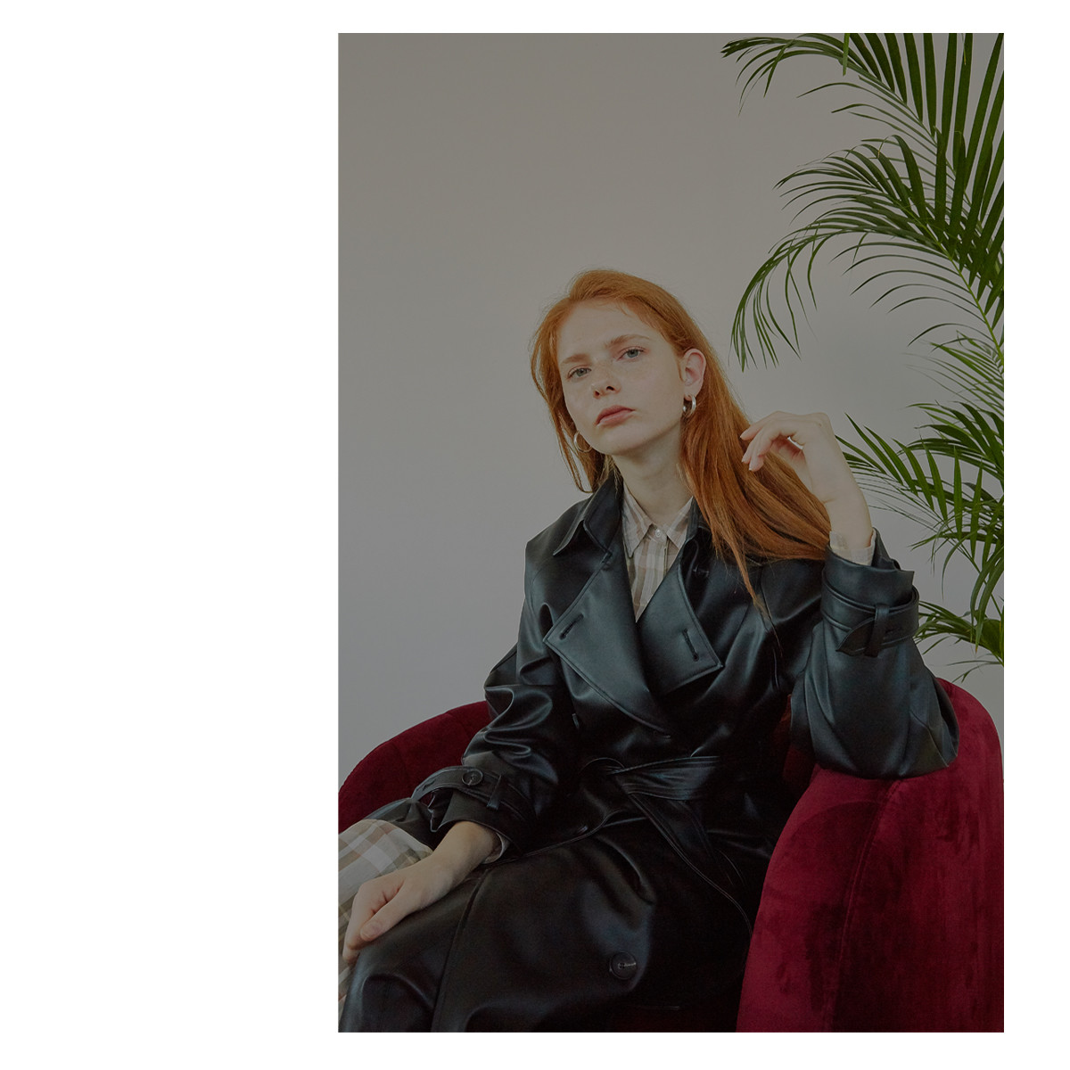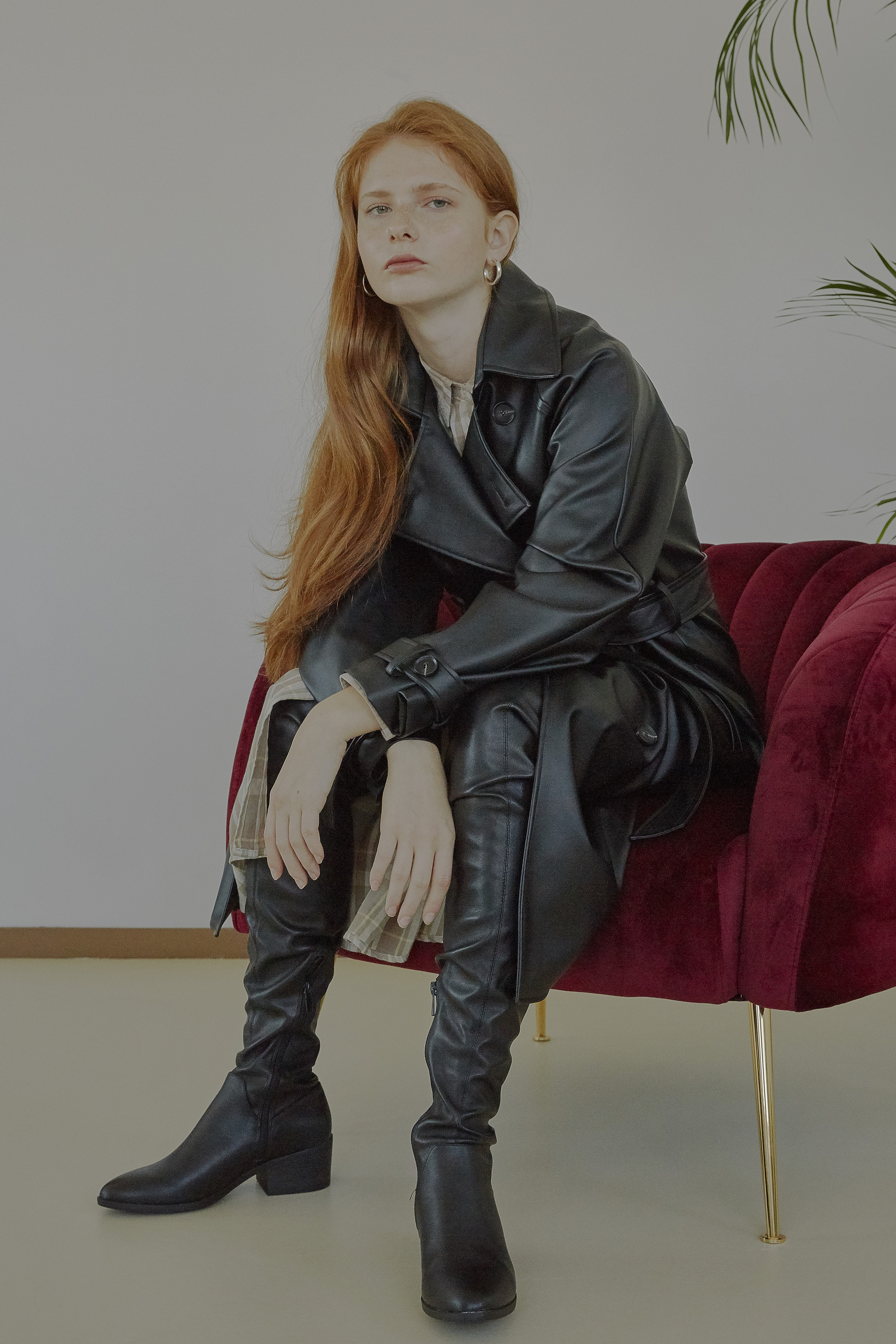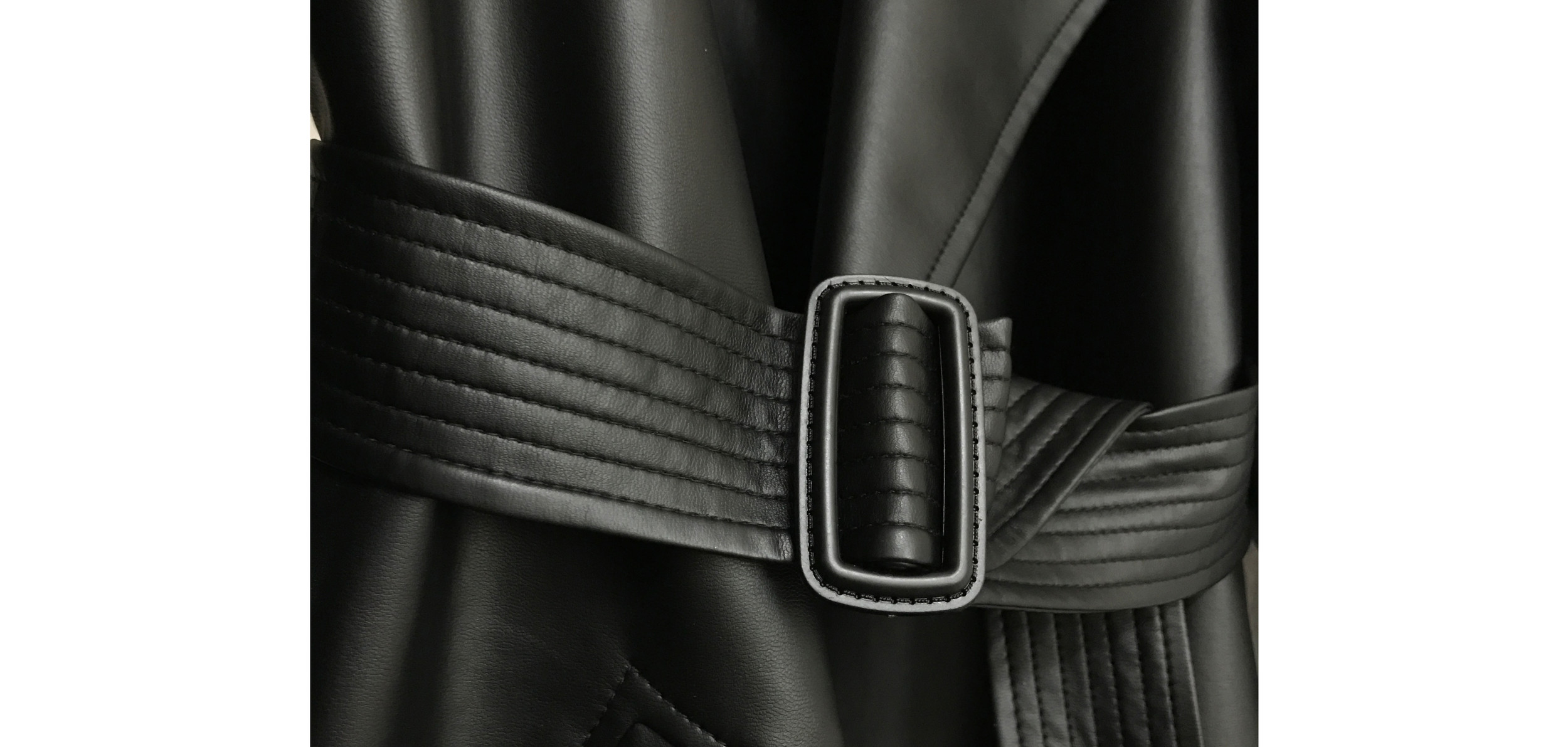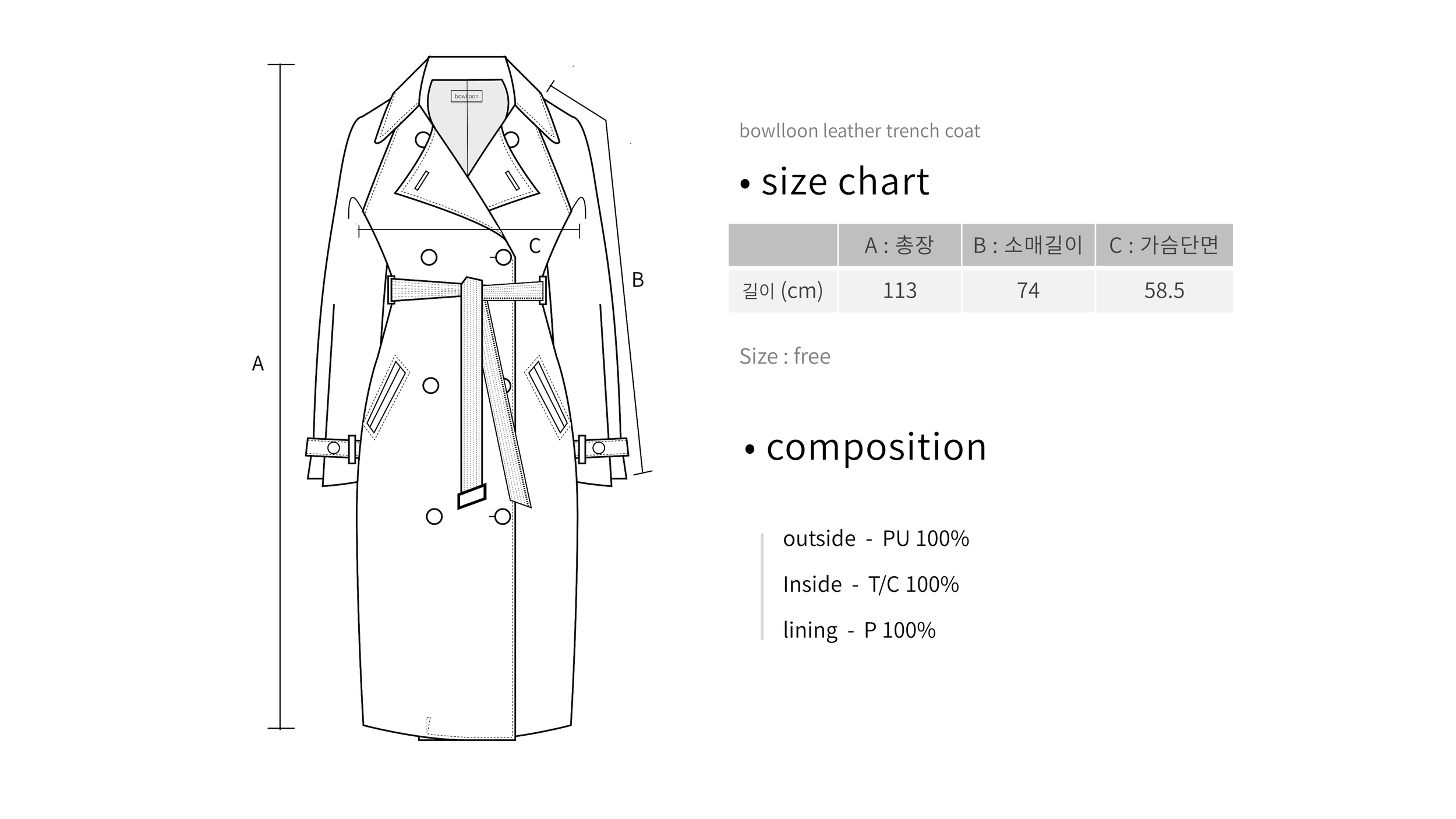 페이크 레더 소재의 클래식한 트렌치 코트입니다.