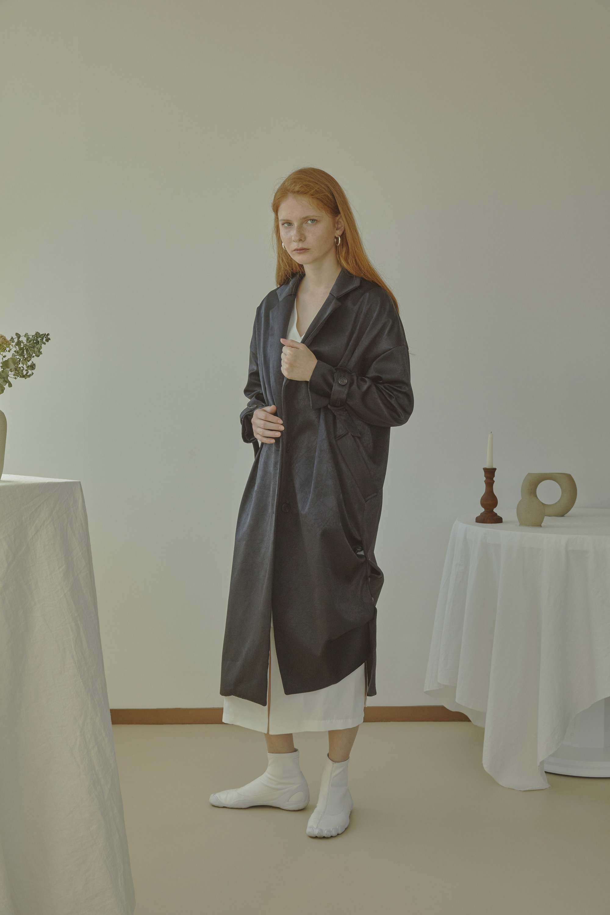 [주문제작] BUTTON DETAIL COAT - BLACK