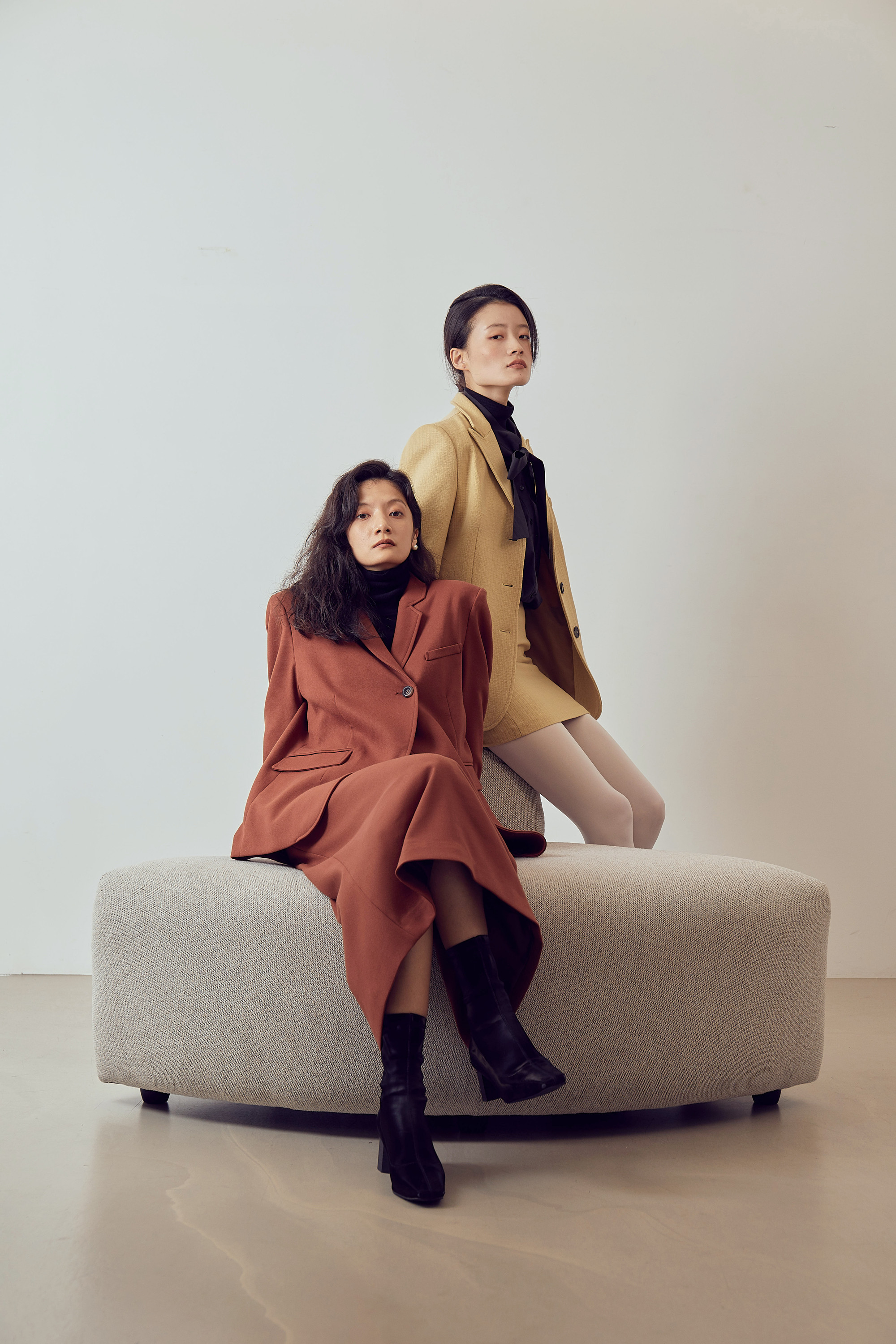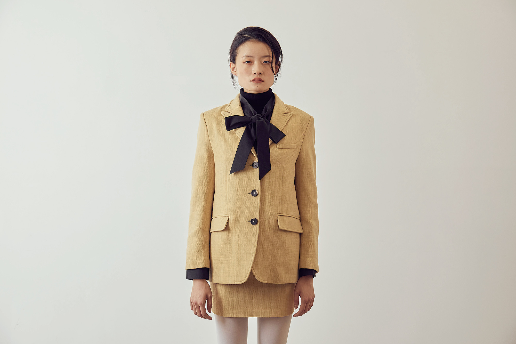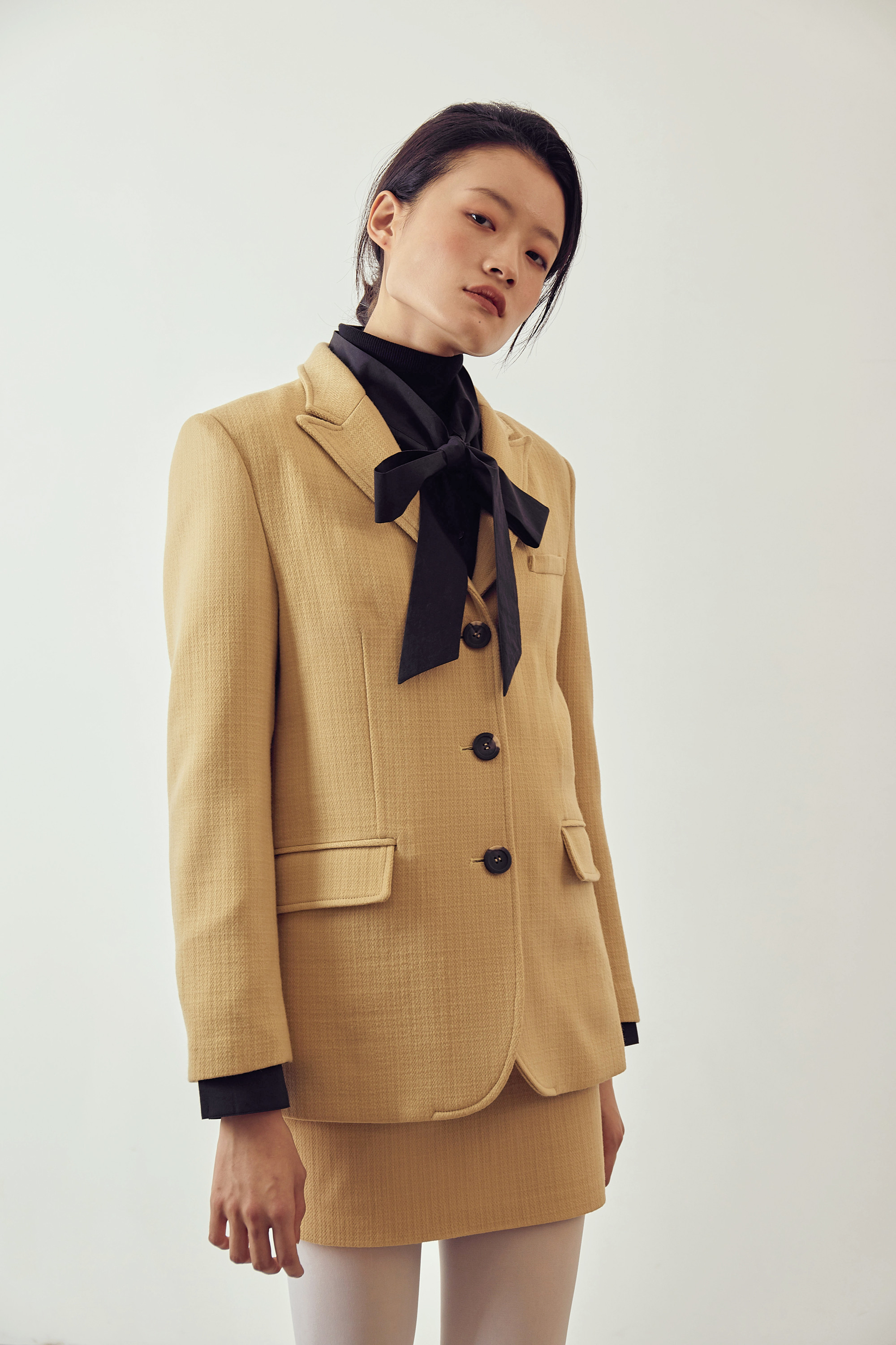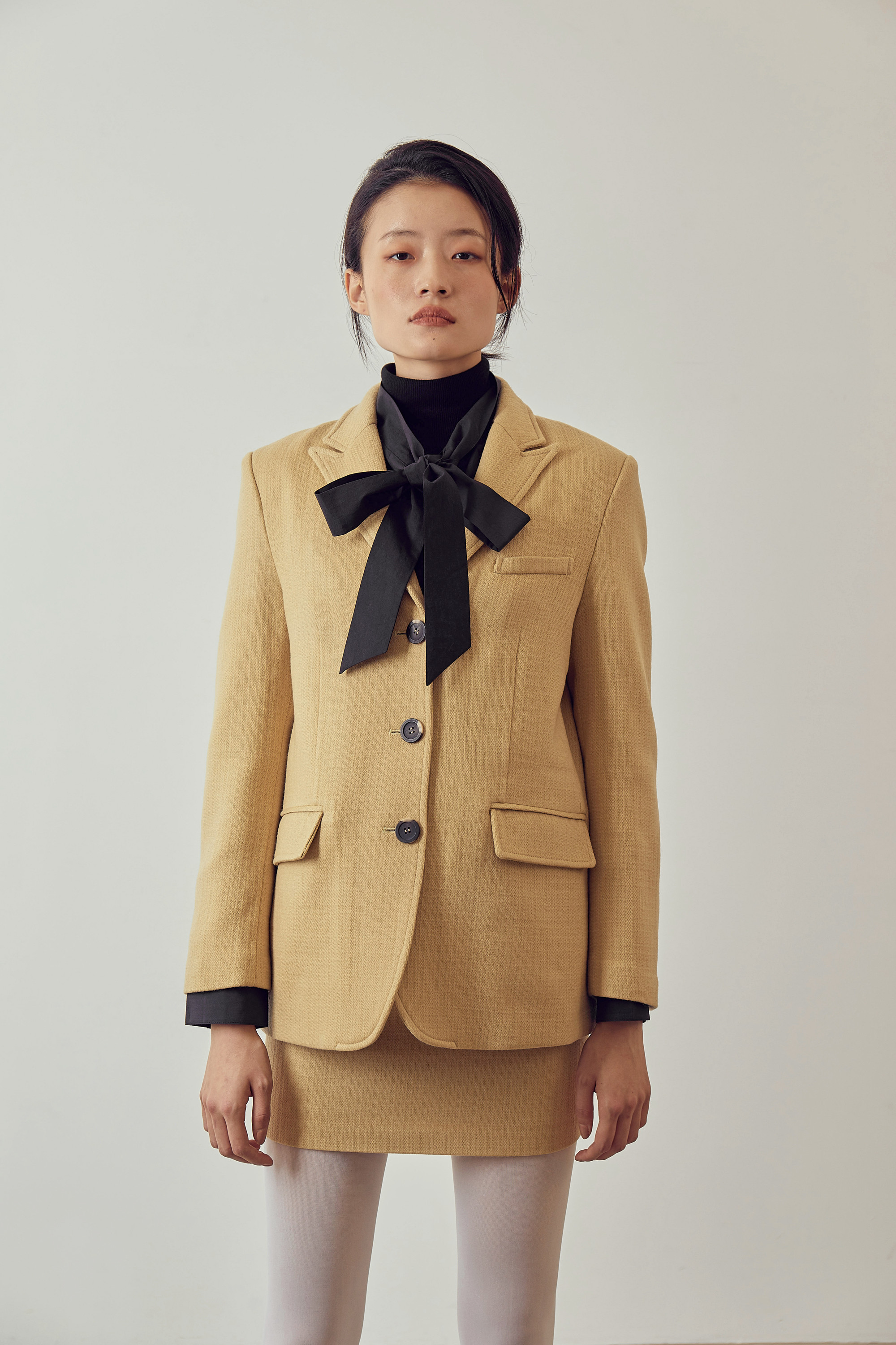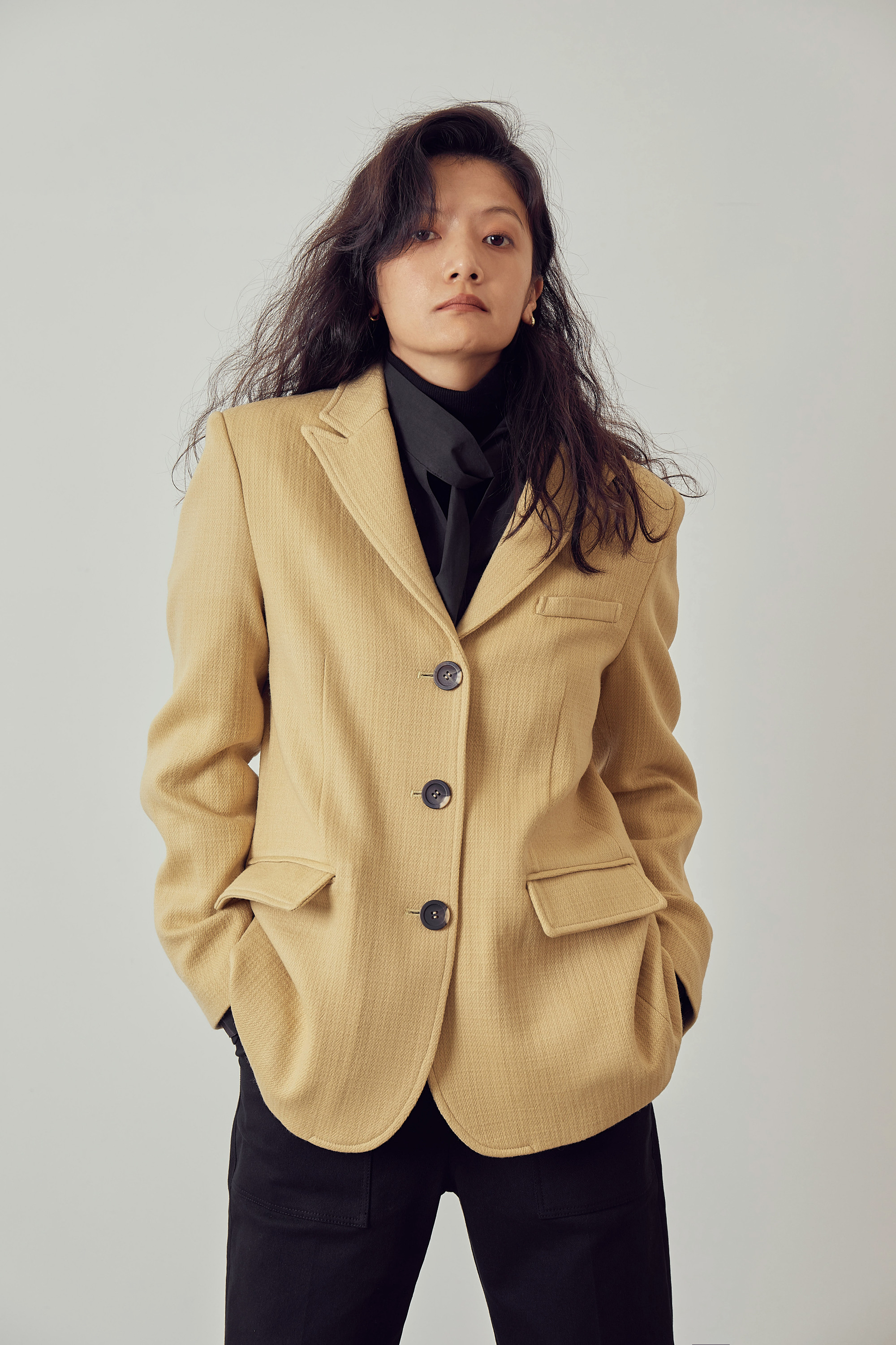 조직감이 보이는 톡톡한 울 원단으로 제작되었습니다.
