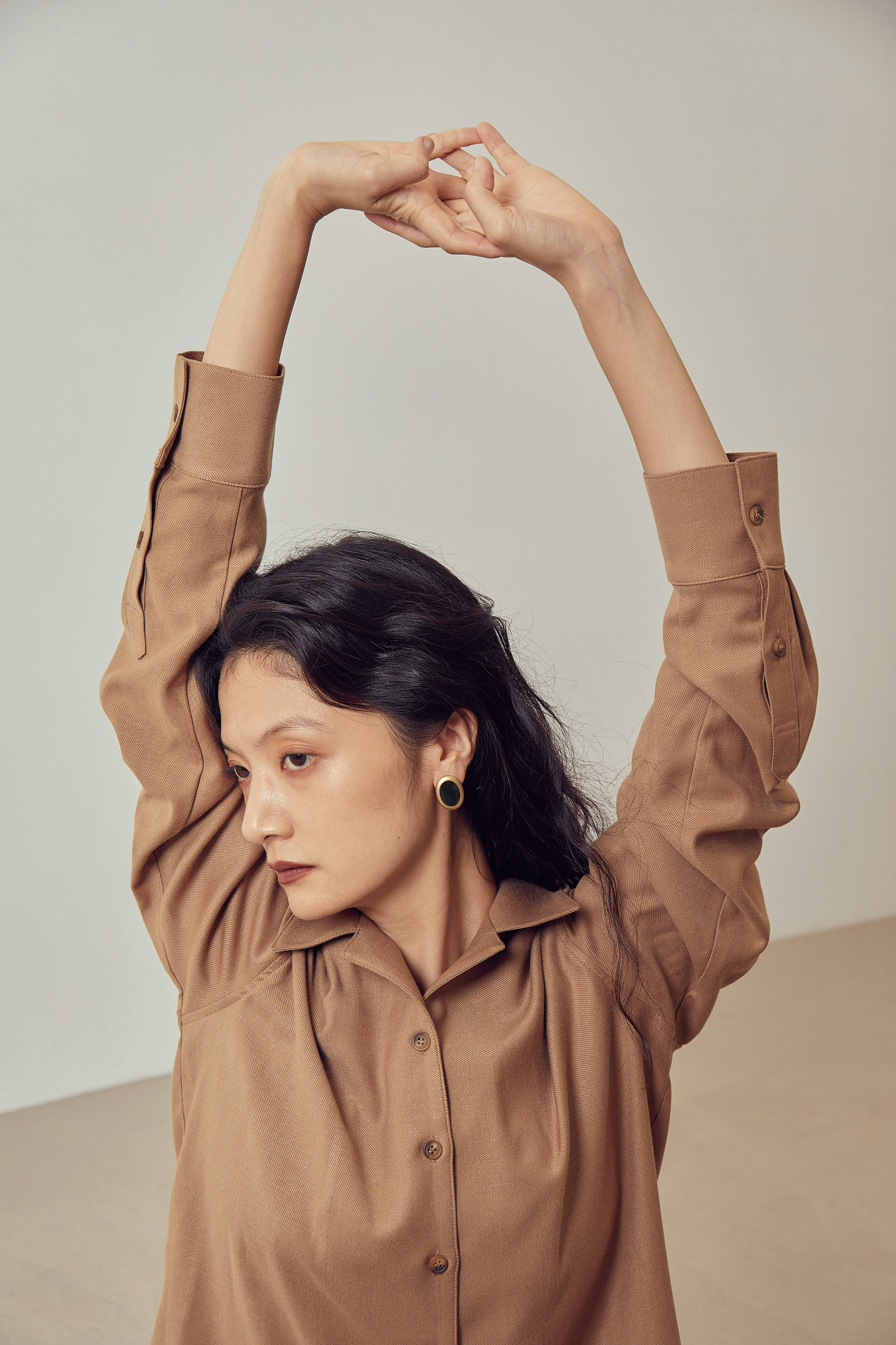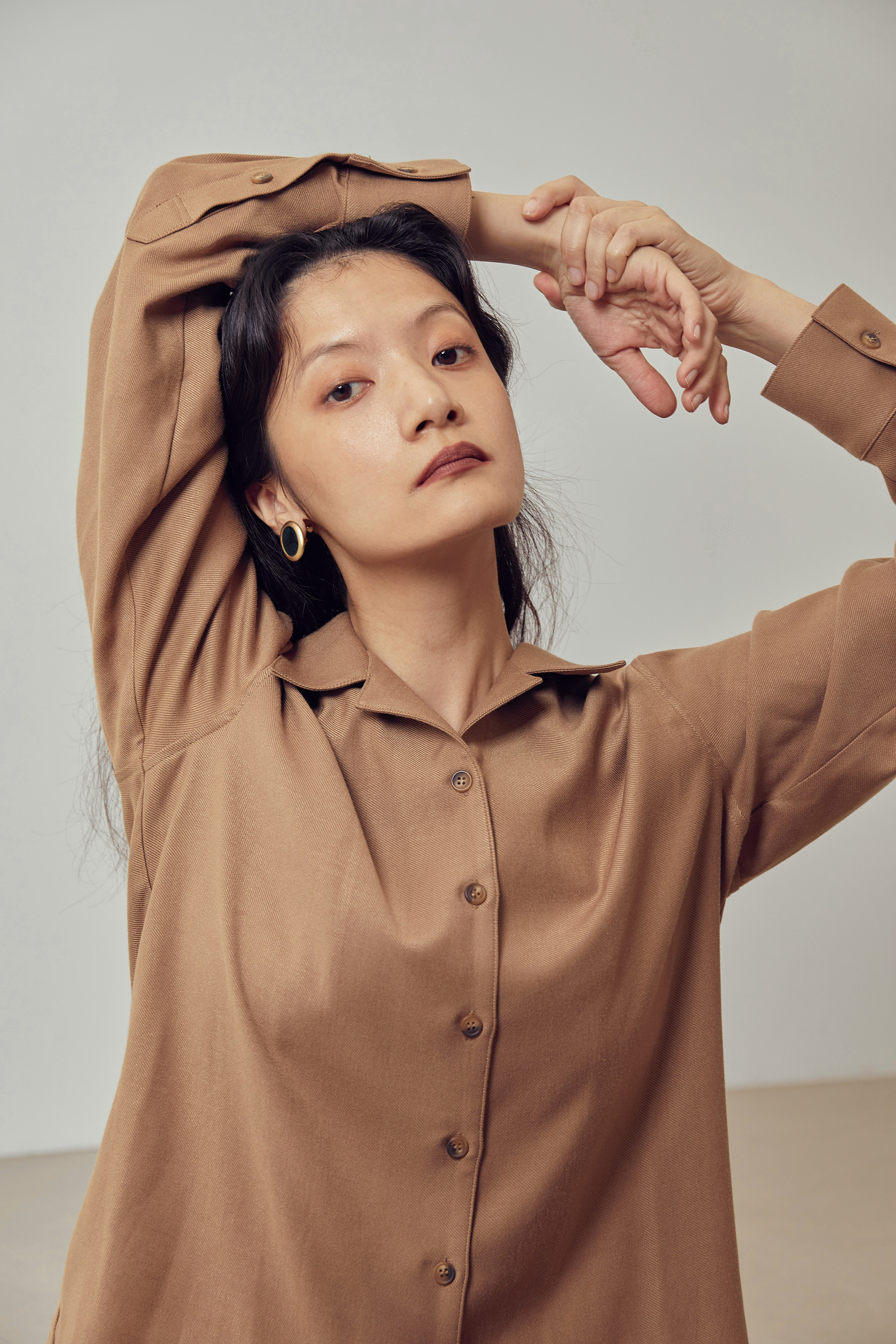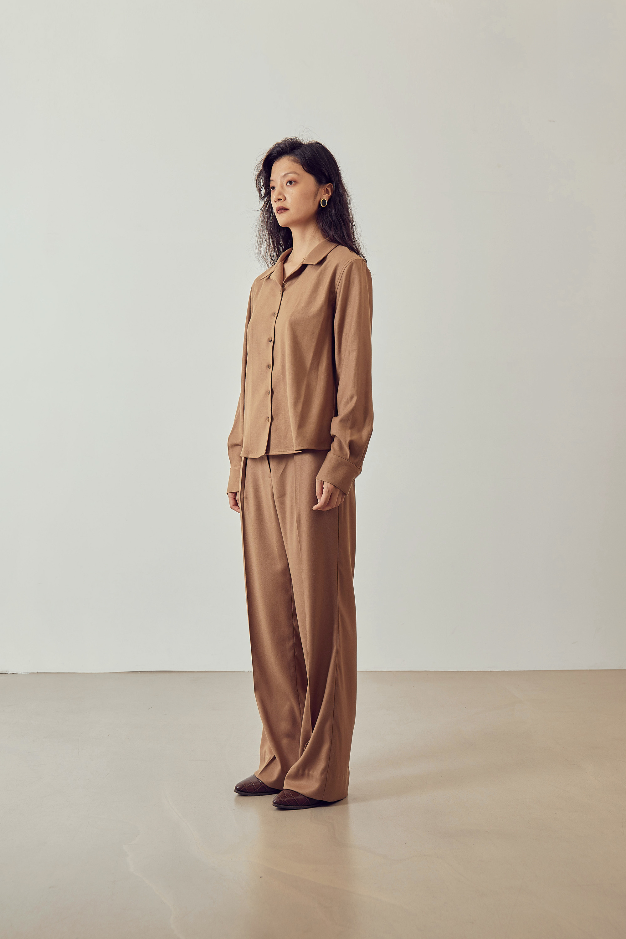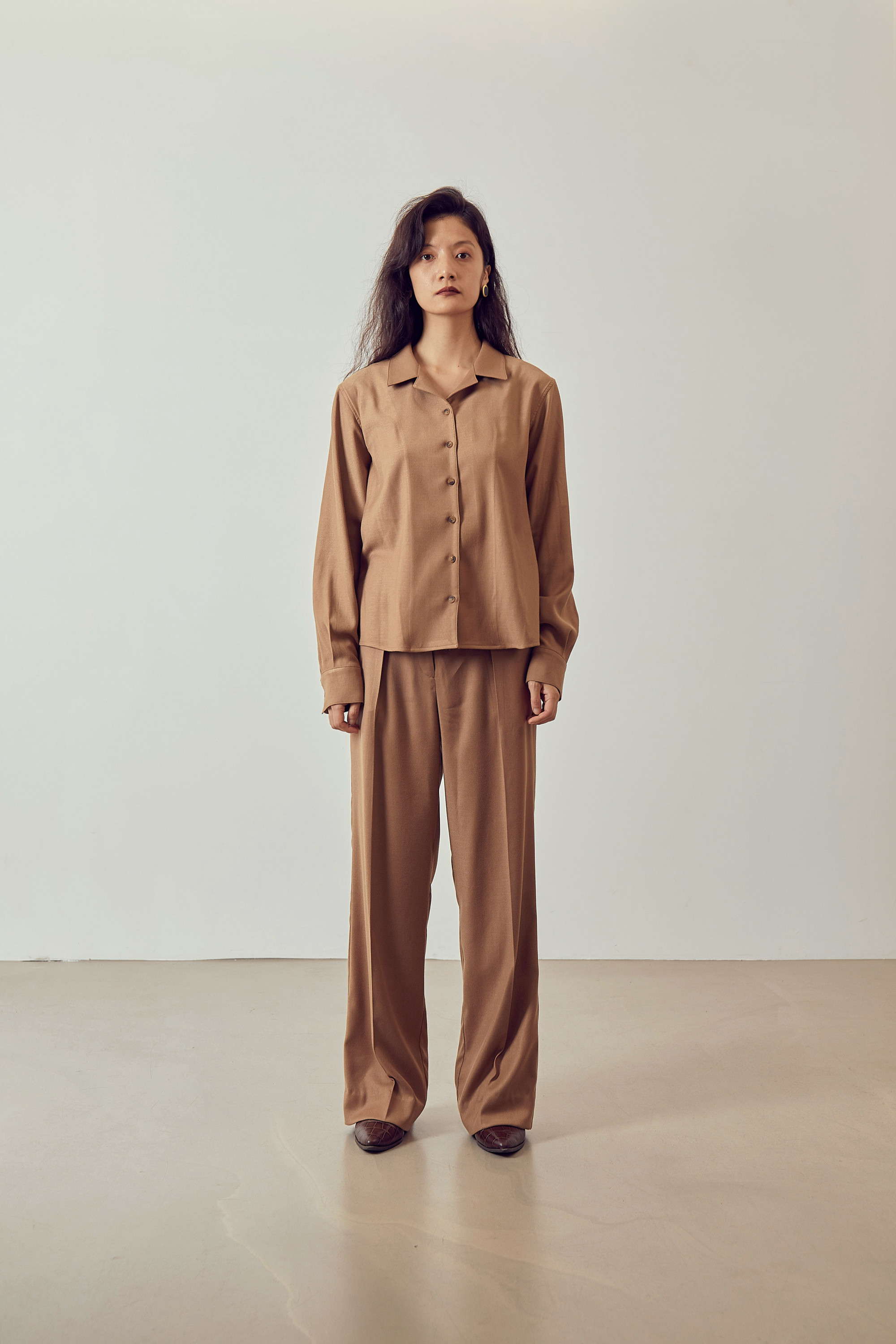 OPEN COLLAR SHIRT - CAMEL