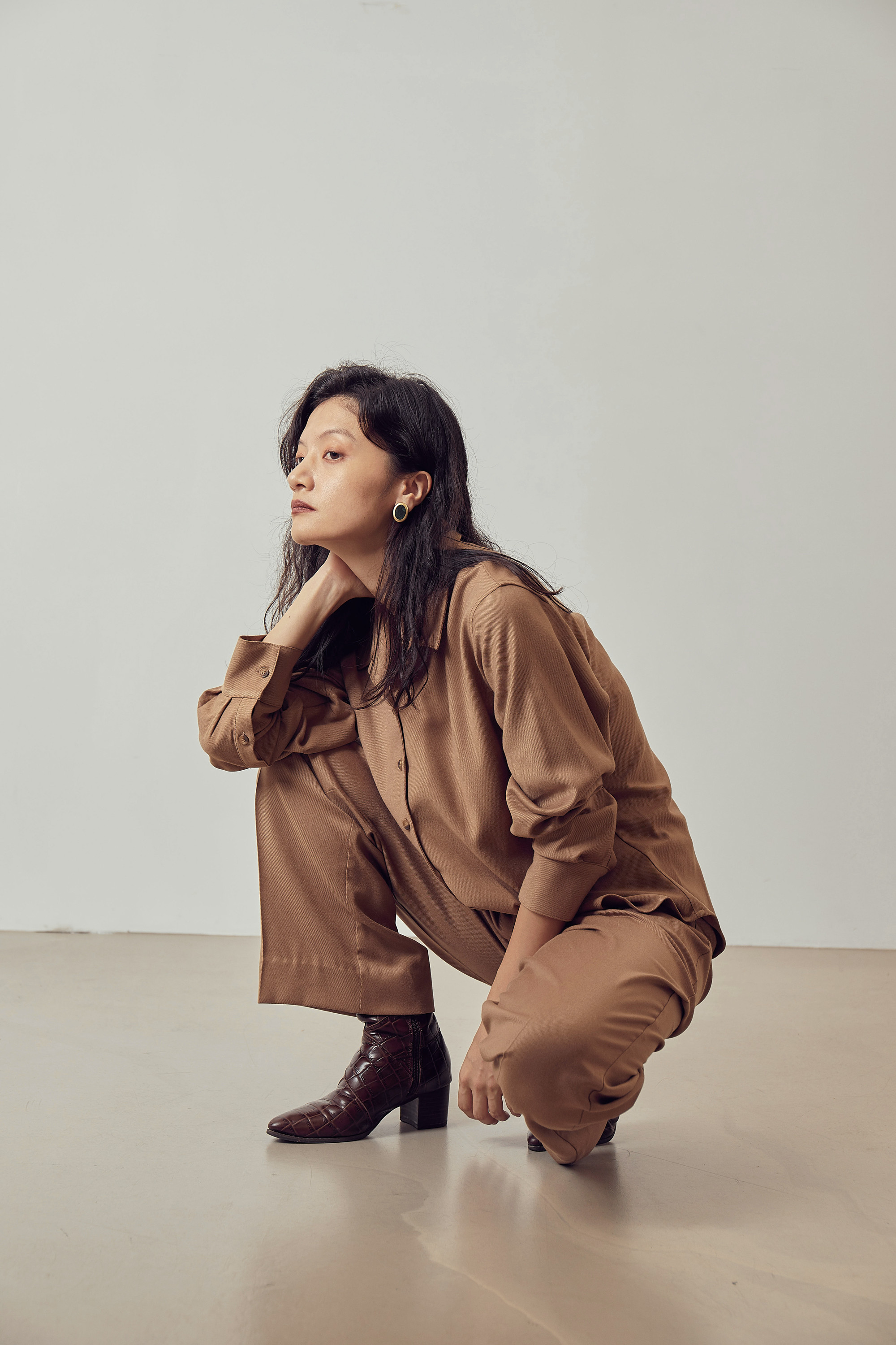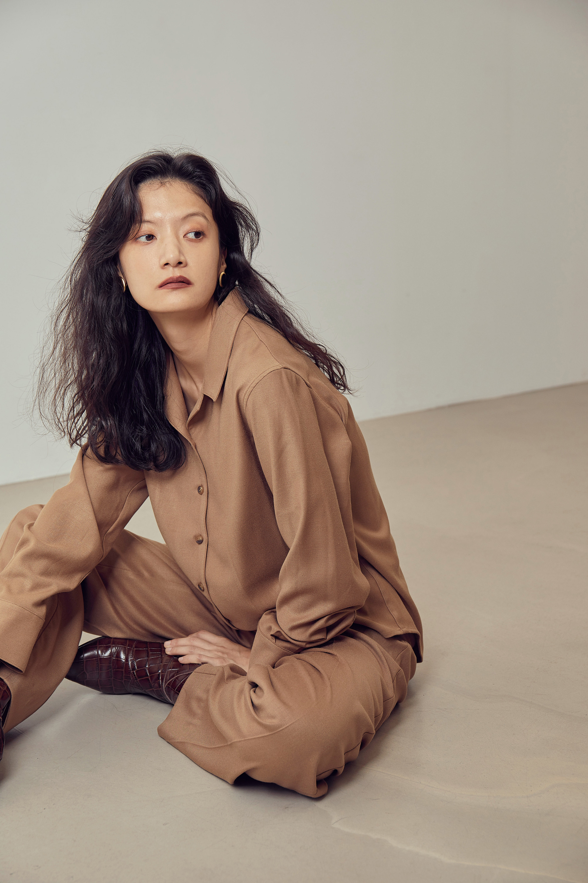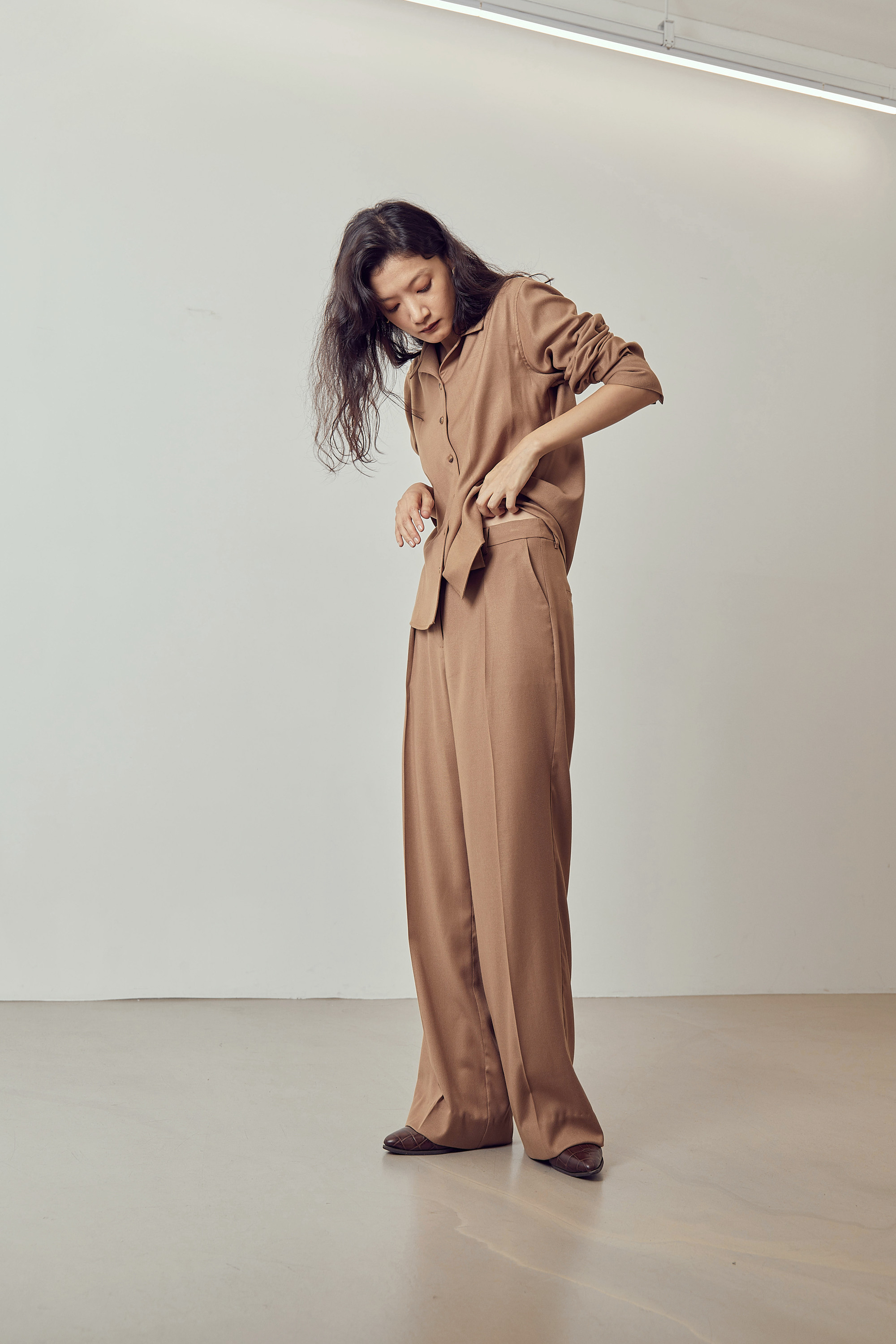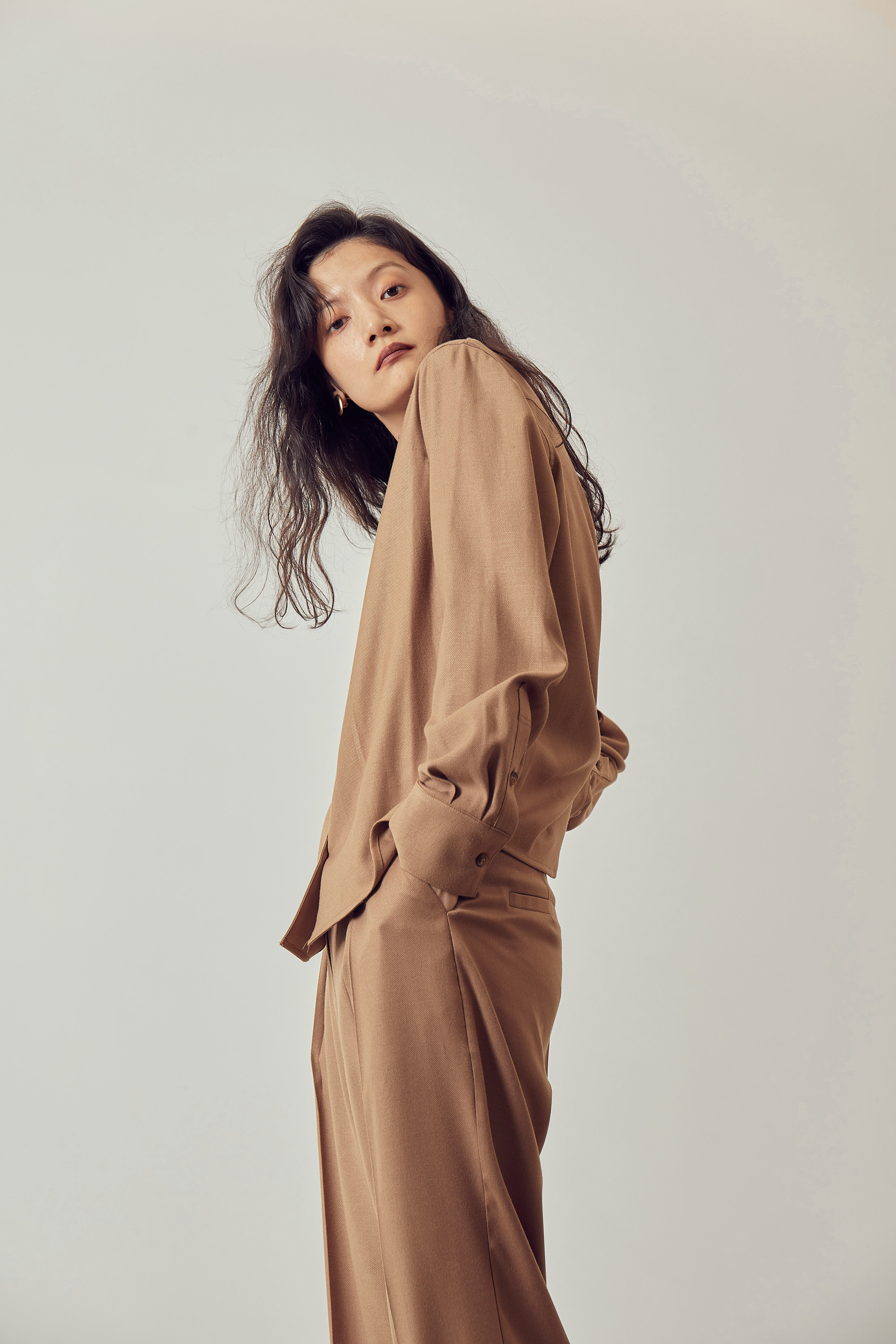 드레이프성이 강한 원단으로 유연한 핏을 보여주며,