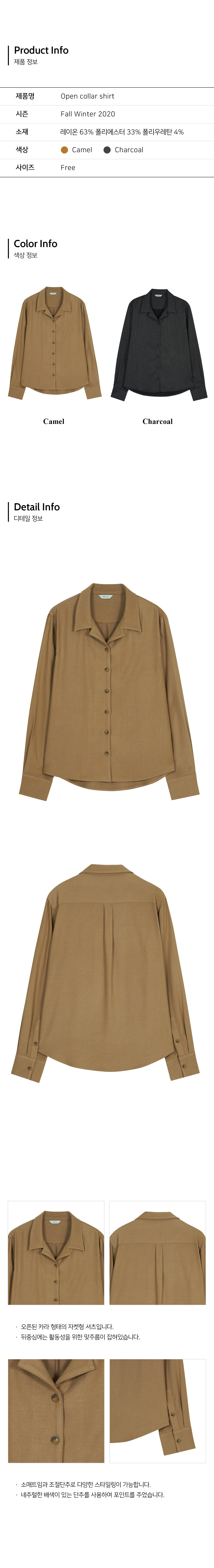 오픈형태의 카라로 제작된 자켓형 셔츠입니다.