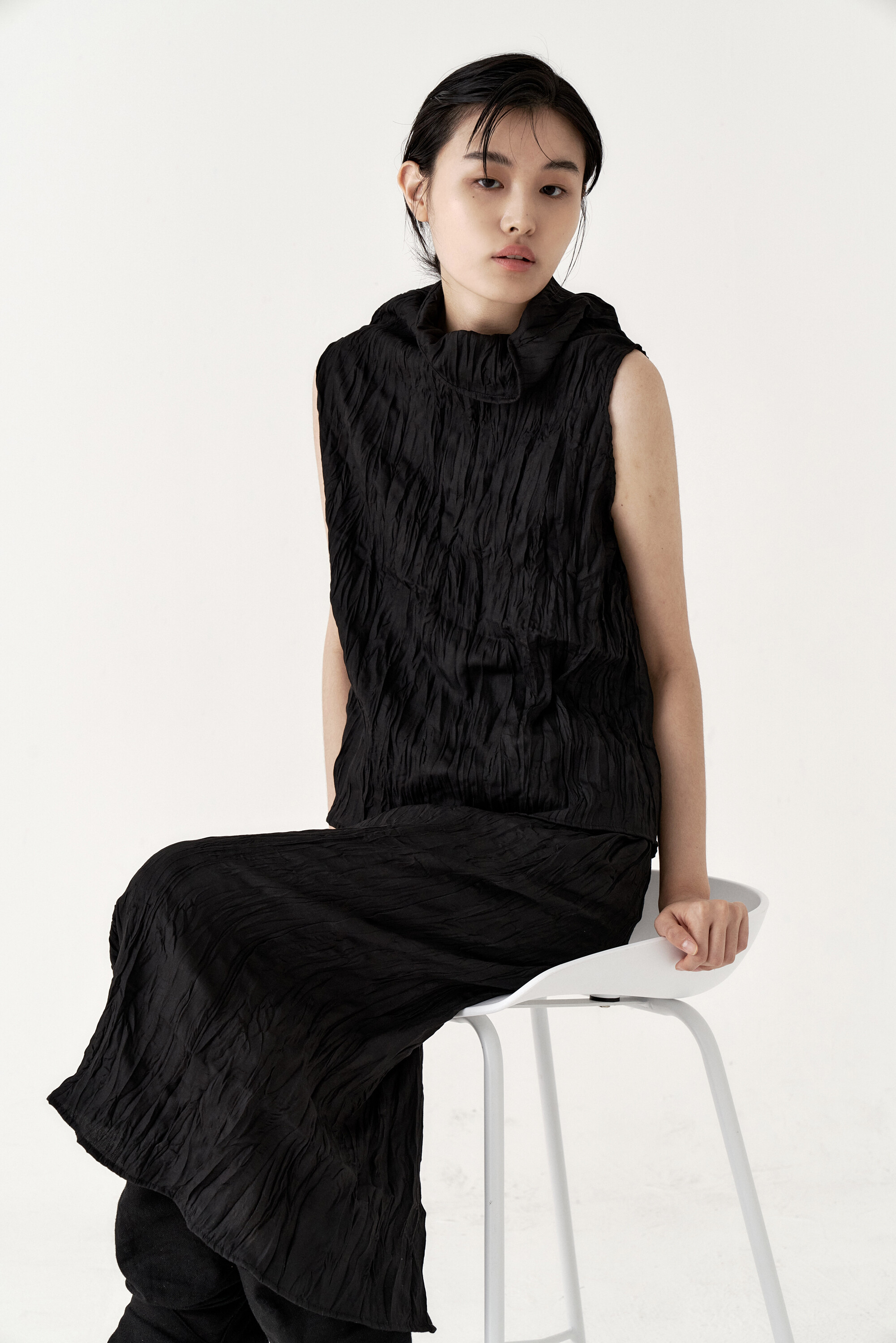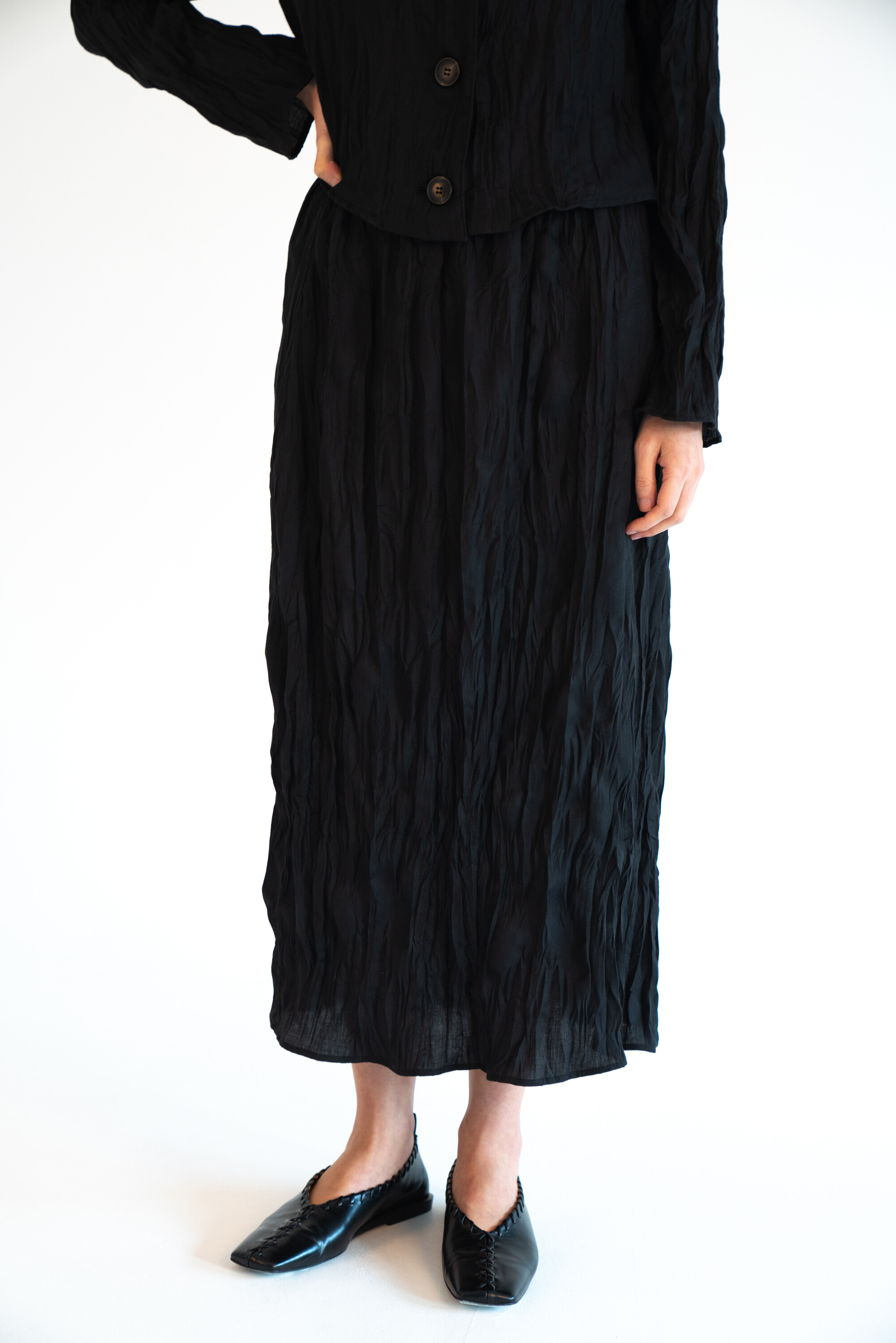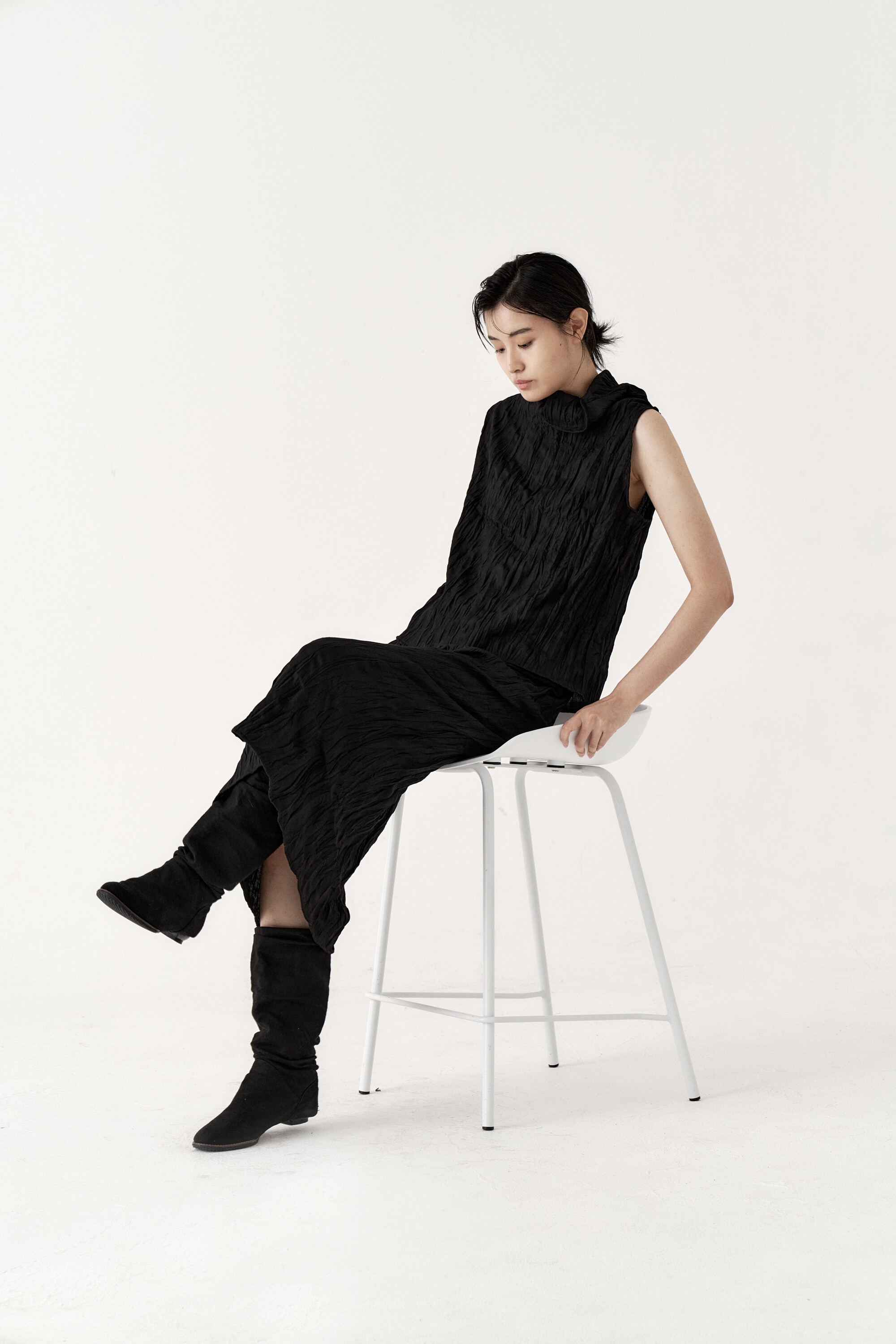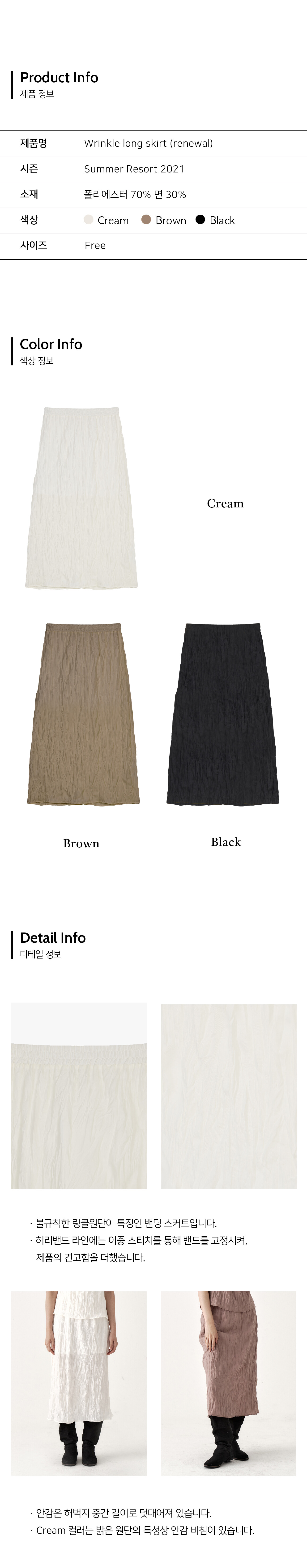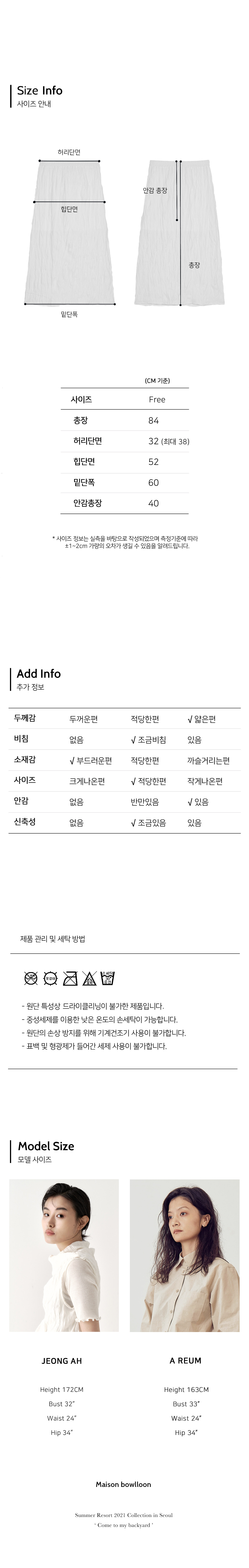 불규칙한 링클 원단으로 제작된 밴딩 스커트입니다.