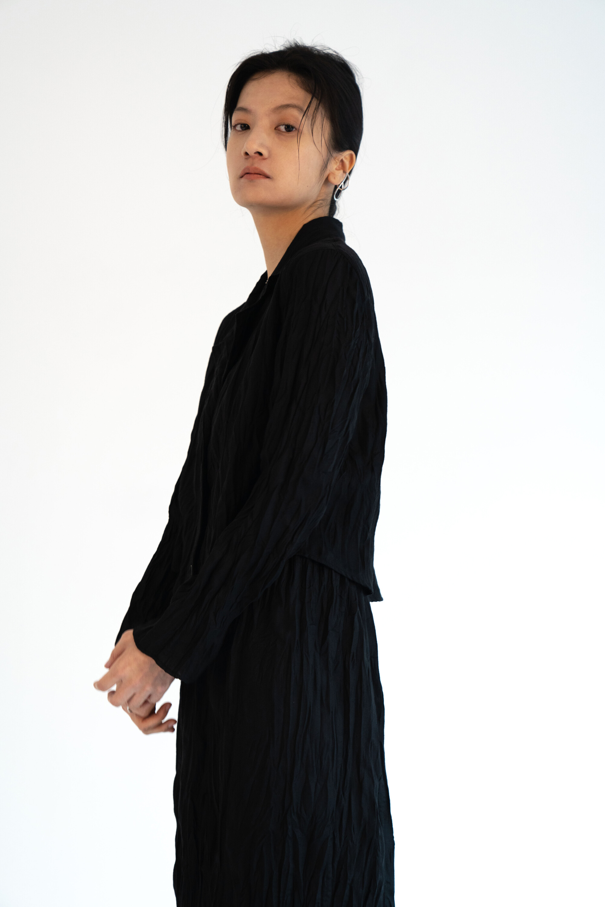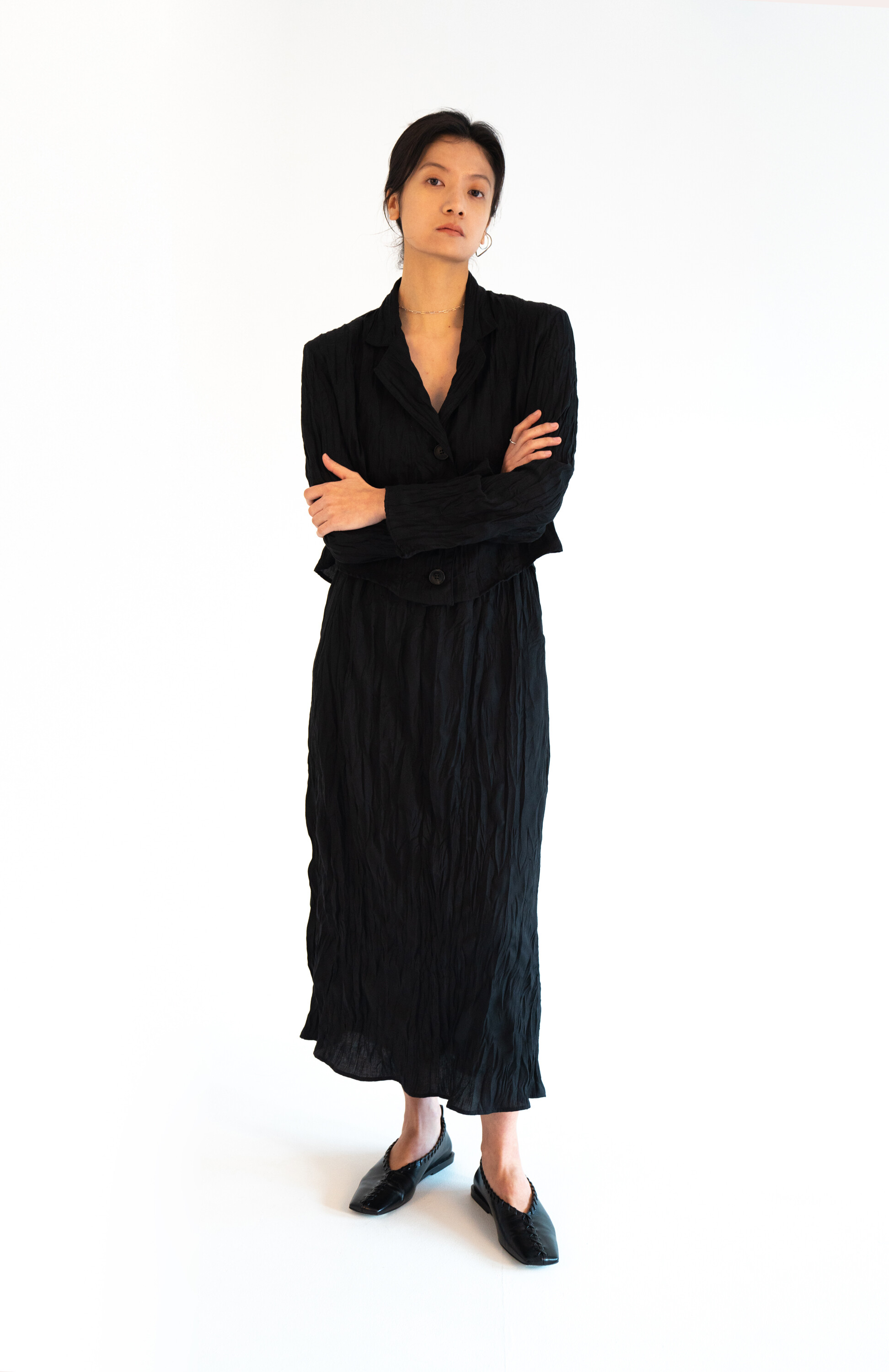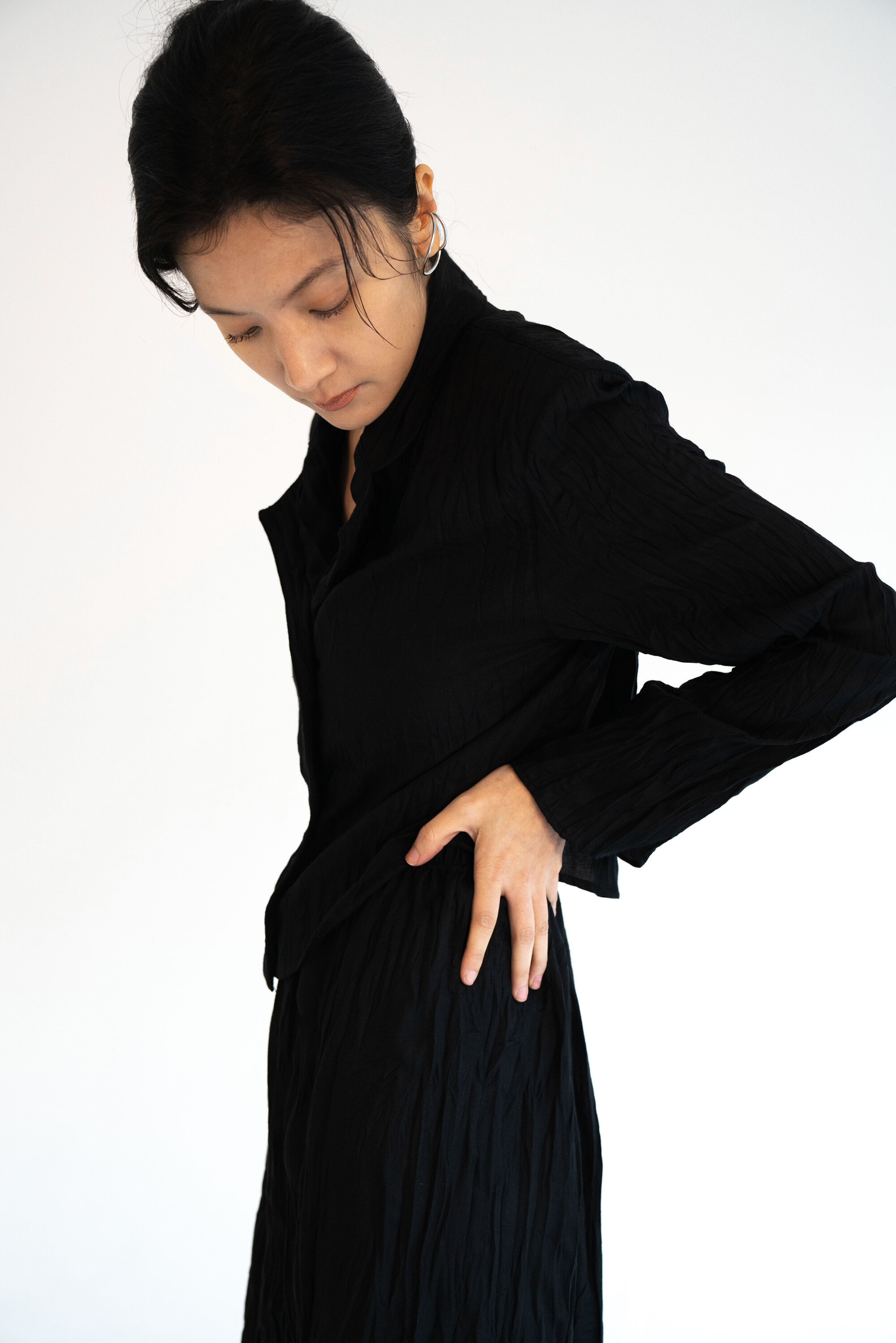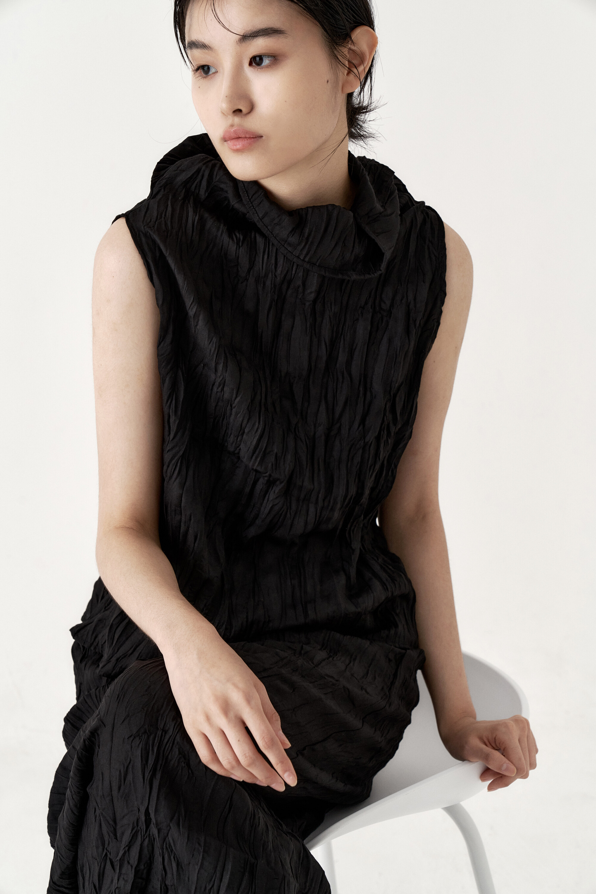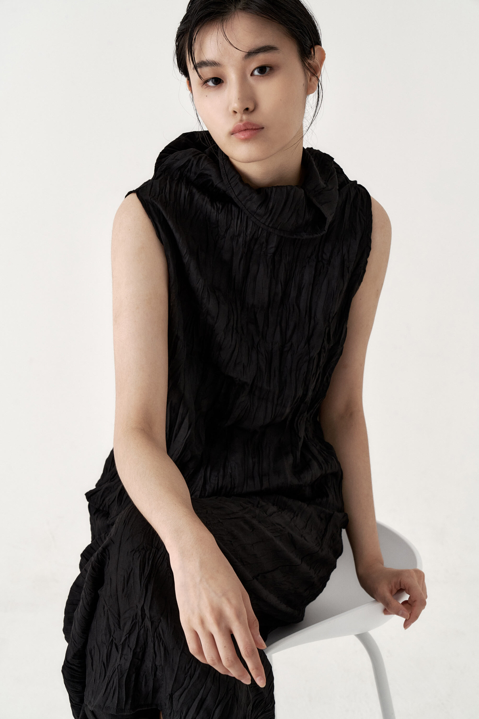 불규칙한 링클 원단으로 제작된 밴딩 스커트입니다.