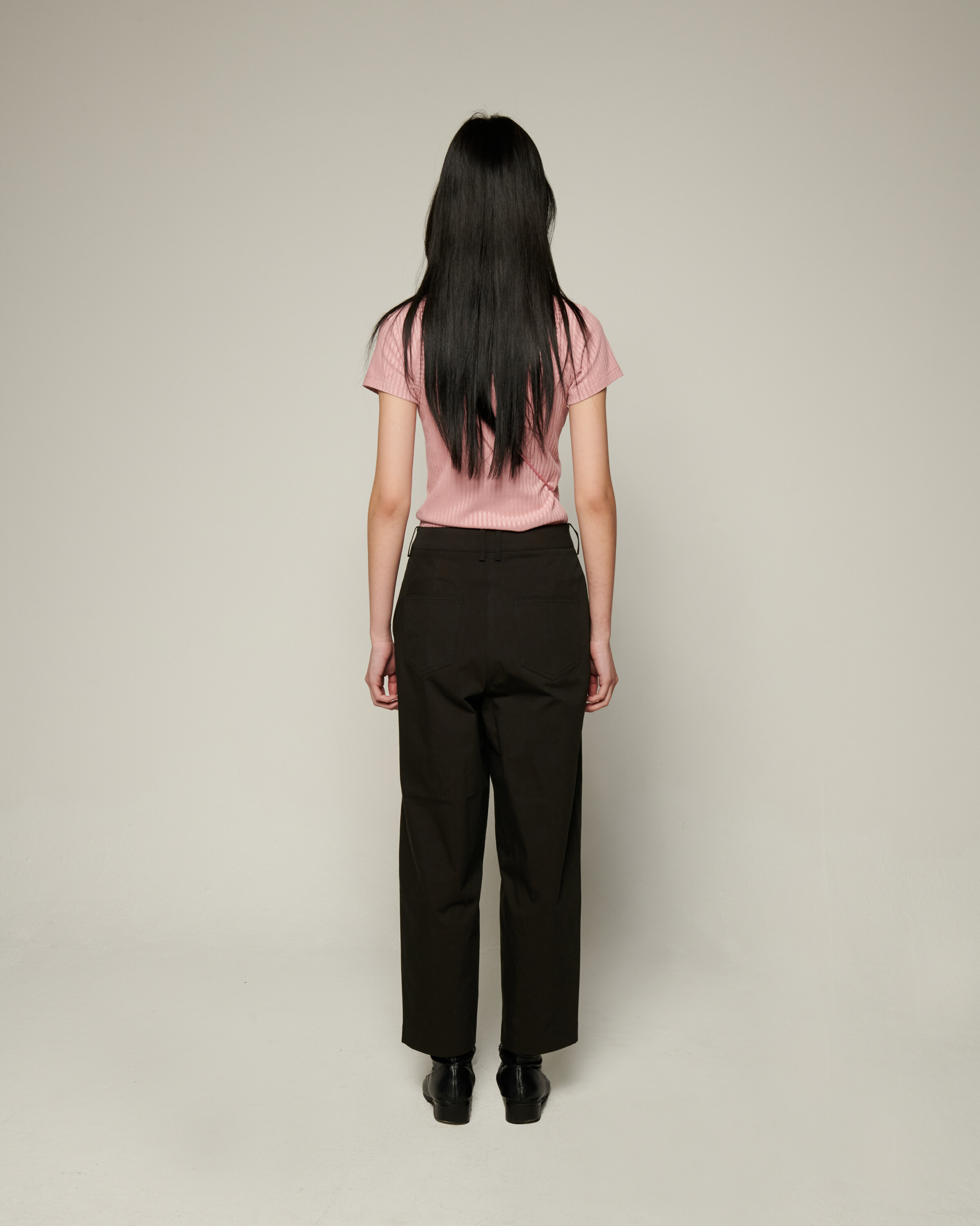주머니 라인부터 시작되는 깊은 핀턱으로 힙, 허벅지 폭이 여유로워 편하게 착용할 수 있습니다.