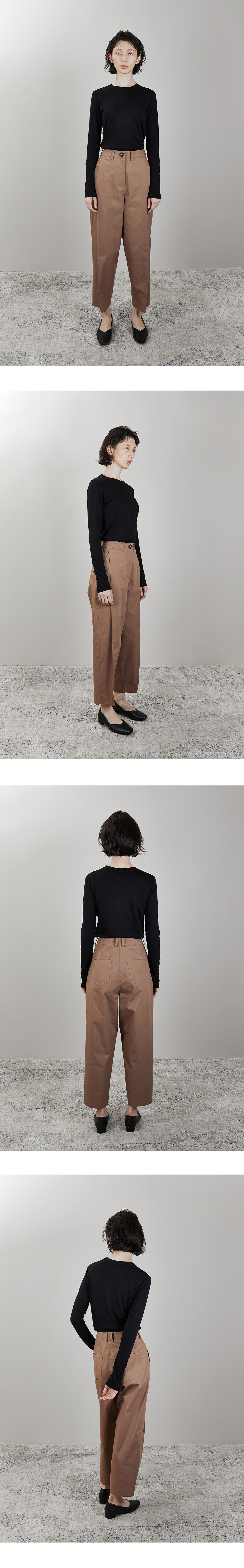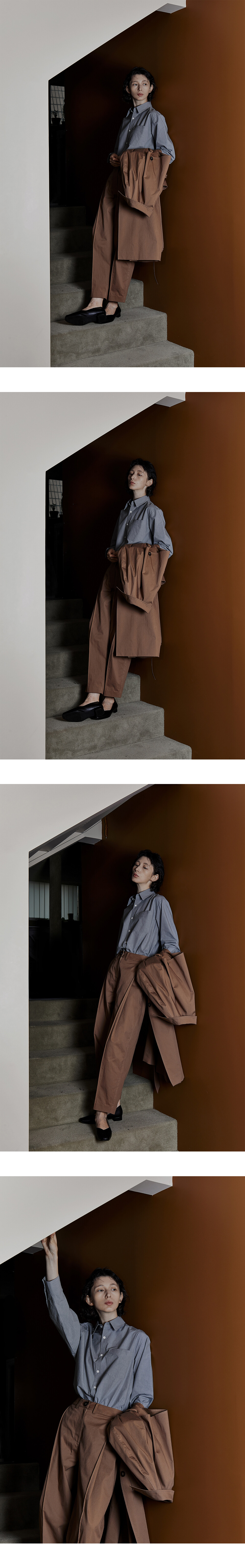 핀턱 라인은 장식스티치로 고정하여 변형이 없으며 밑단은 내부에서 마감처리하여 정돈된 실루엣을 보여줍니다.
