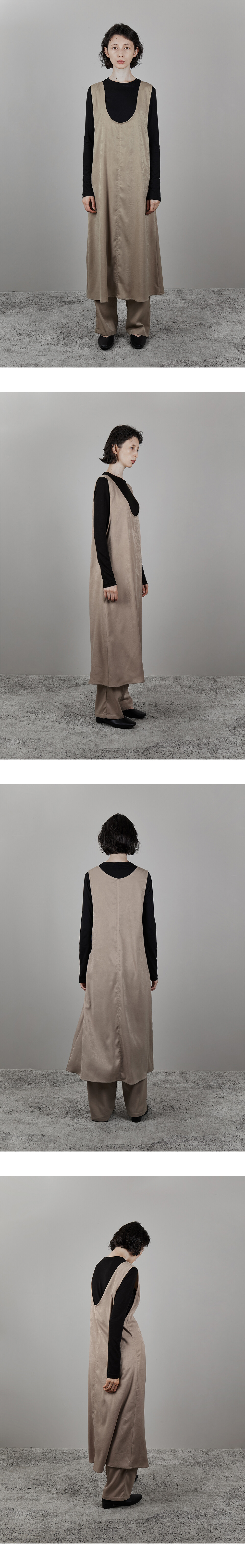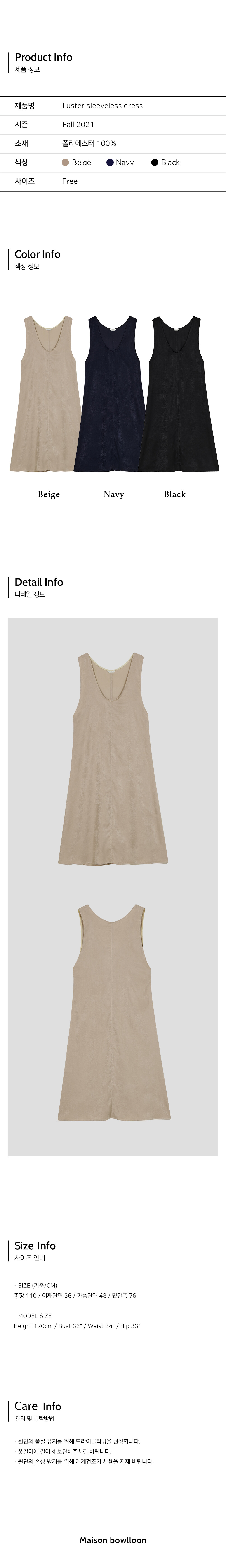 은은한 반광이 특징인 원단을 사용하여 제작된 슬리브리스 드레스입니다.