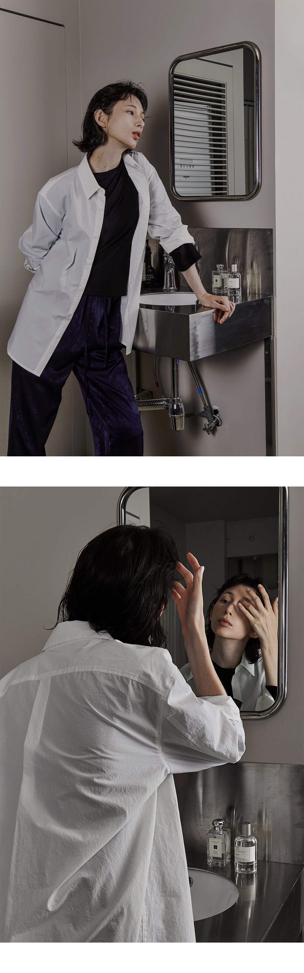 워싱을 통해 만들어진 러프한 표면질감을 통해 보다 캐주얼한 무드를 전합니다.