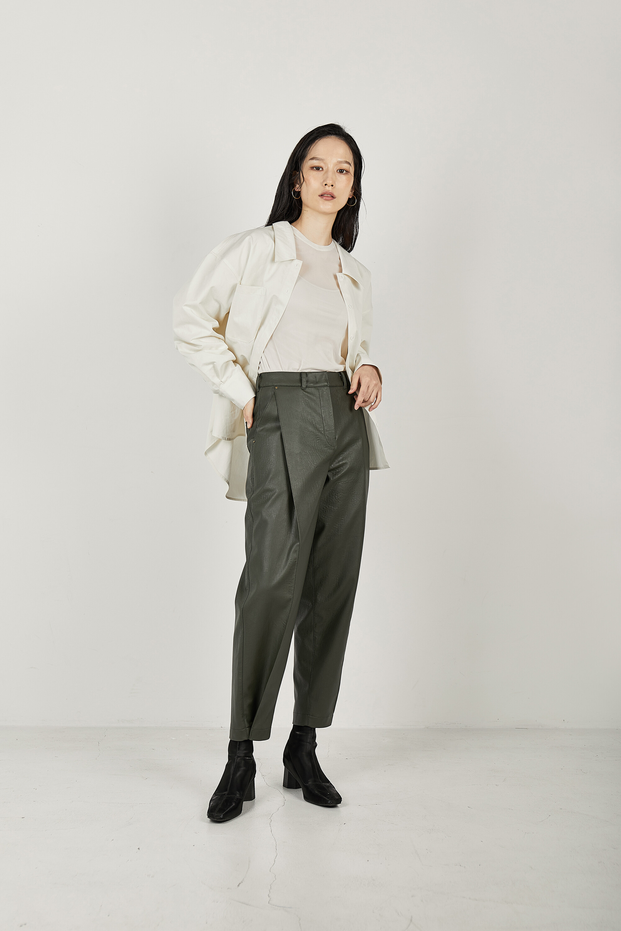 원단 표면에 은은한 광택이 있으며, 고시감 있는 소재를 사용하여 형태유지력이 뛰어납니다.