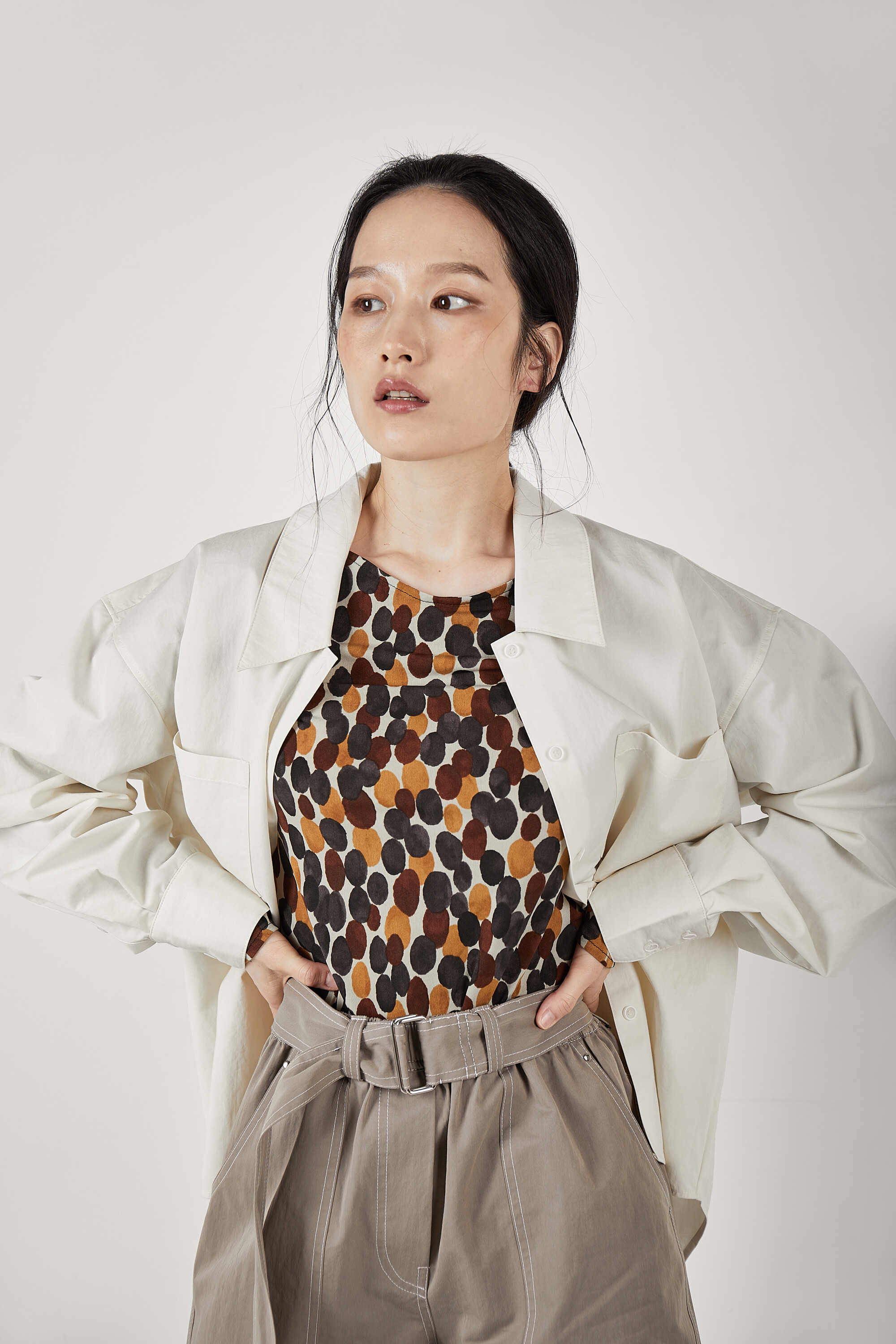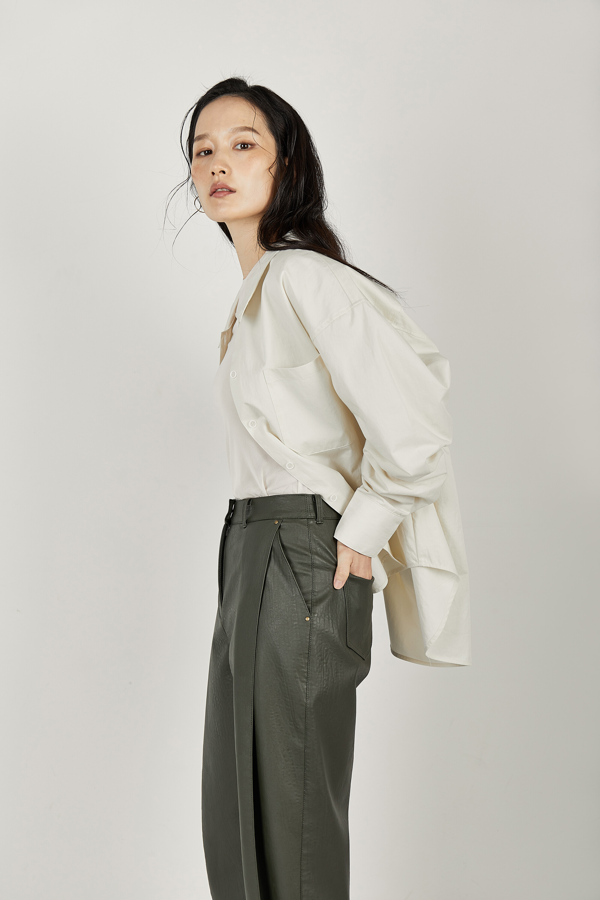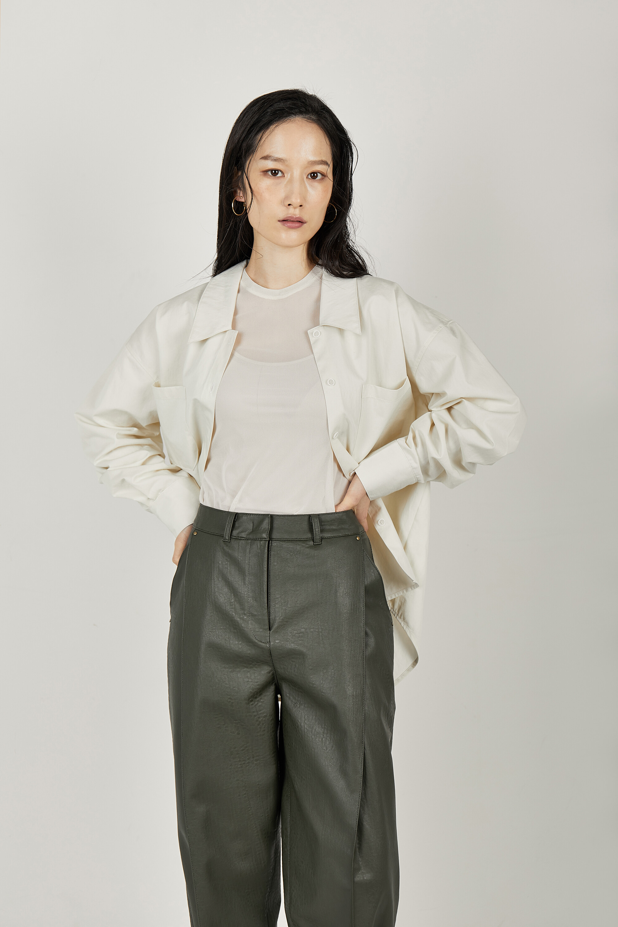 코튼-나일론 혼방 소재로 제작된 오버사이즈 셔츠입니다.
