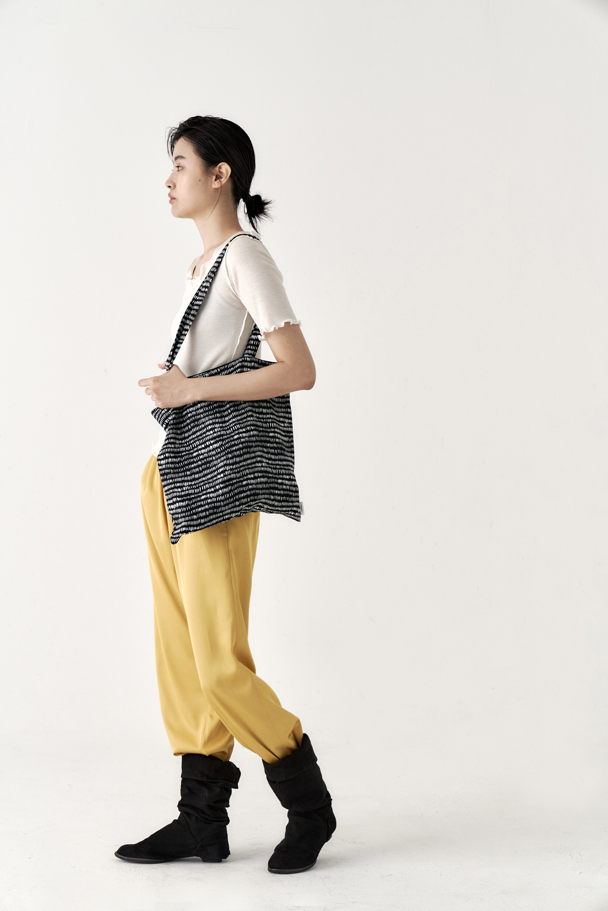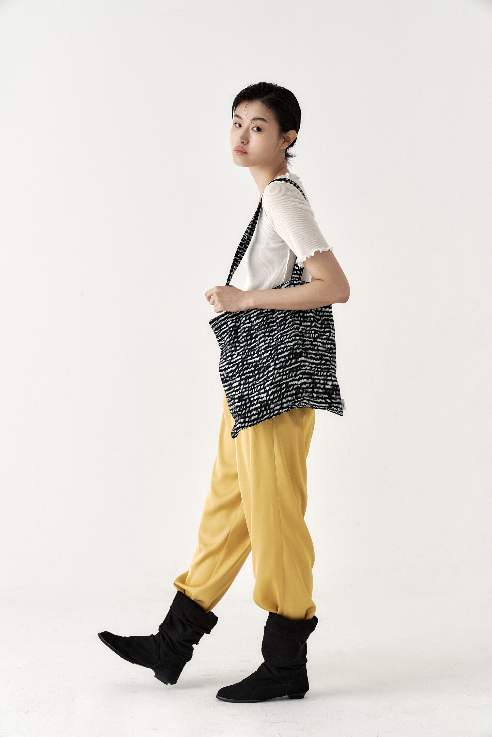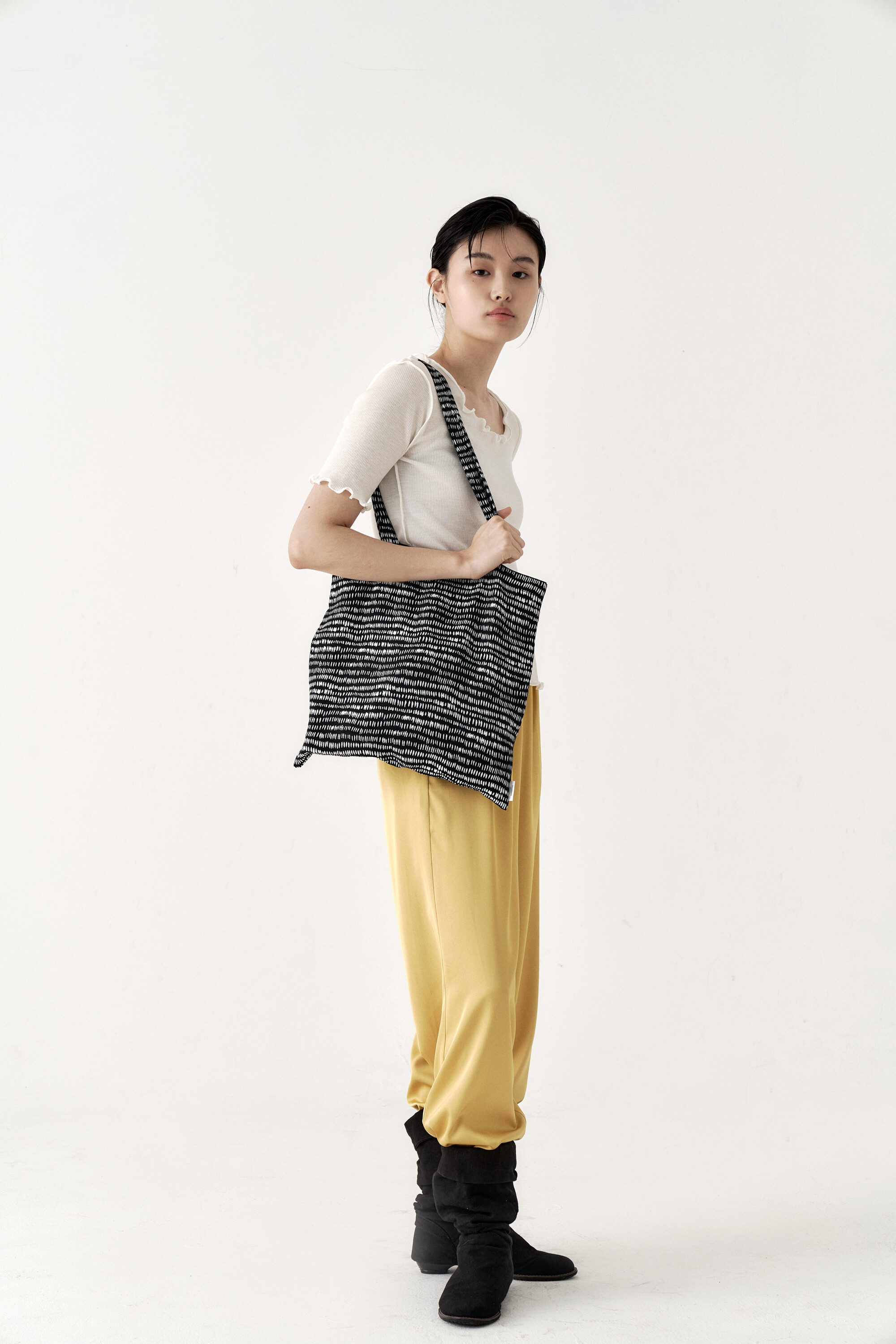 조직감이 느껴지는 유연한 원단 위에 도트 프린팅이 가미된 에코백입니다.