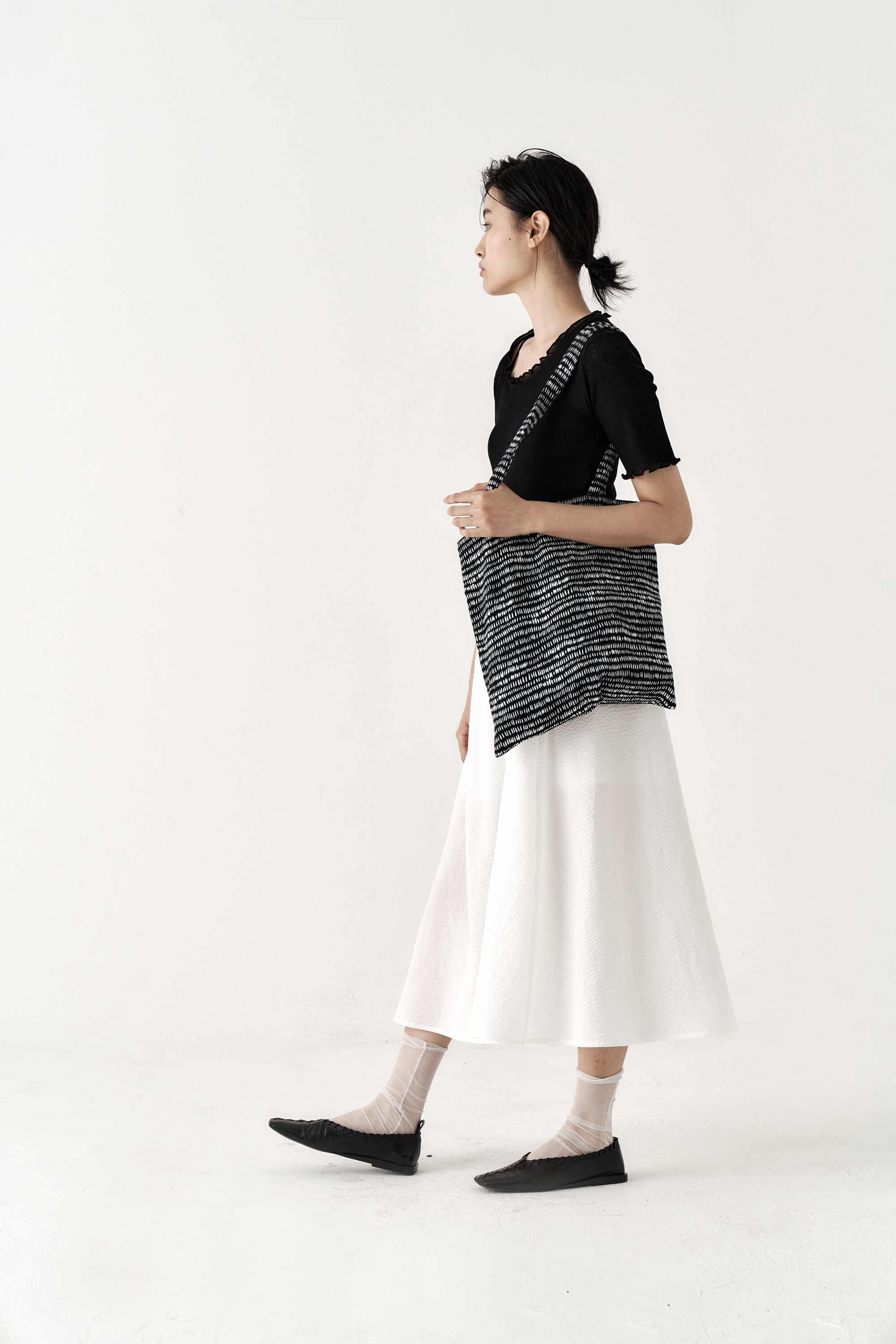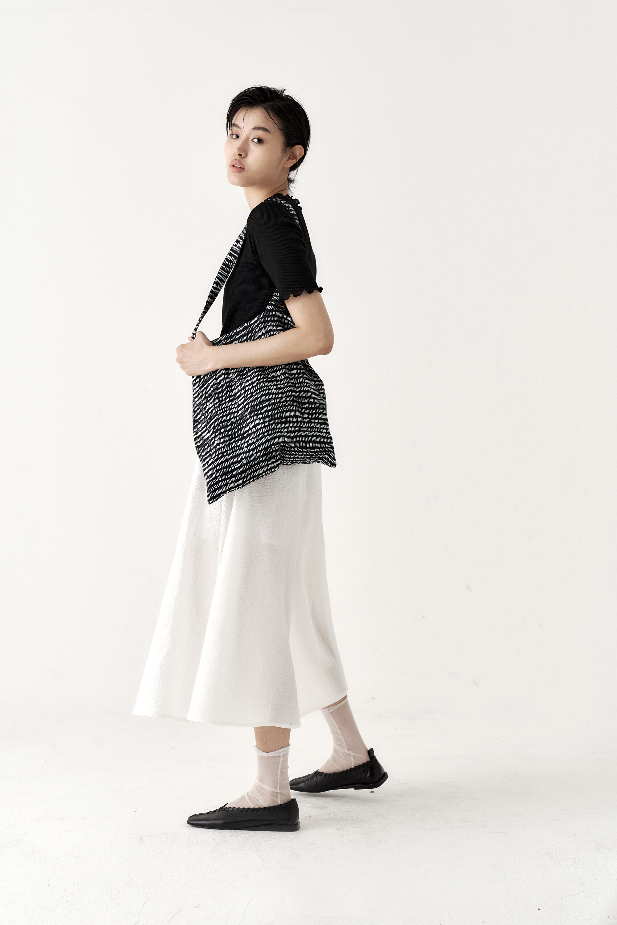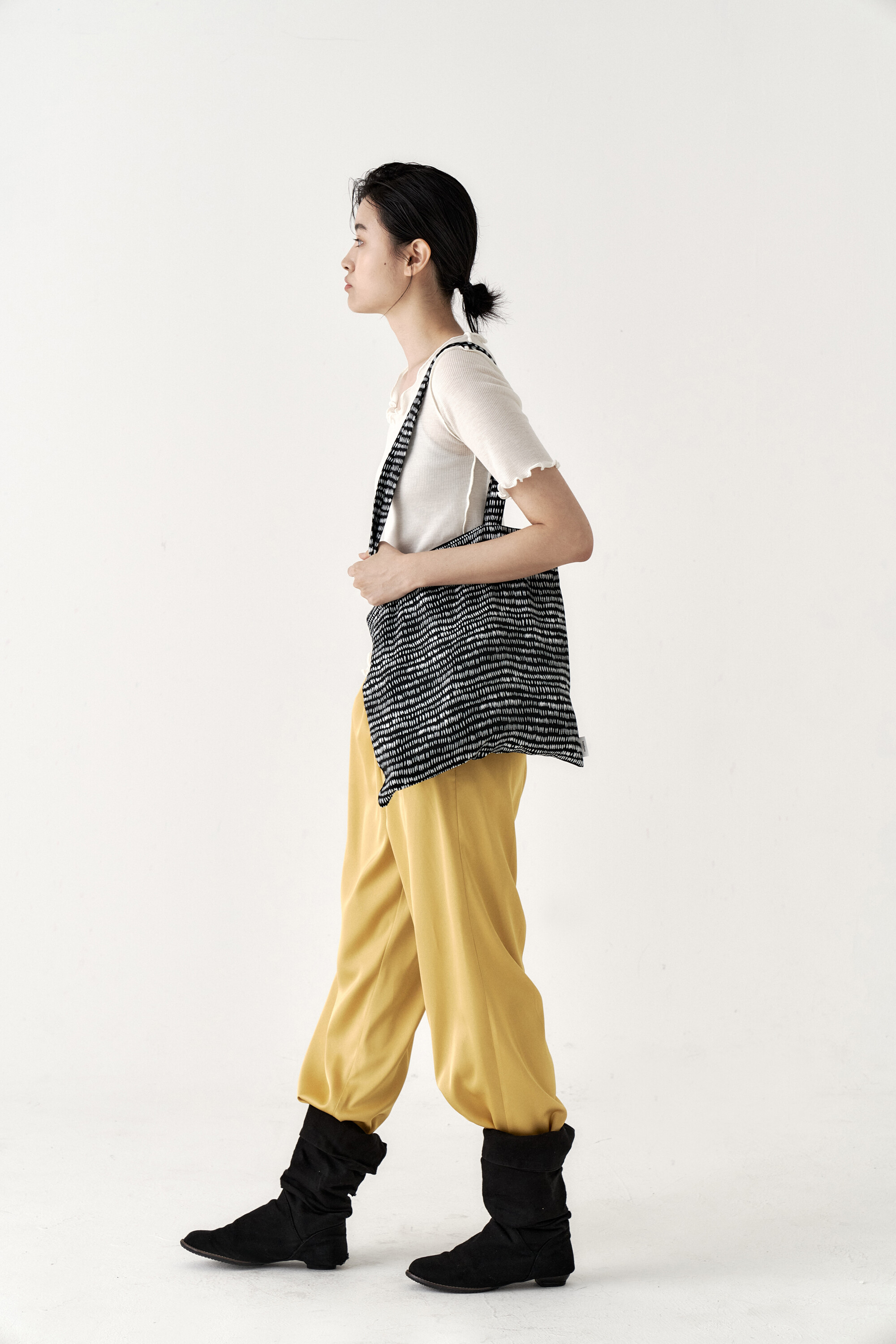 조직감이 느껴지는 유연한 원단 위에 도트 프린팅이 가미된 에코백입니다.