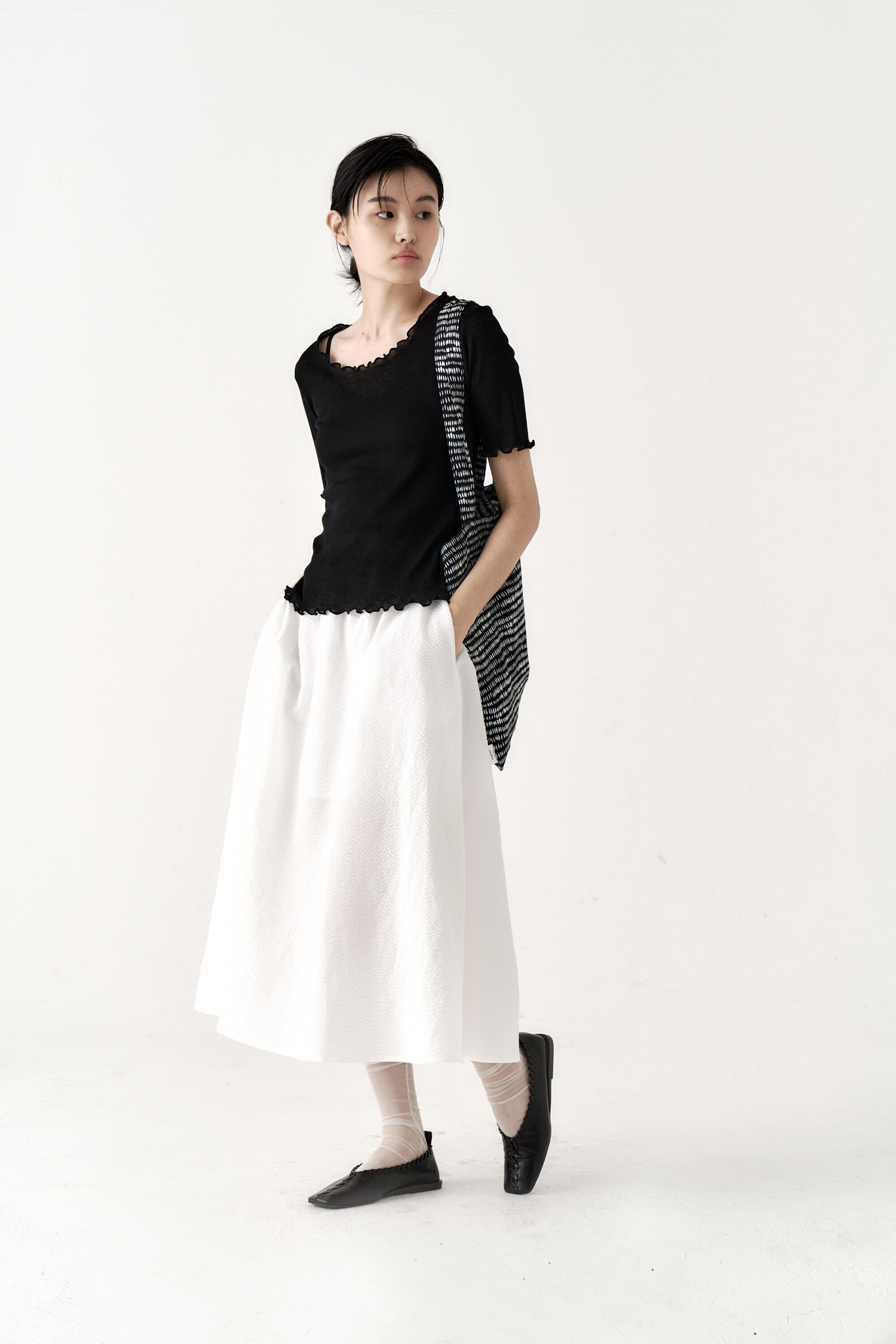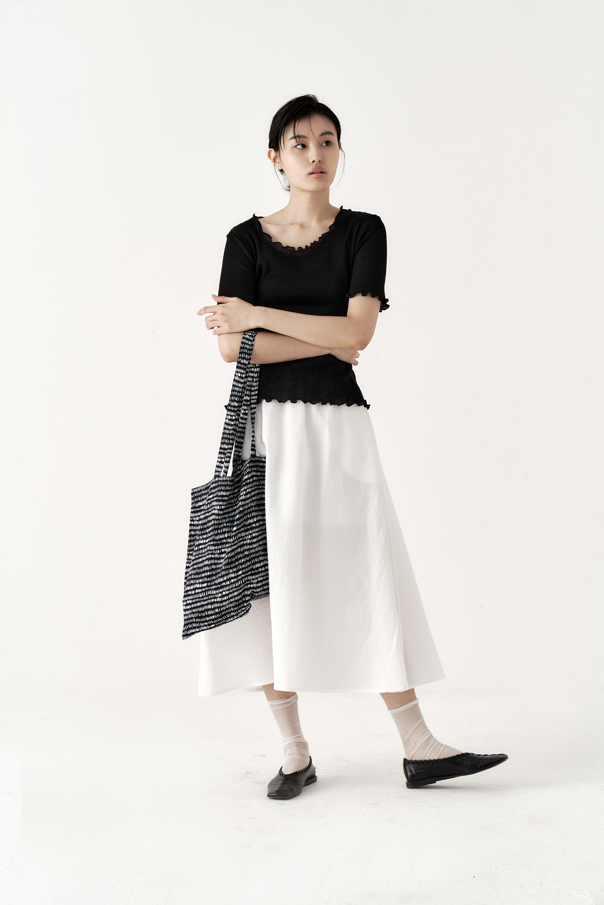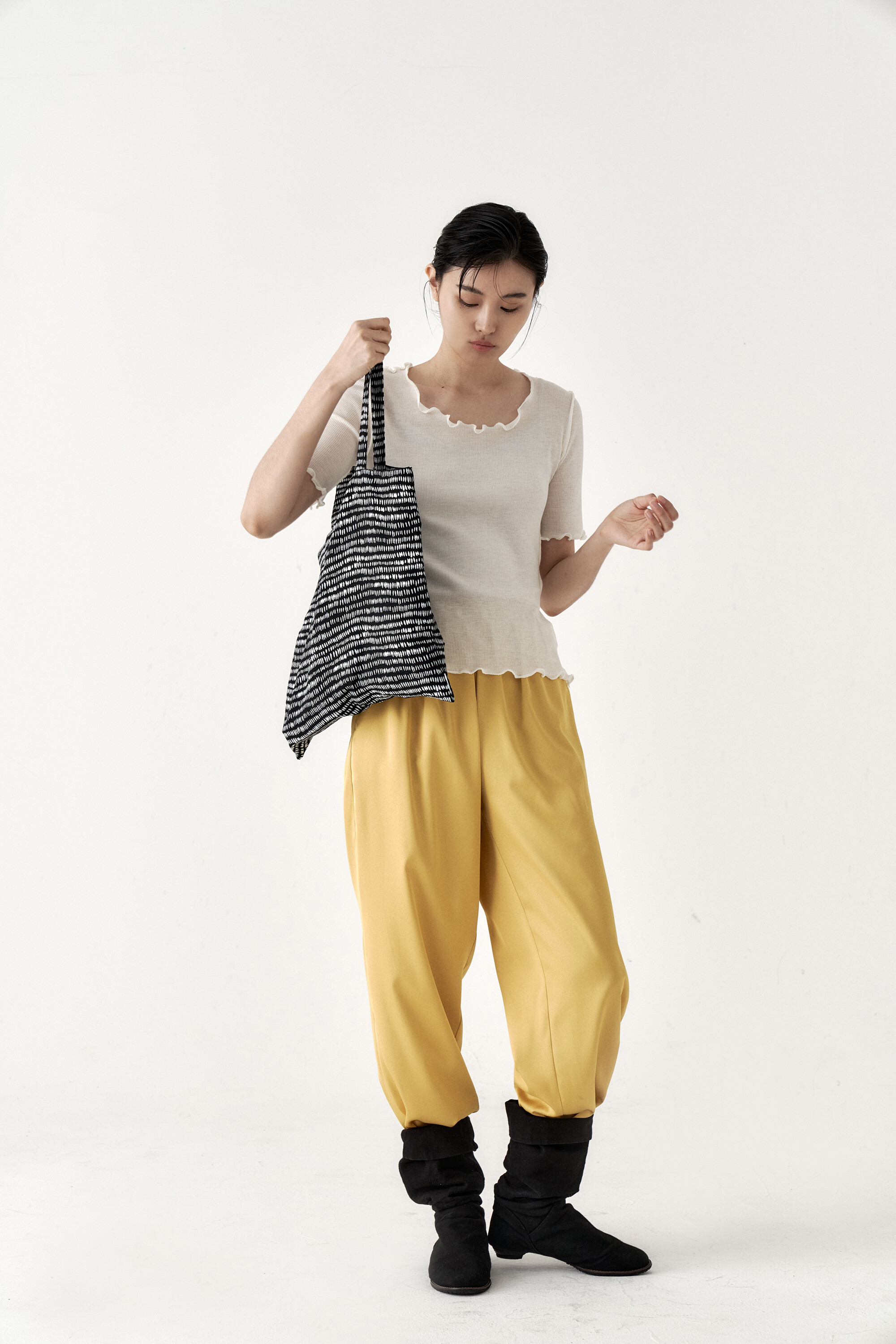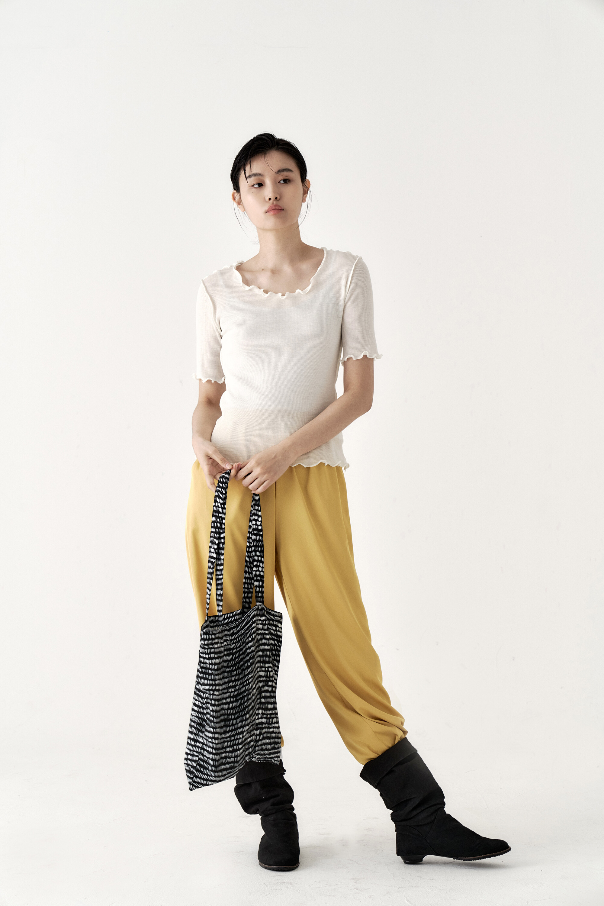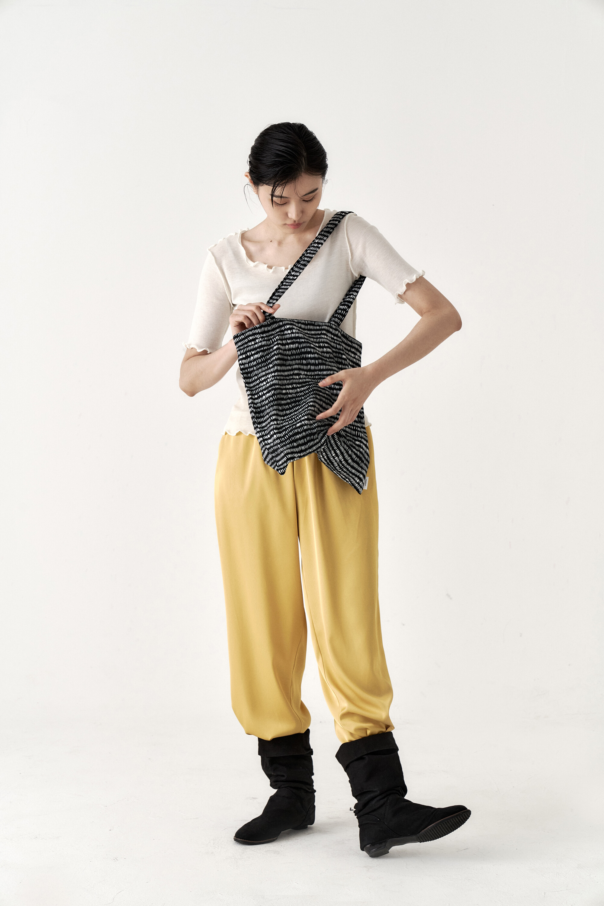 드레이프성이 강한 원단으로 유연한 실루엣을 보여줍니다.