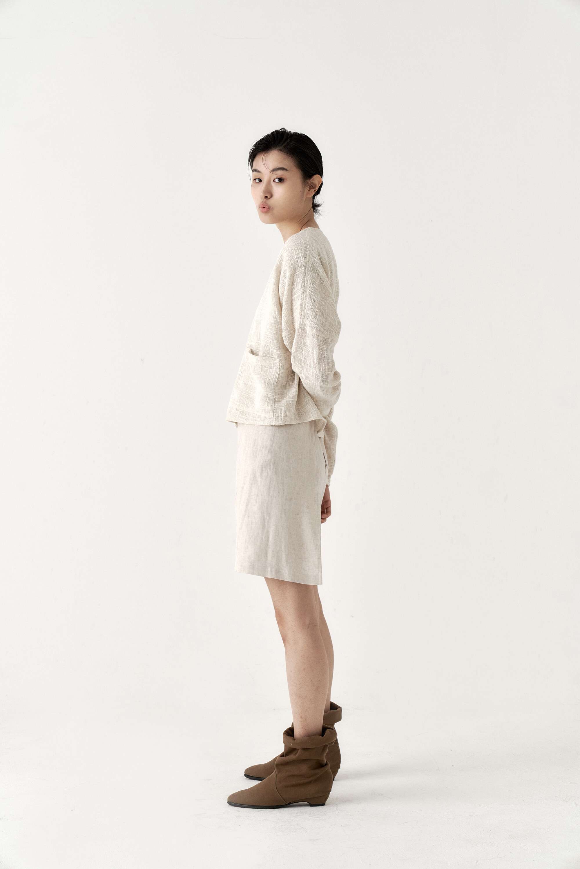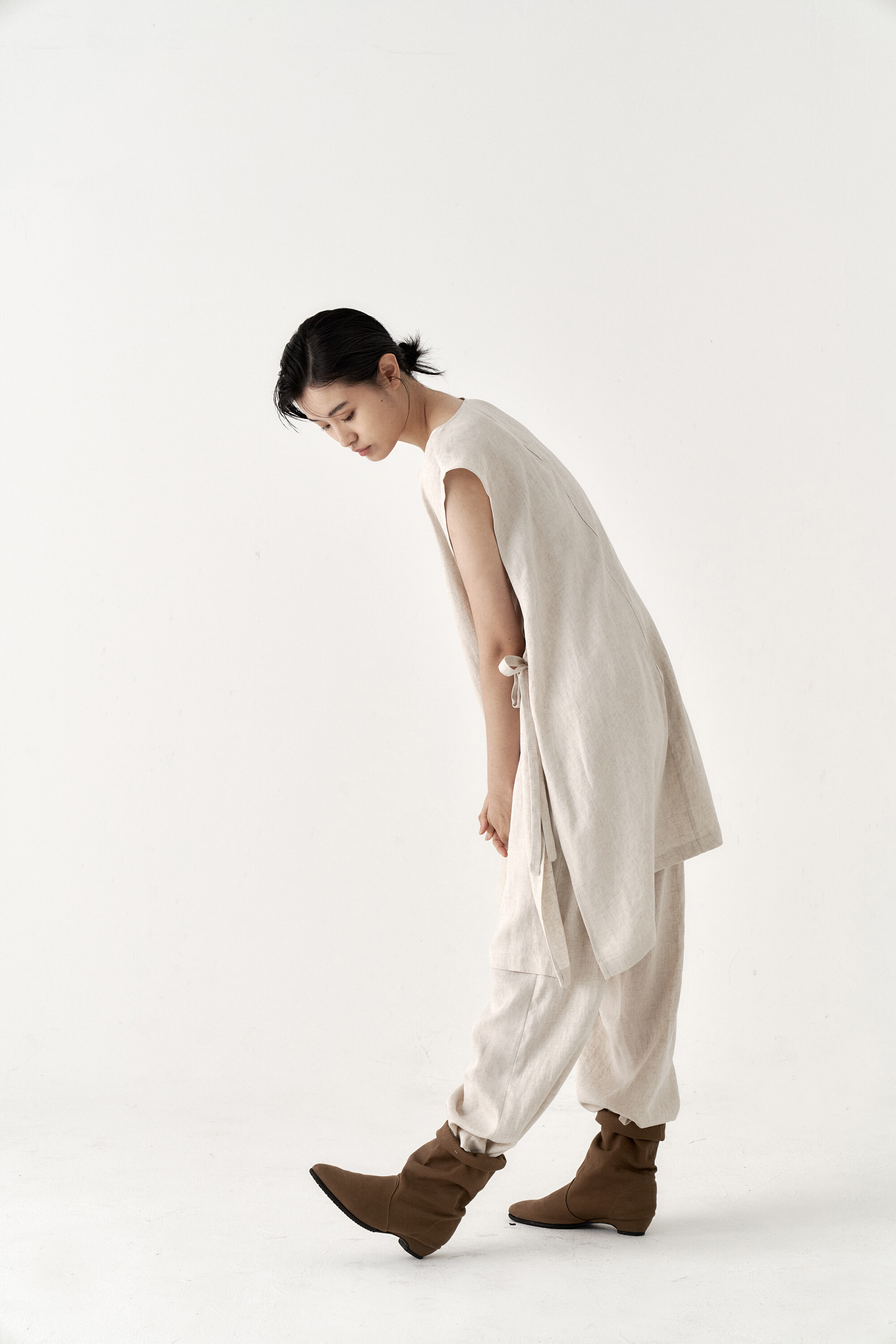 혼방 린넨으로 제작된 롱 베스트입니다.