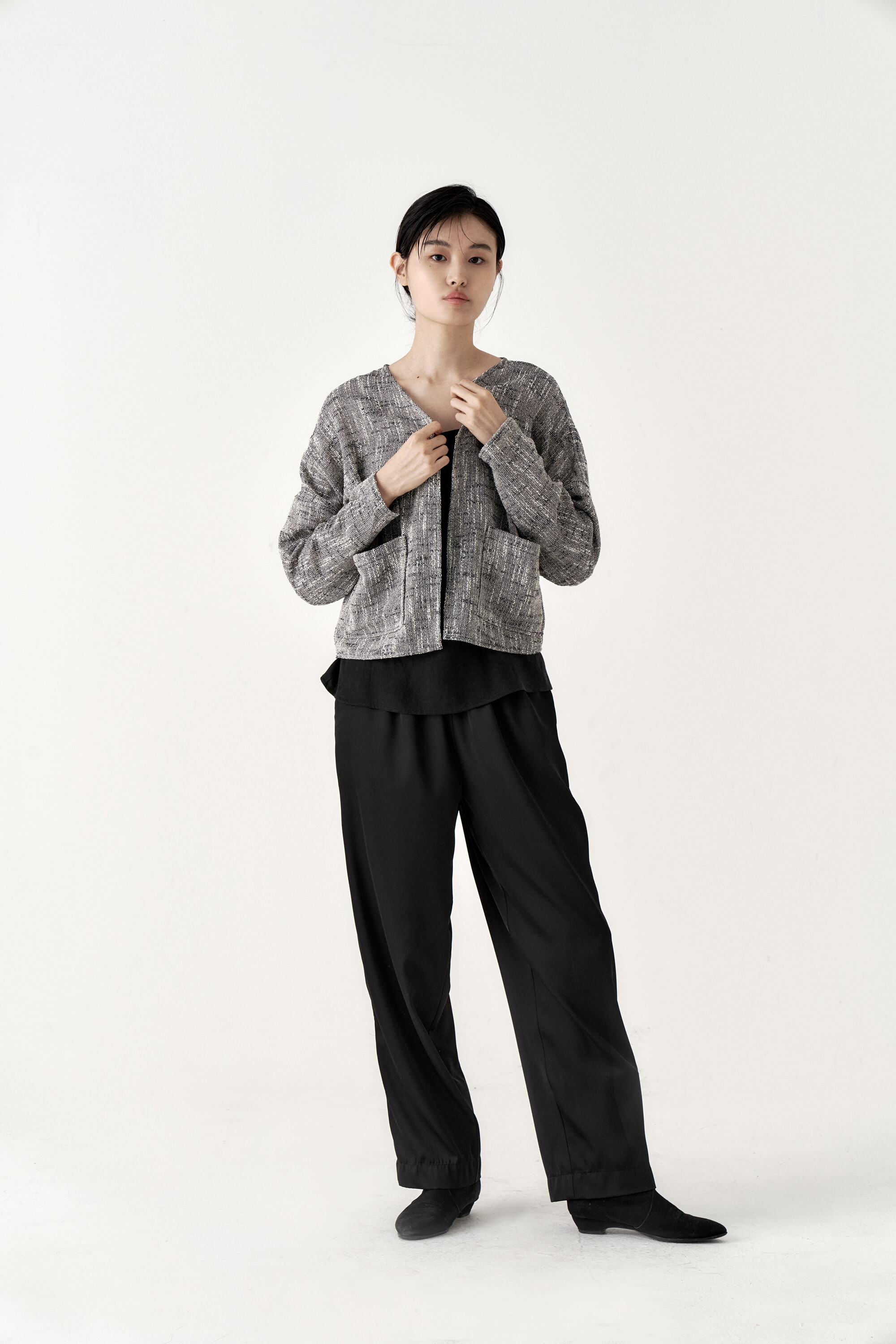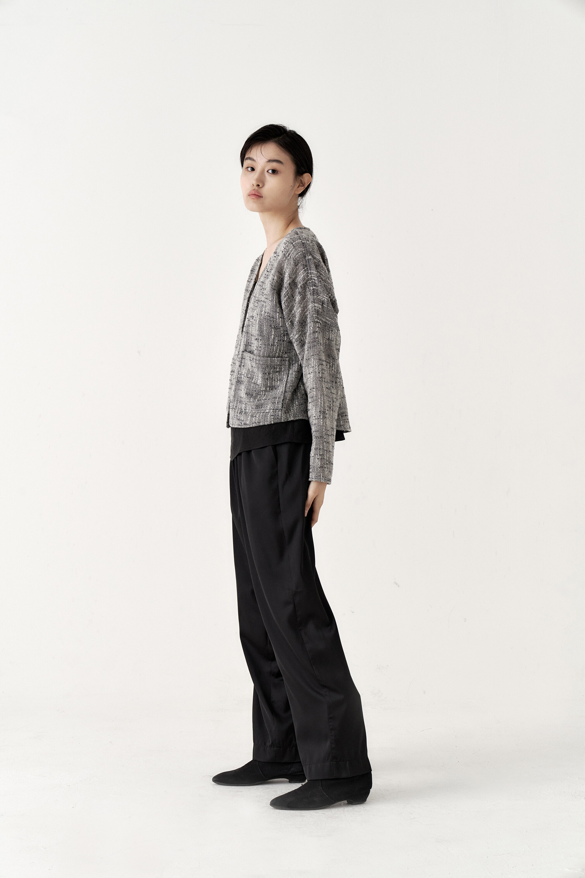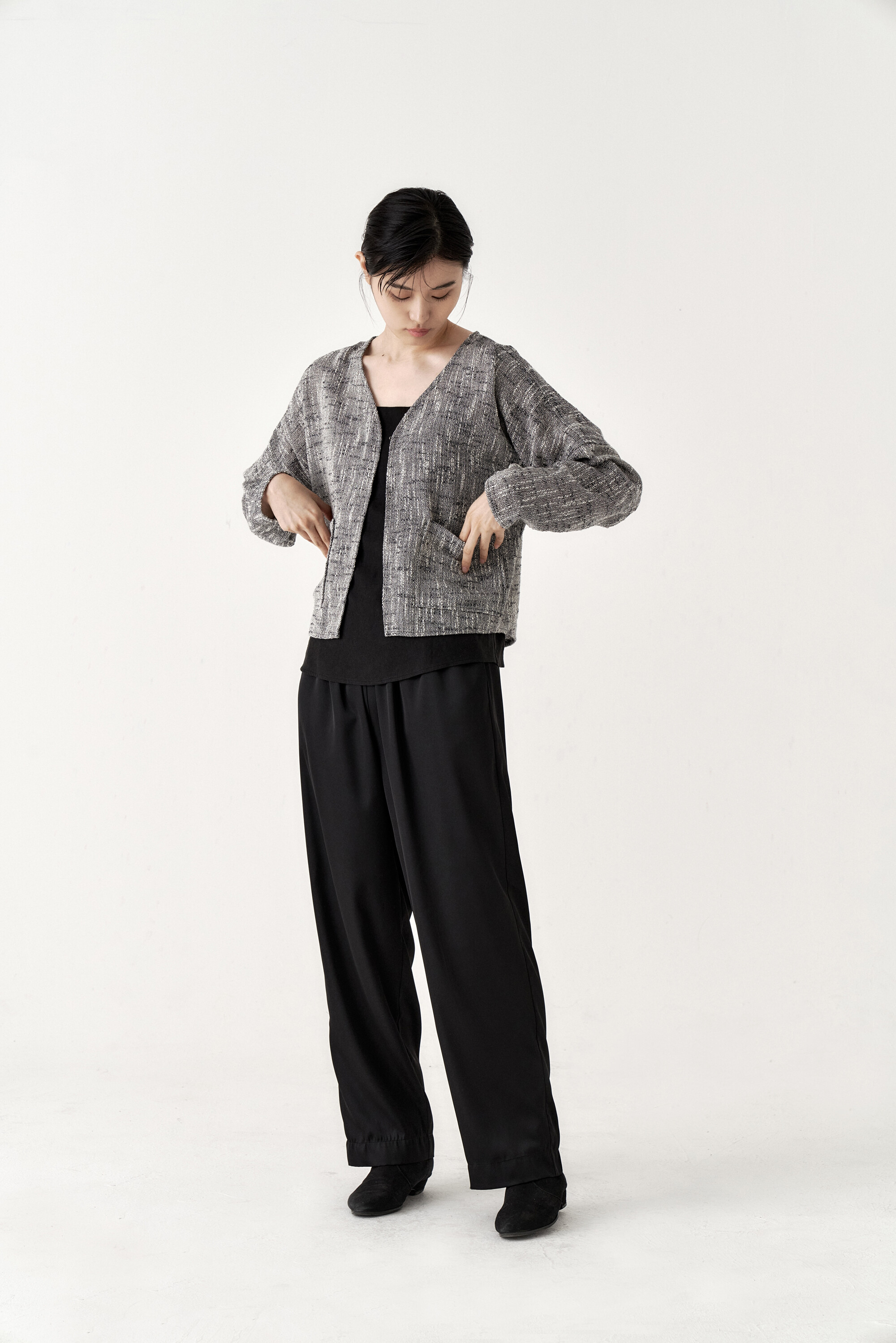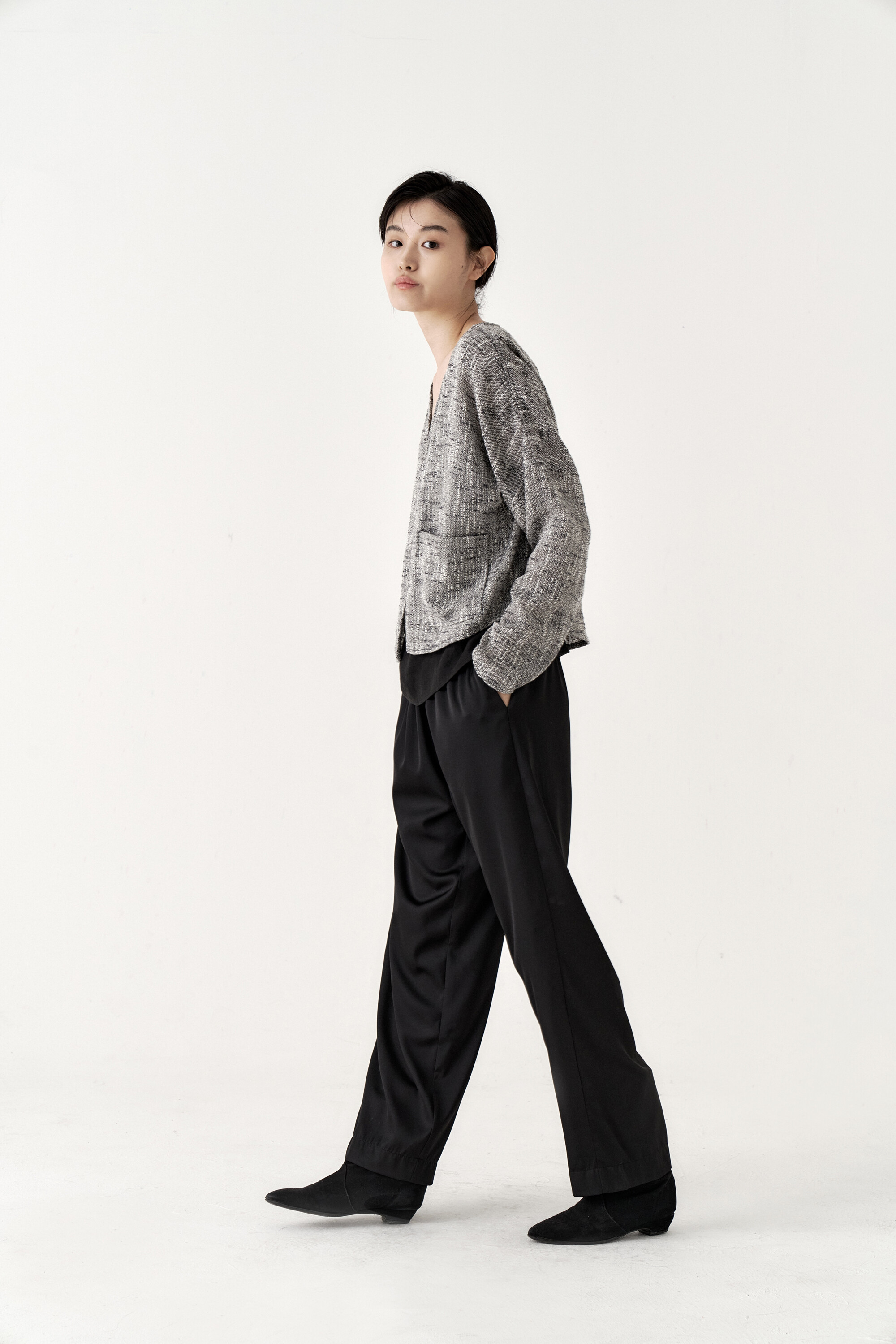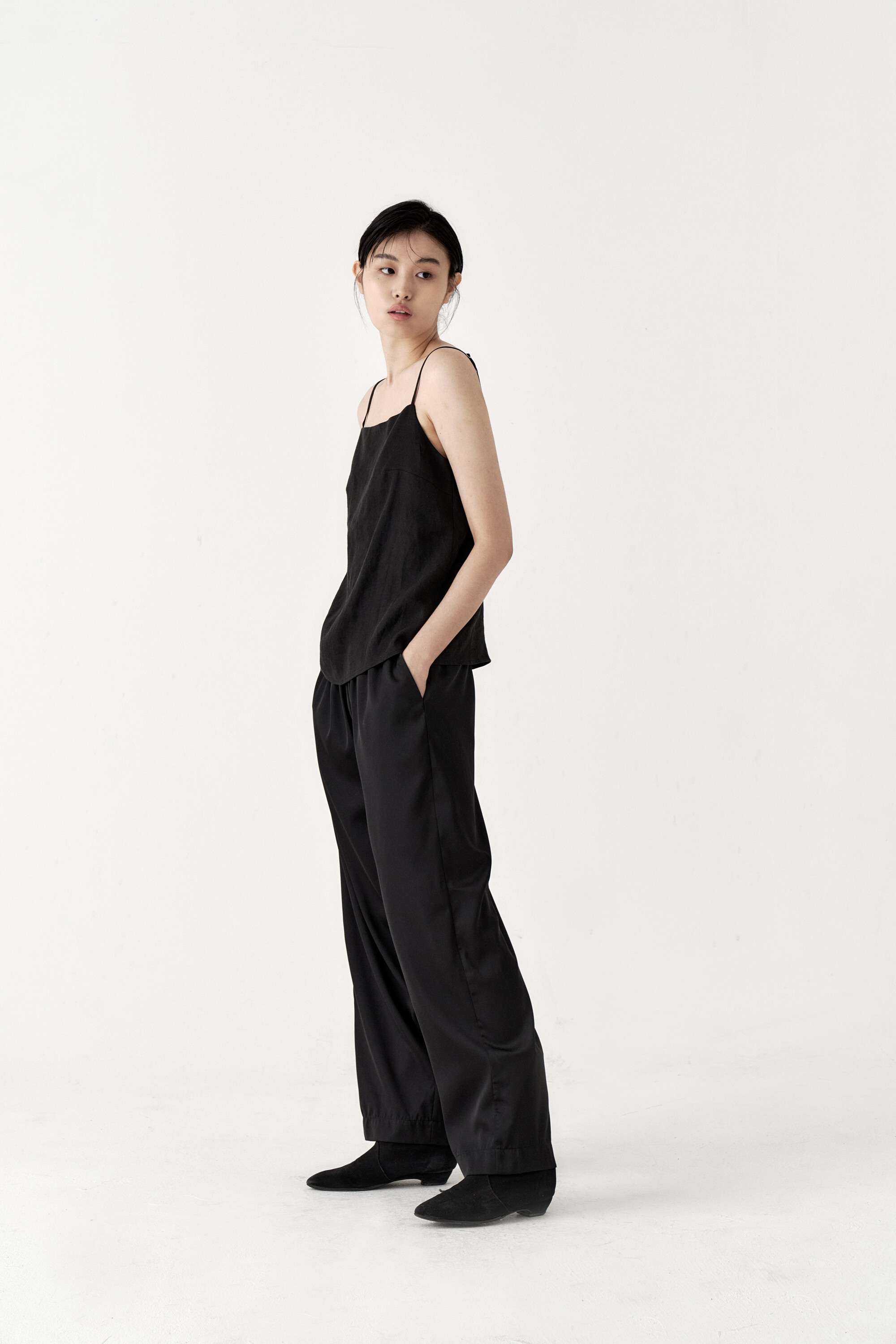 드레이프성이 강한 원단으로 몸을 따라 떨어지는 실루엣이 포인트가 되며, 몸에 닿는 착용감 또한 우수합니다.