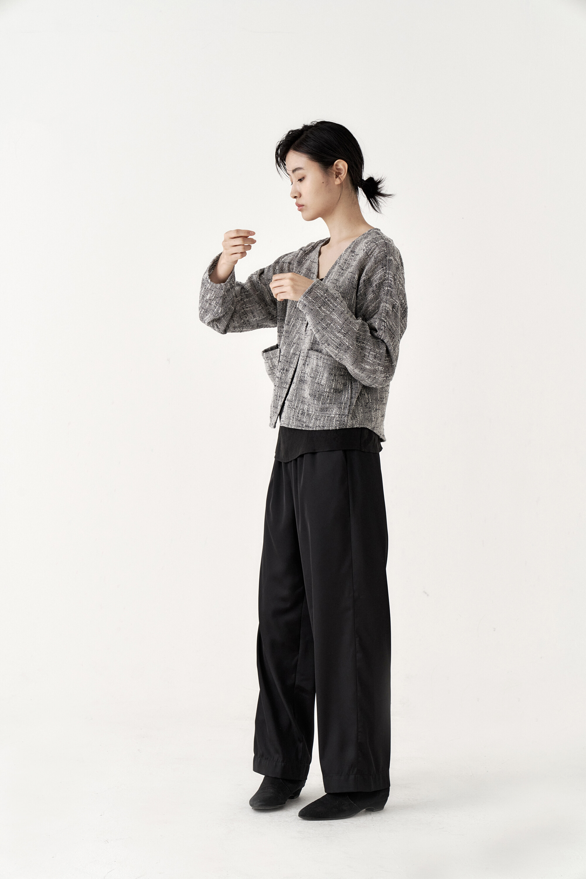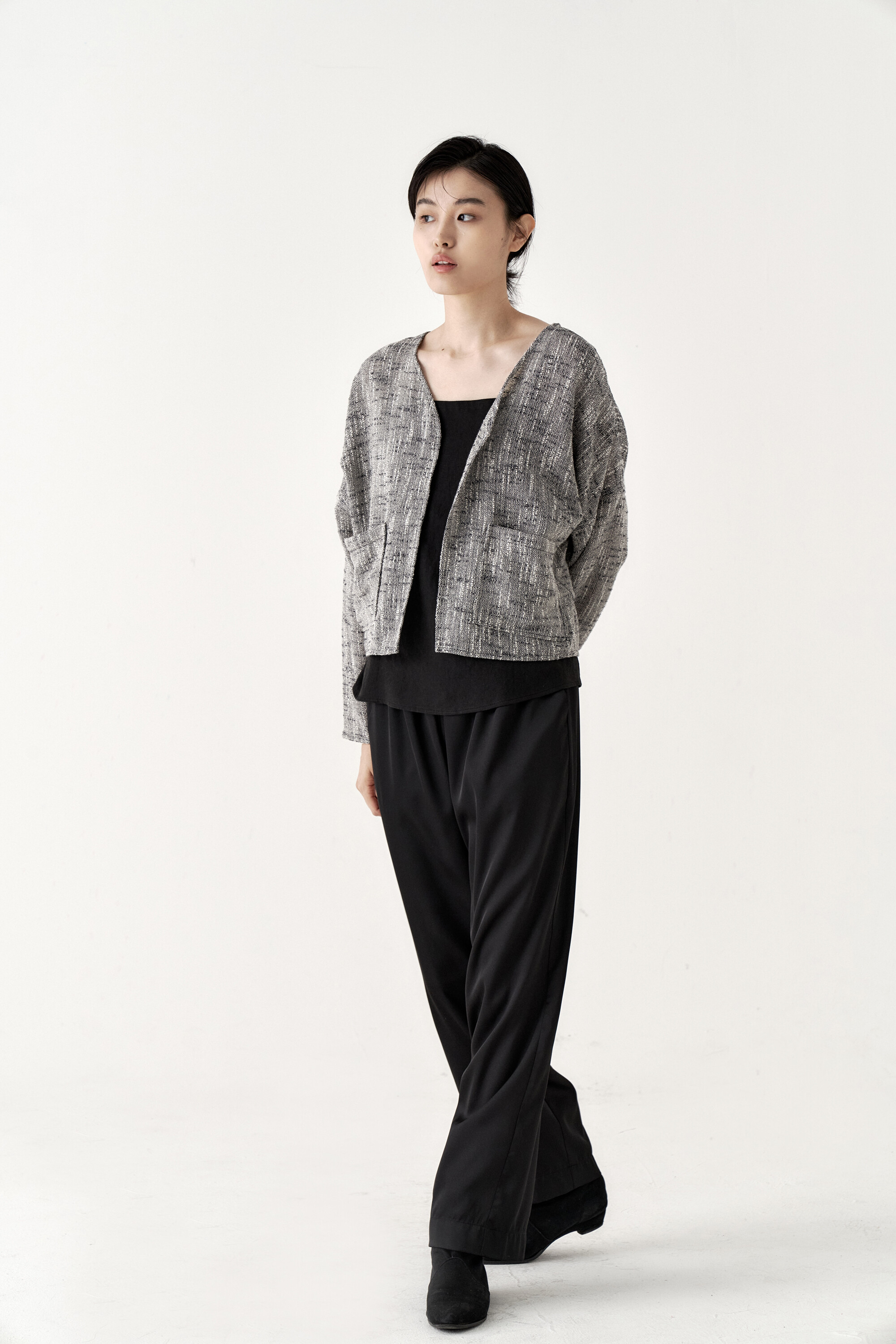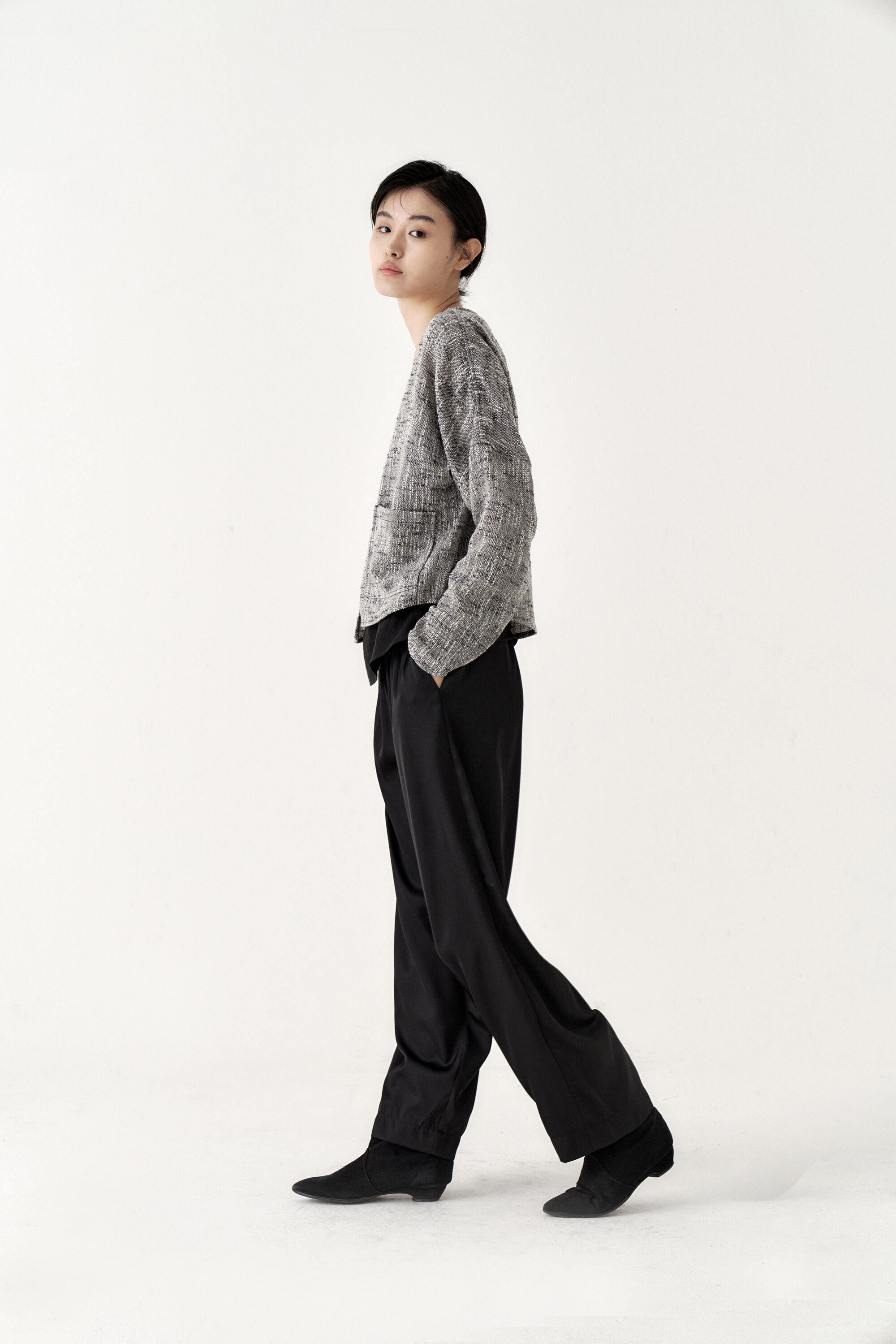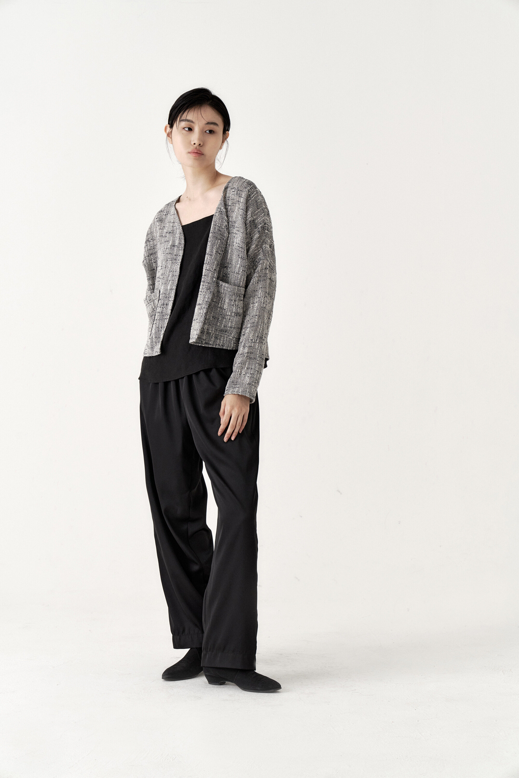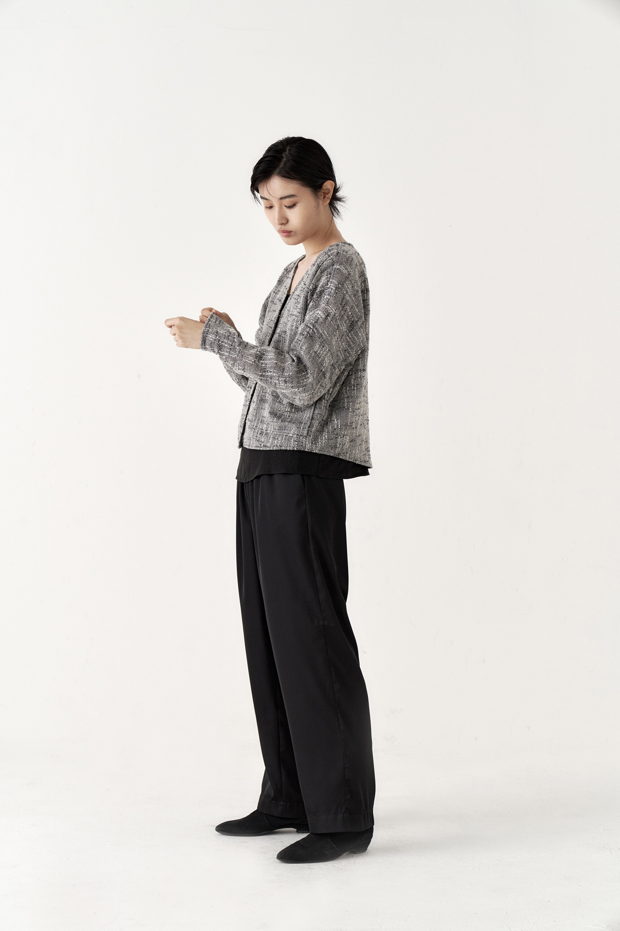 드레이프성이 강한 원단으로 몸을 따라 떨어지는 실루엣이 포인트가 되며, 몸에 닿는 착용감 또한 우수합니다.