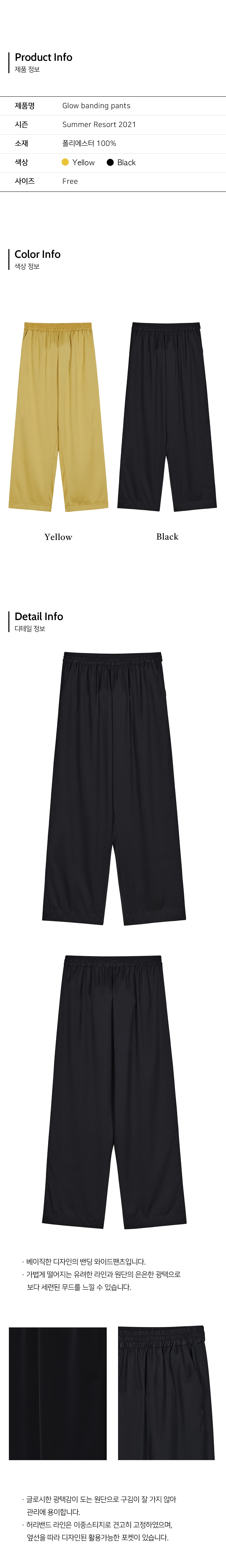 은은한 광택이 도는 원단으로 제작된 밴딩 와이드 팬츠입니다.