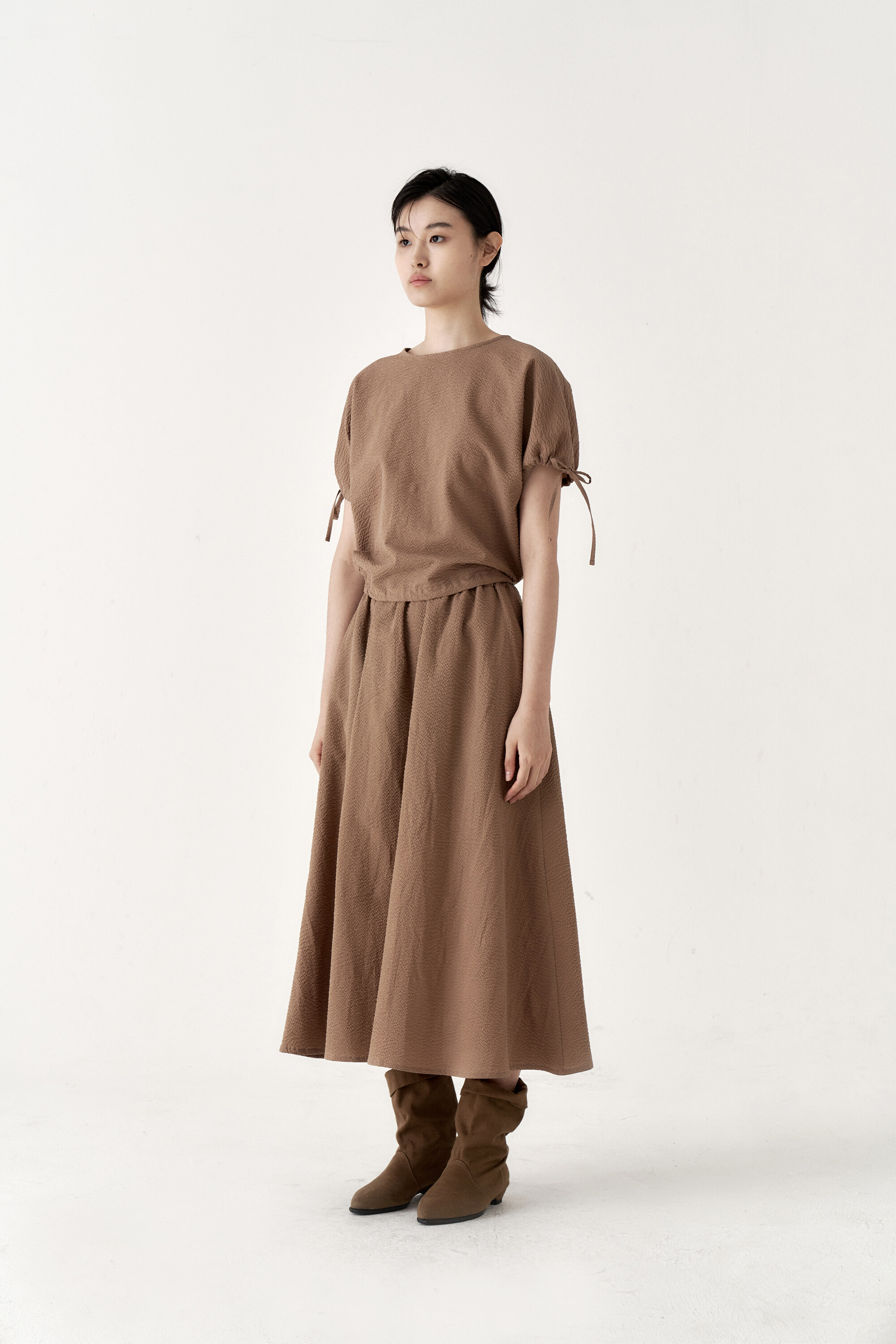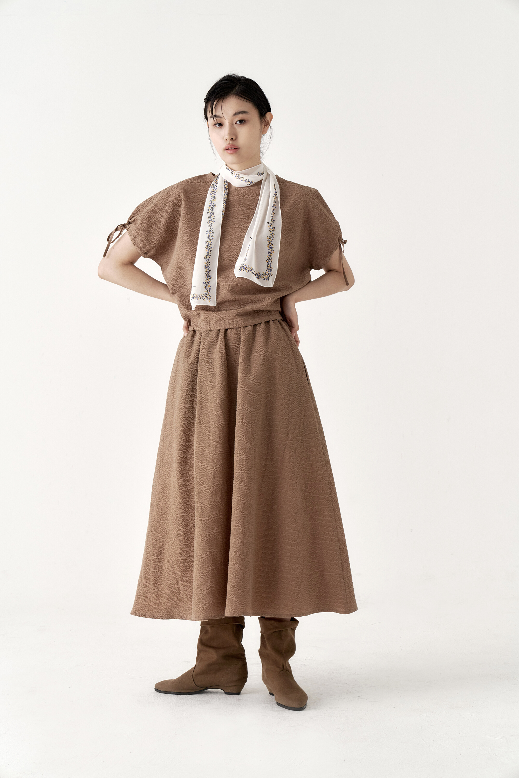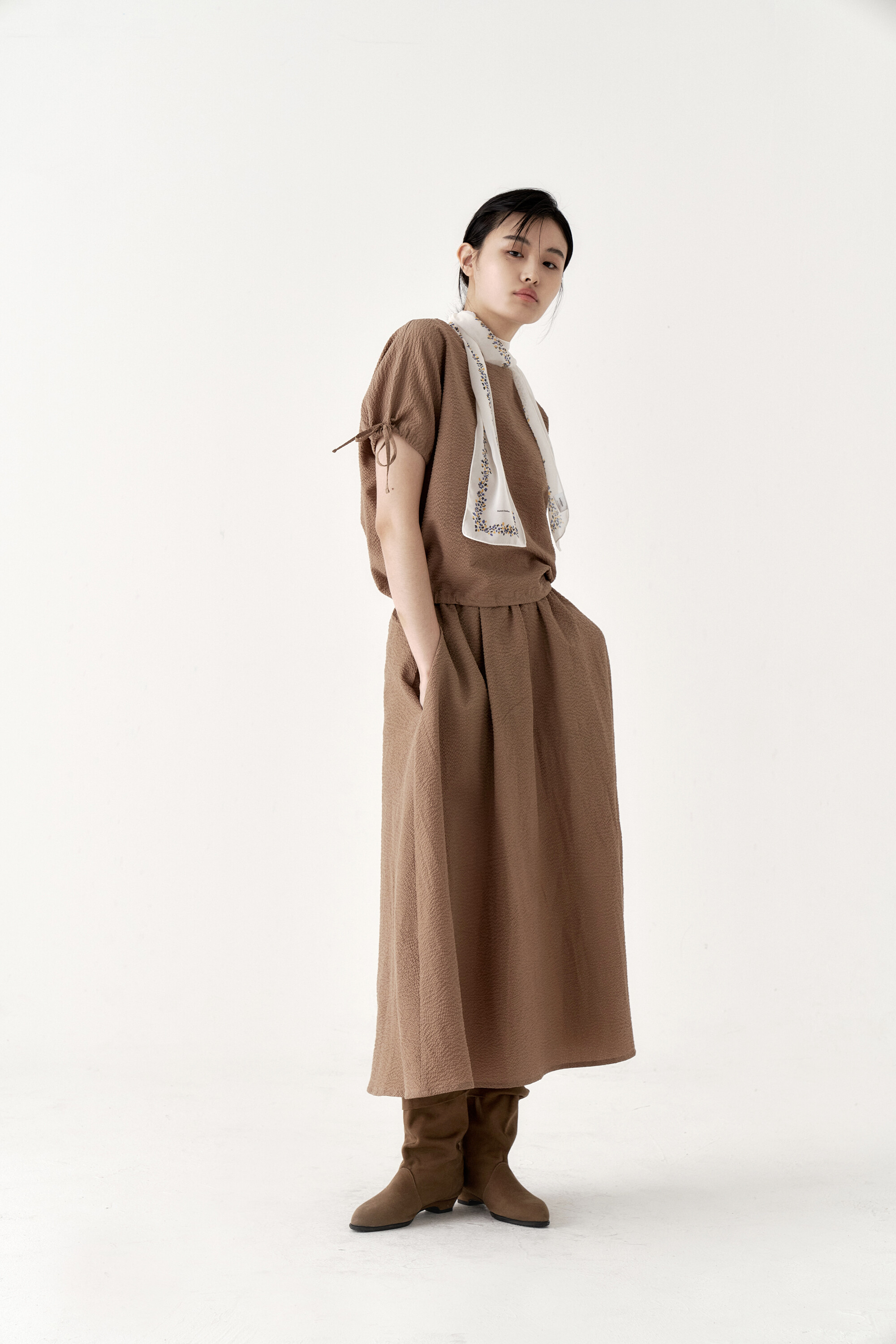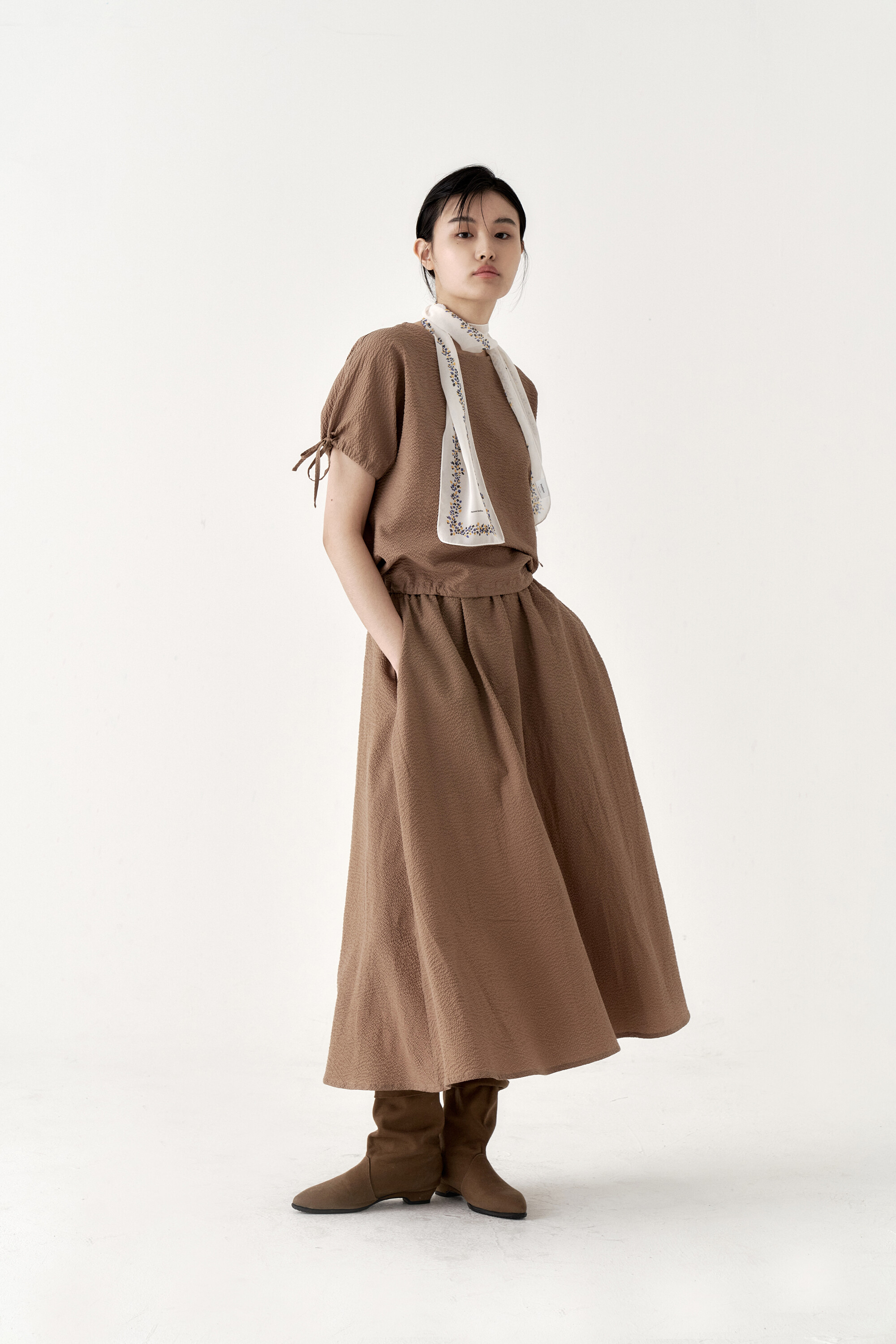 원단 표면에 엠보가 느껴지는 시어서커 원단으로 제작된 크롭 블라우스입니다.