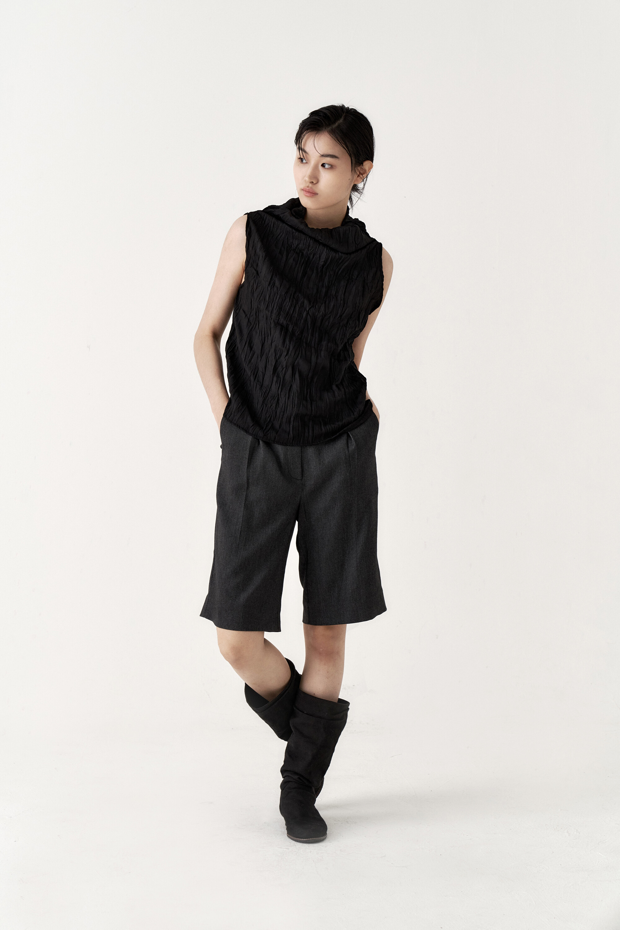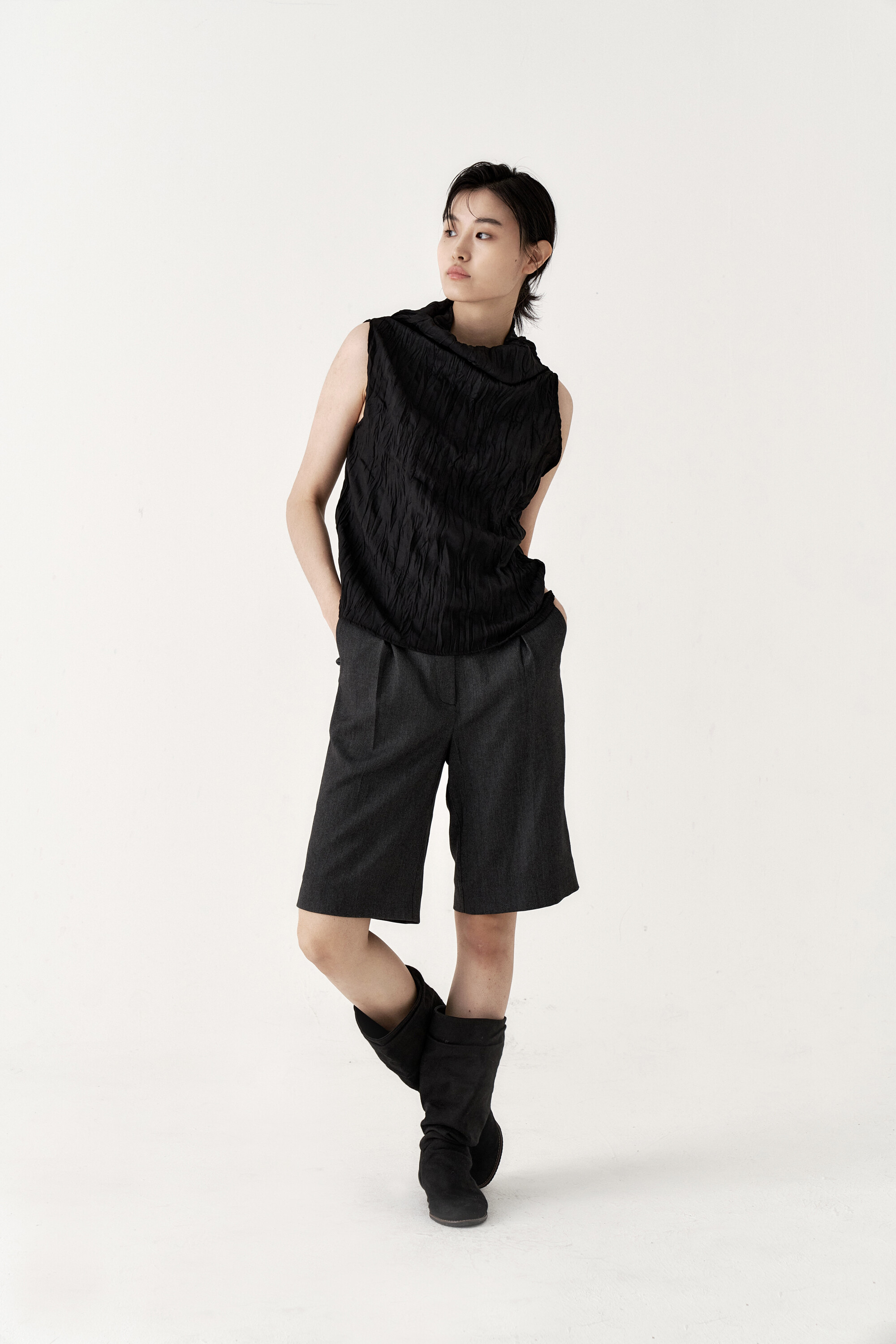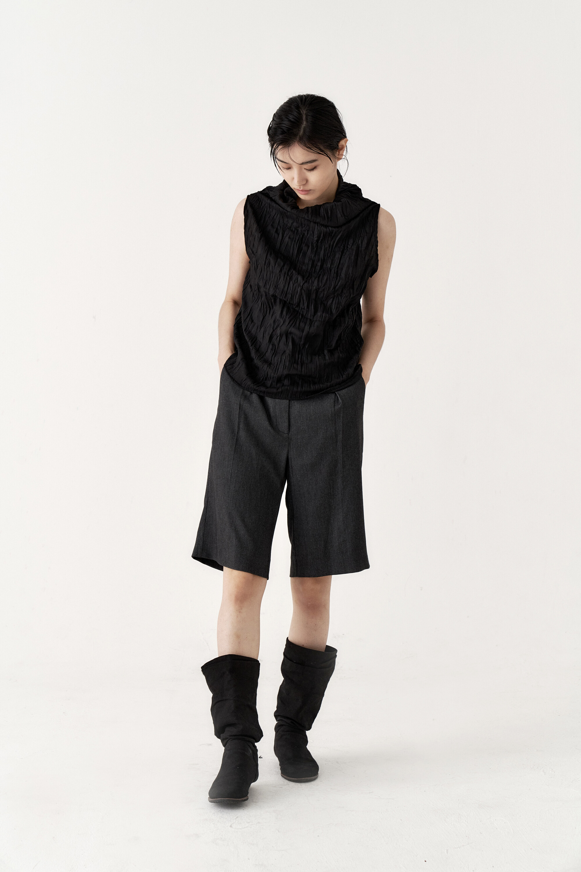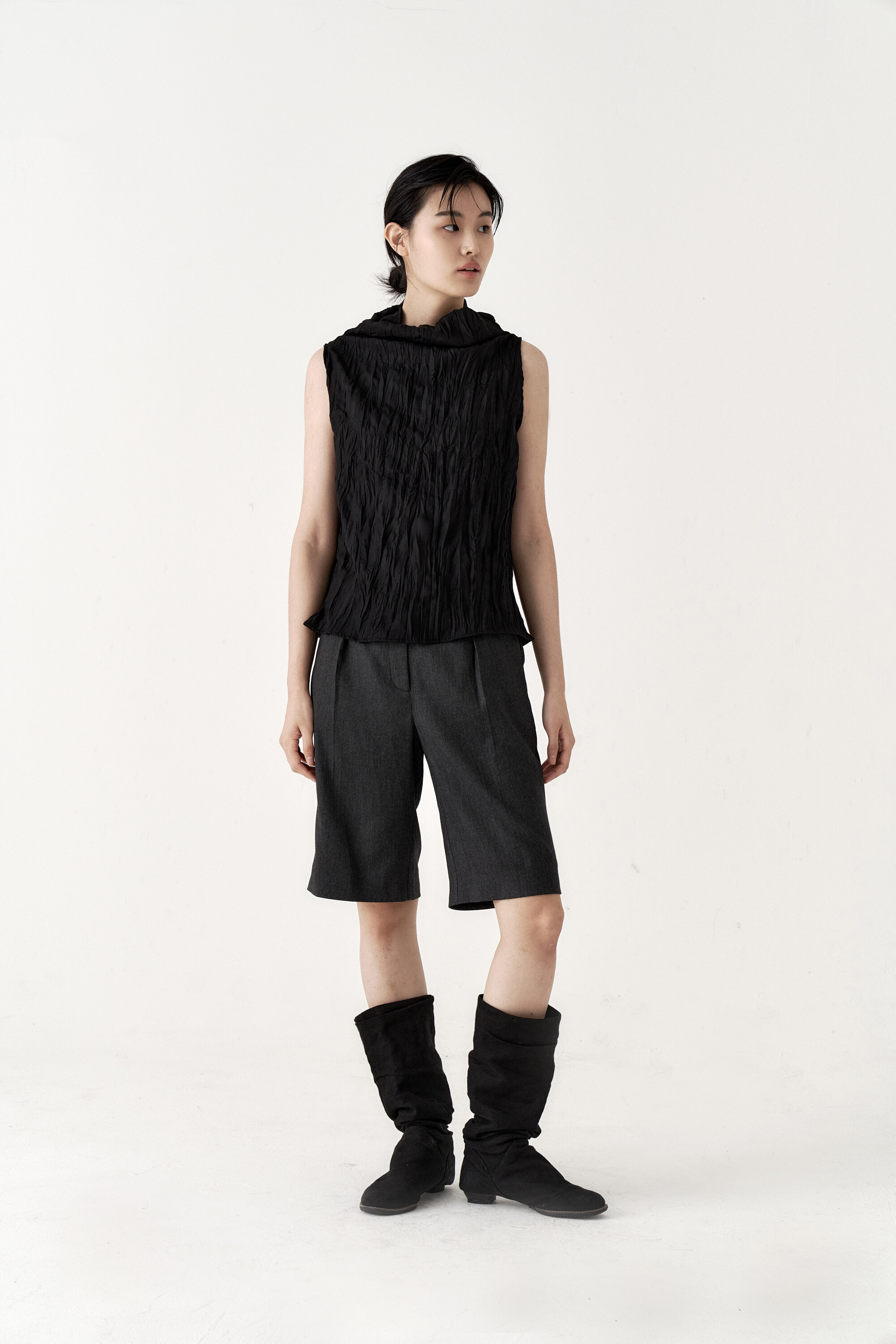 불규칙한 링클 원단으로 제작된 베스트입니다.