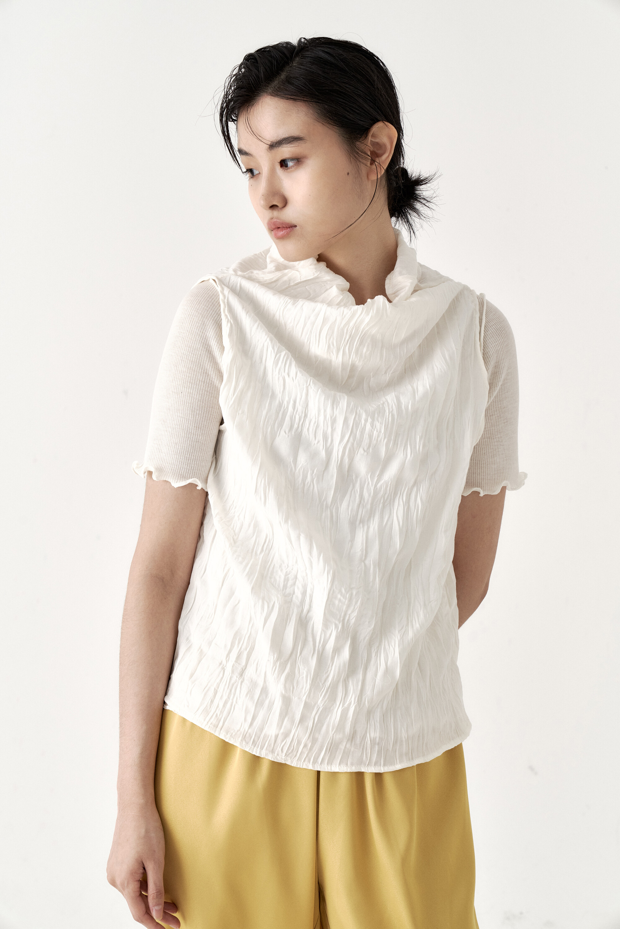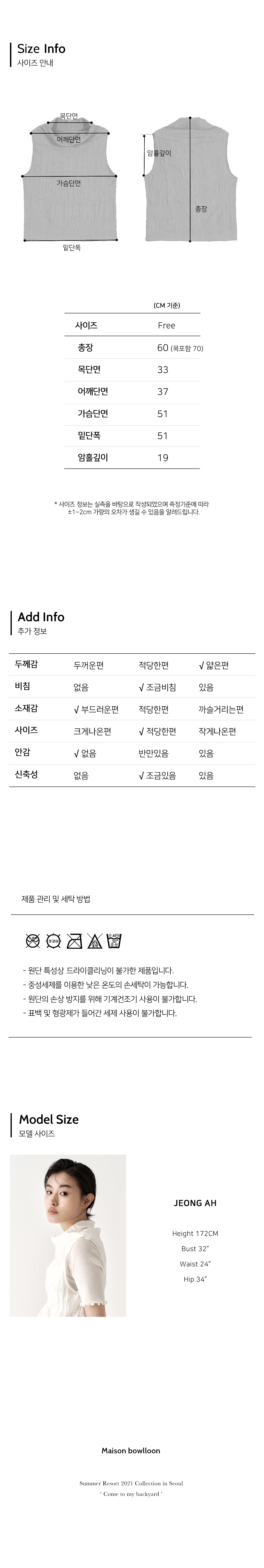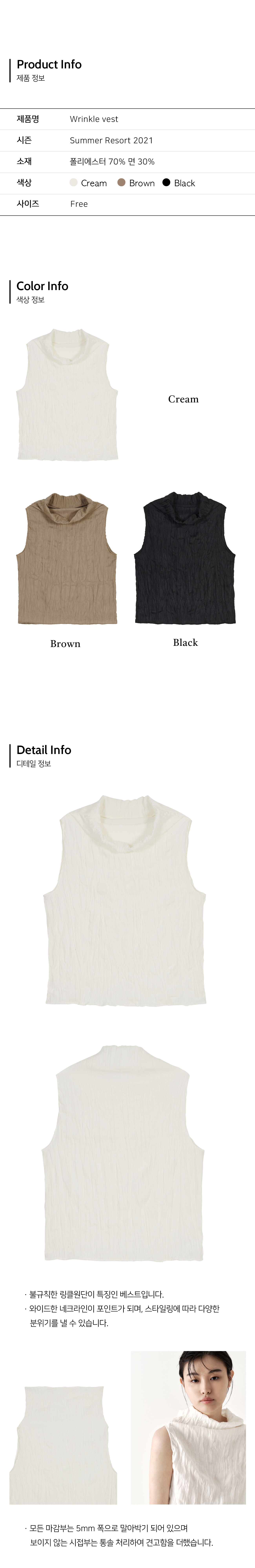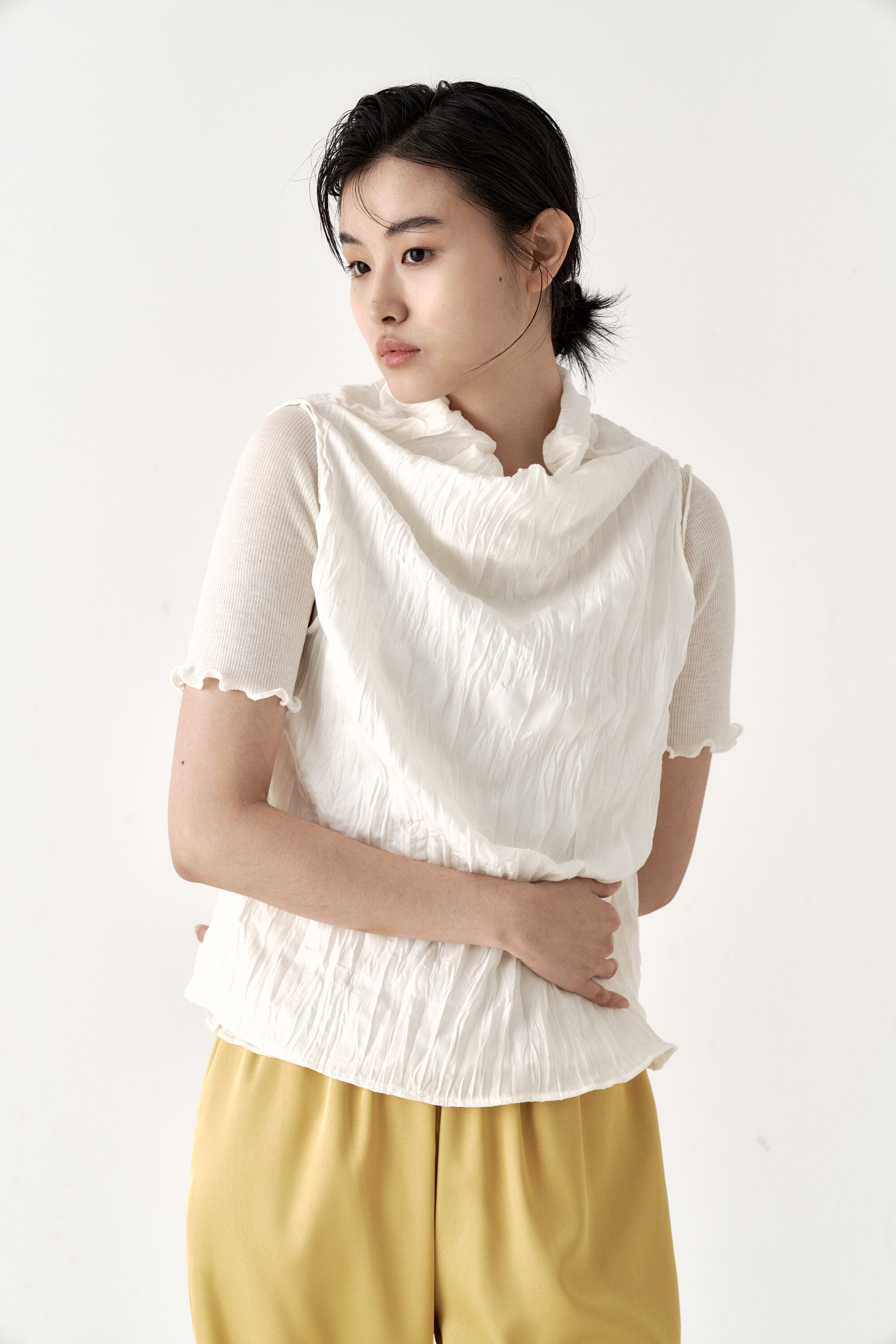 불규칙한 링클 원단으로 제작된 베스트입니다.