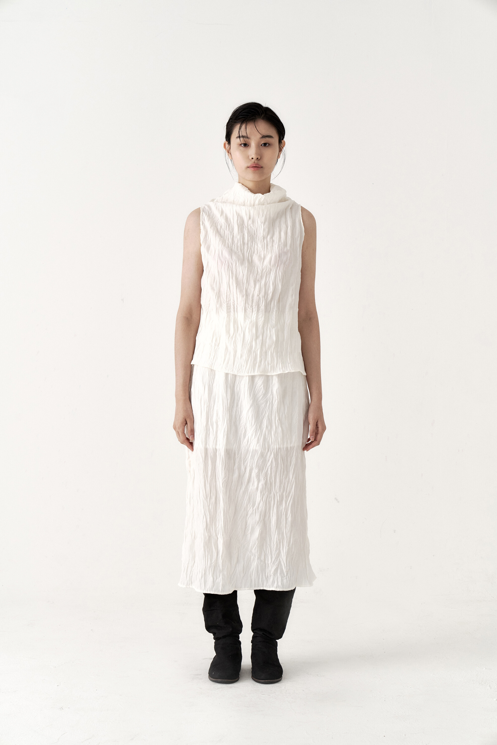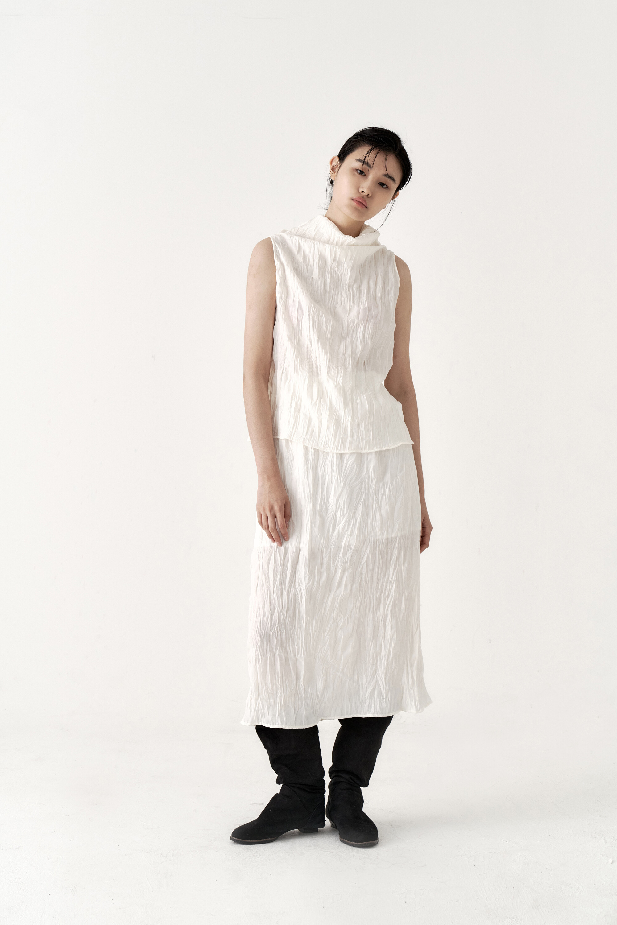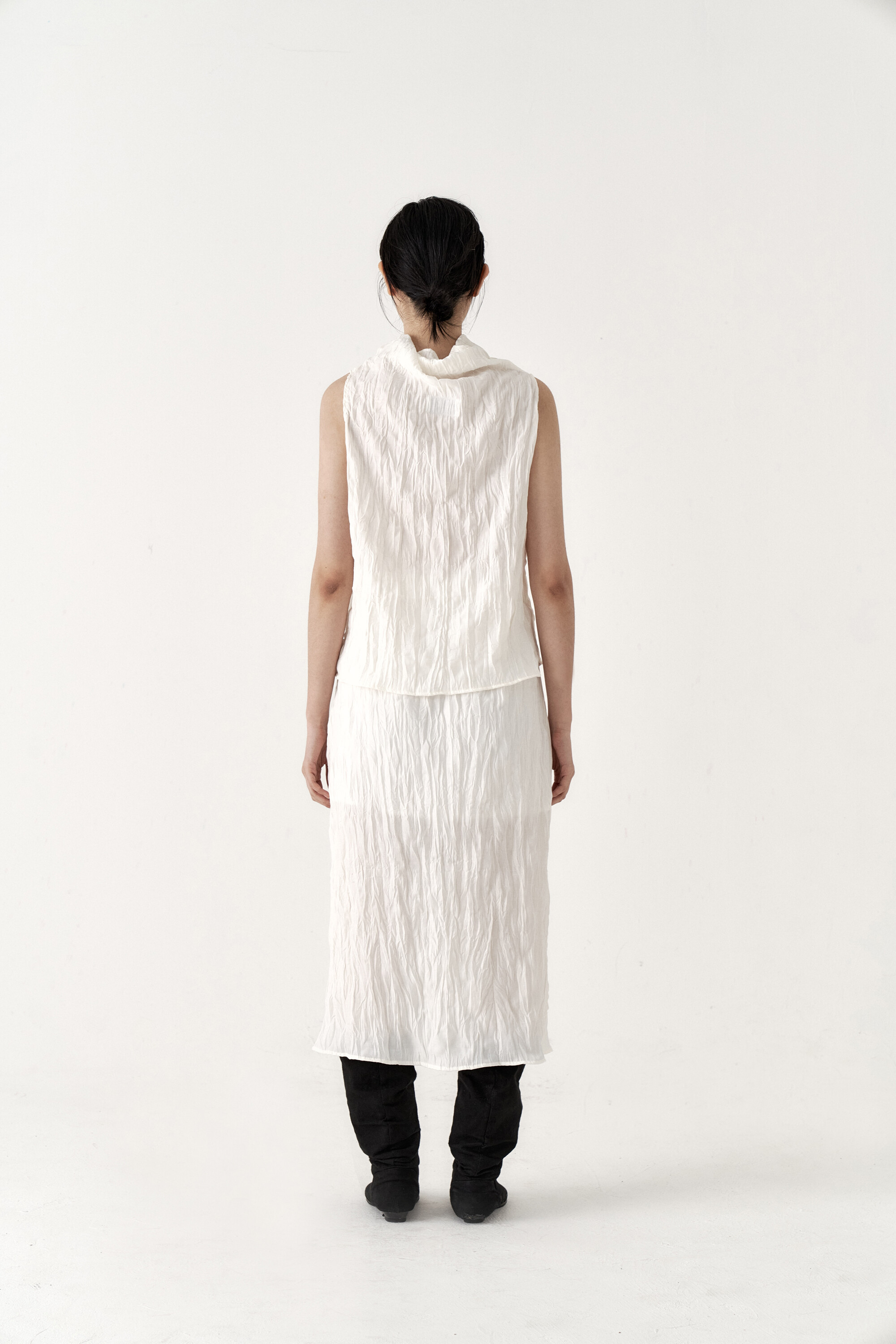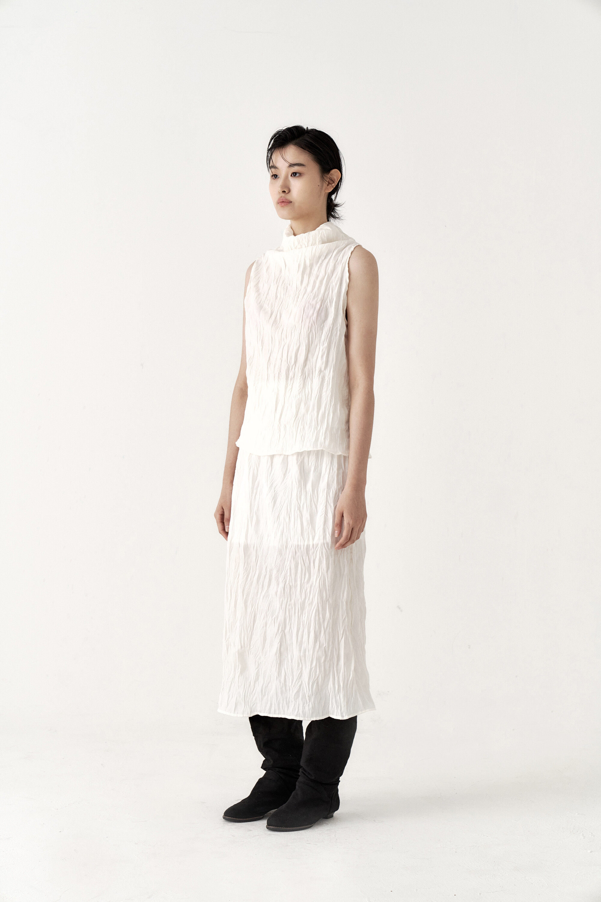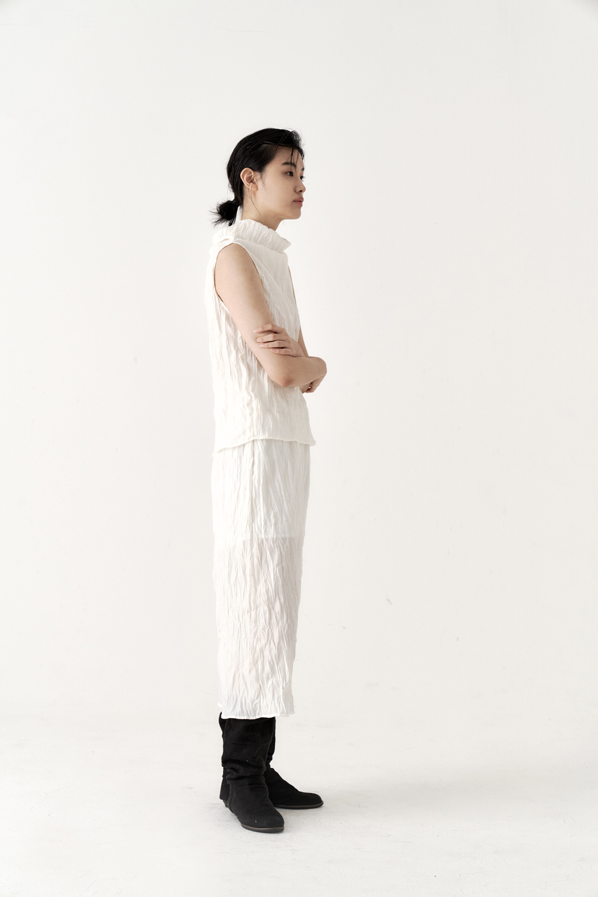불규칙한 링클 원단으로 제작된 베스트입니다.