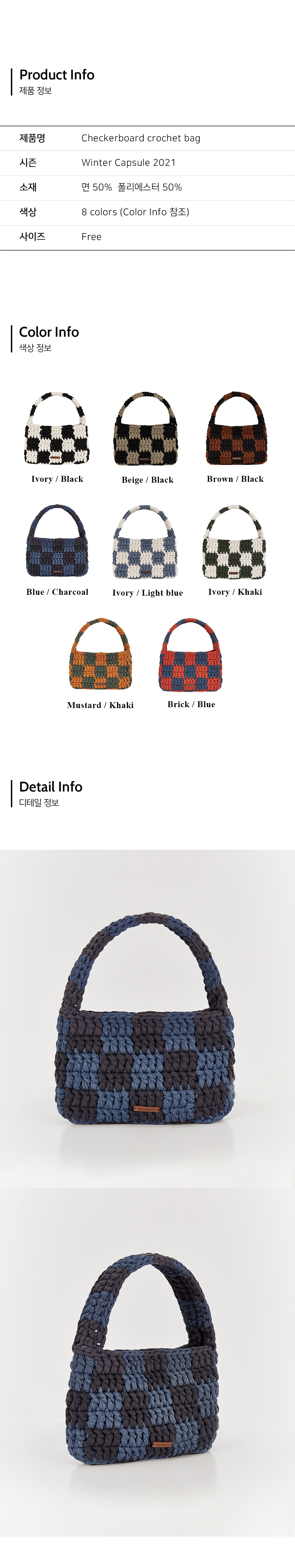 · DESCRIPTION 핸드메이드 방식으로 짜여진 체커보드 패턴의 백입니다. 50cm 길이의 스트랩으로 토트, 숄더 모두 착용가능한 디자인입니다. 탄탄한 짜임으로 이너백 없이도 수납에 불편함이 없으며, 내부 상단에는 자석버튼으로 여밈이 가능합니다. 외부 하단에는 가죽으로 제작된 로고라벨이 부착되어 있습니다.