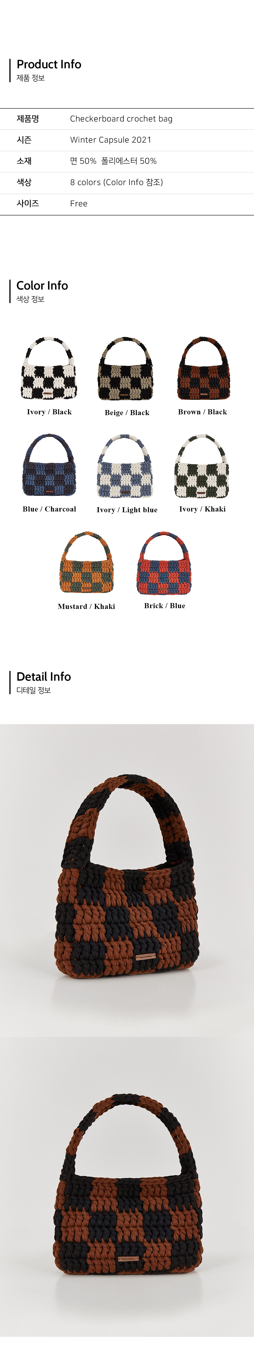 · DESCRIPTION 핸드메이드 방식으로 짜여진 체커보드 패턴의 백입니다. 50cm 길이의 스트랩으로 토트, 숄더 모두 착용가능한 디자인입니다. 탄탄한 짜임으로 이너백 없이도 수납에 불편함이 없으며, 내부 상단에는 자석버튼으로 여밈이 가능합니다. 외부 하단에는 가죽으로 제작된 로고라벨이 부착되어 있습니다.