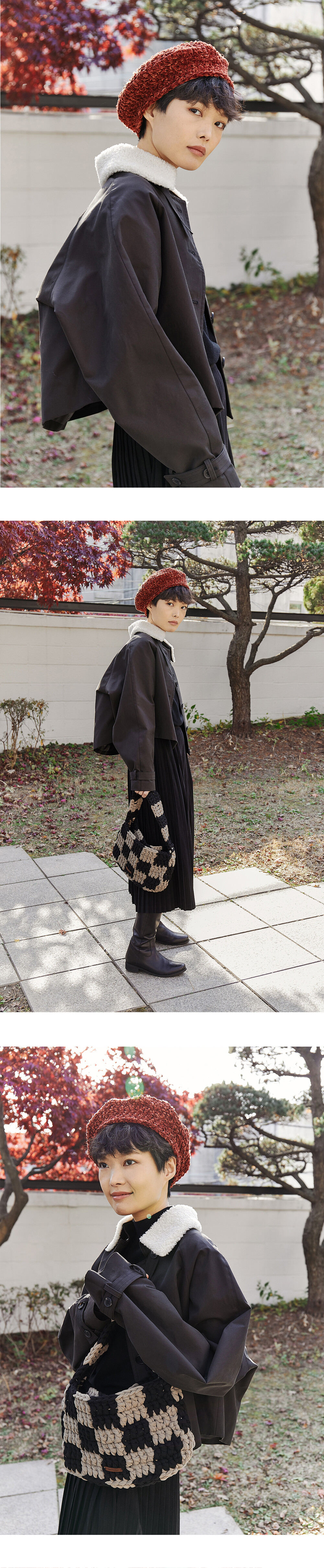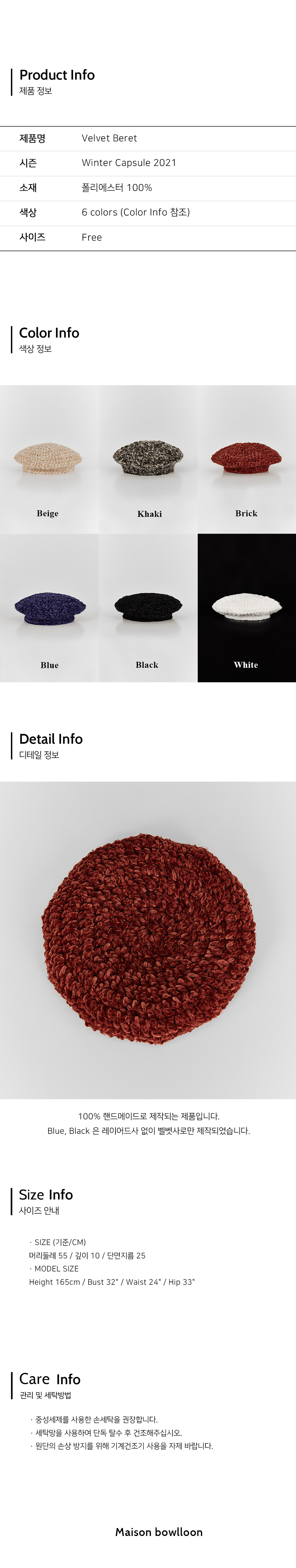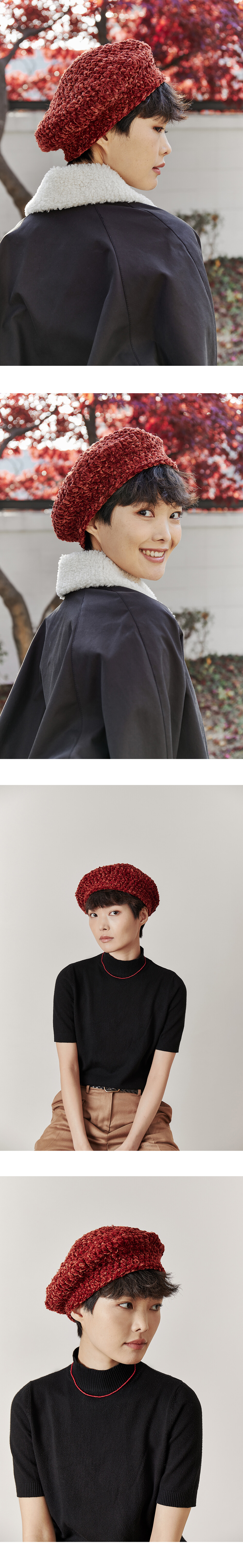 핸드메이드 방식으로 짜여진 벨벳 베레입니다.