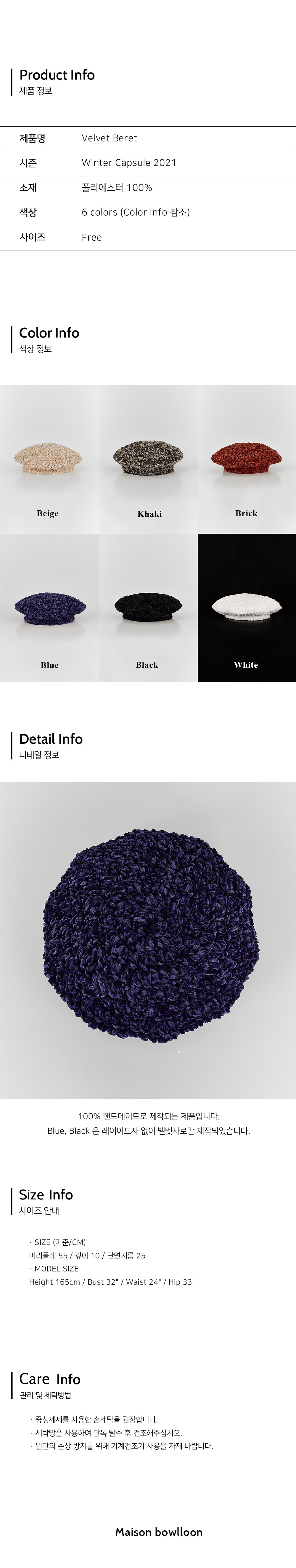 핸드메이드 방식으로 짜여진 벨벳 베레입니다.