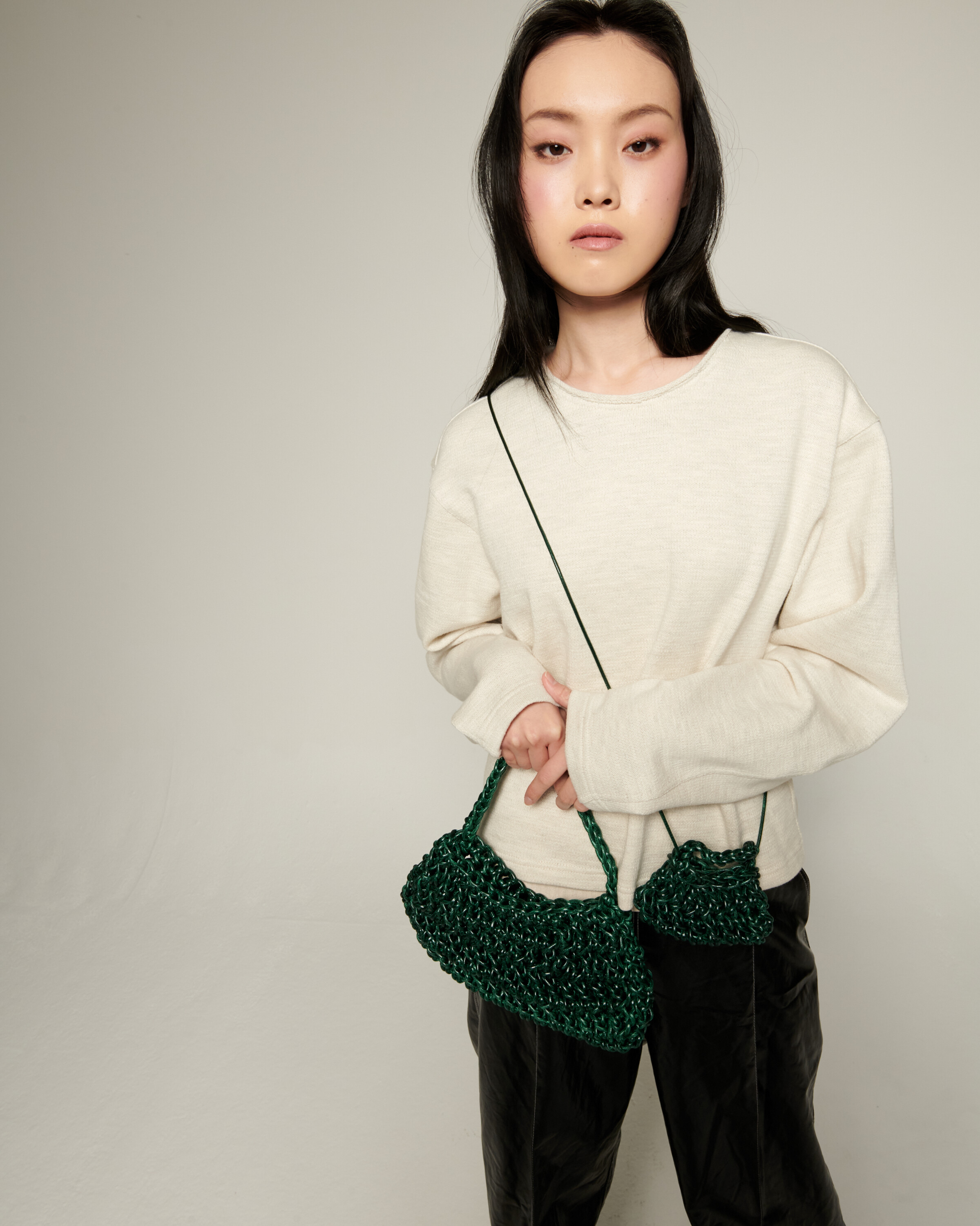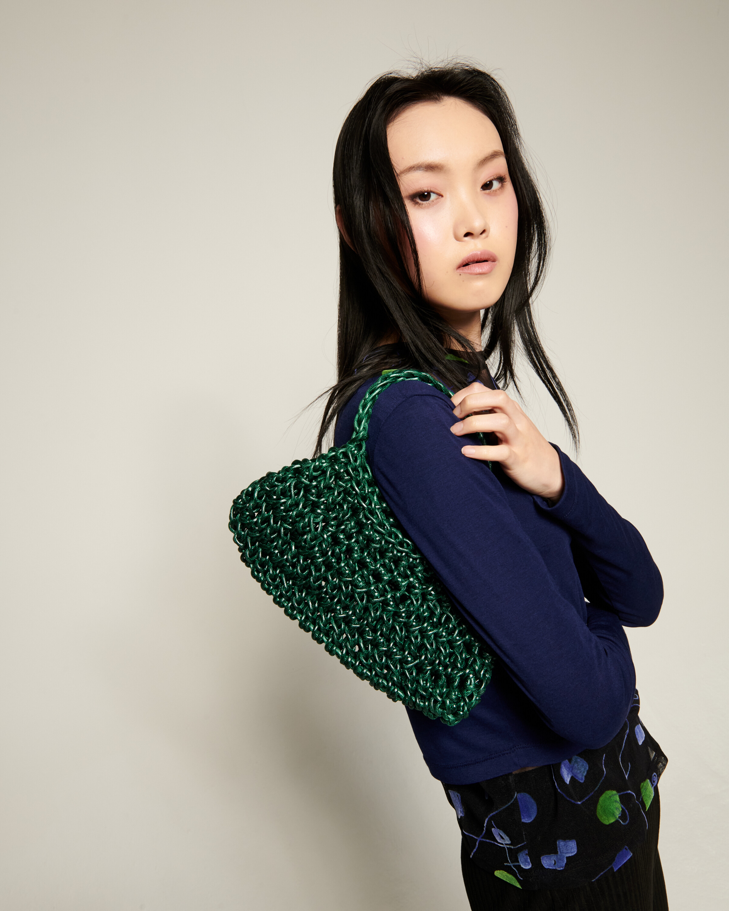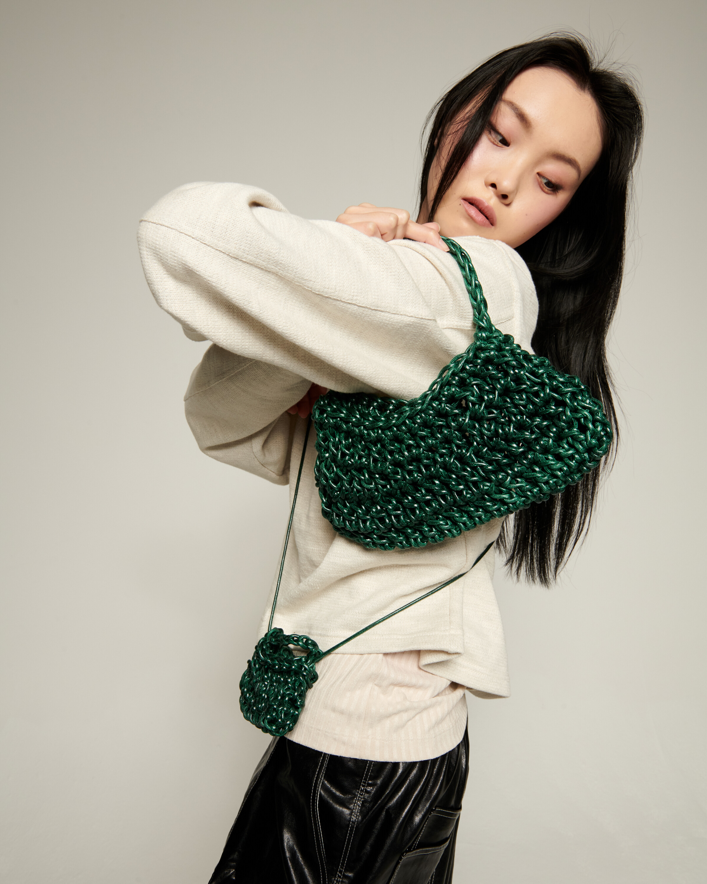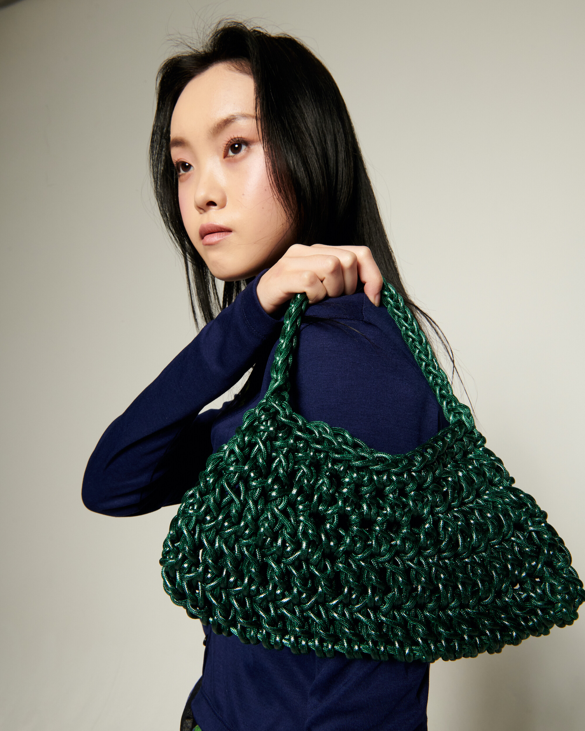 - 코바늘 기법으로 제작된 핸드메이드 토트백