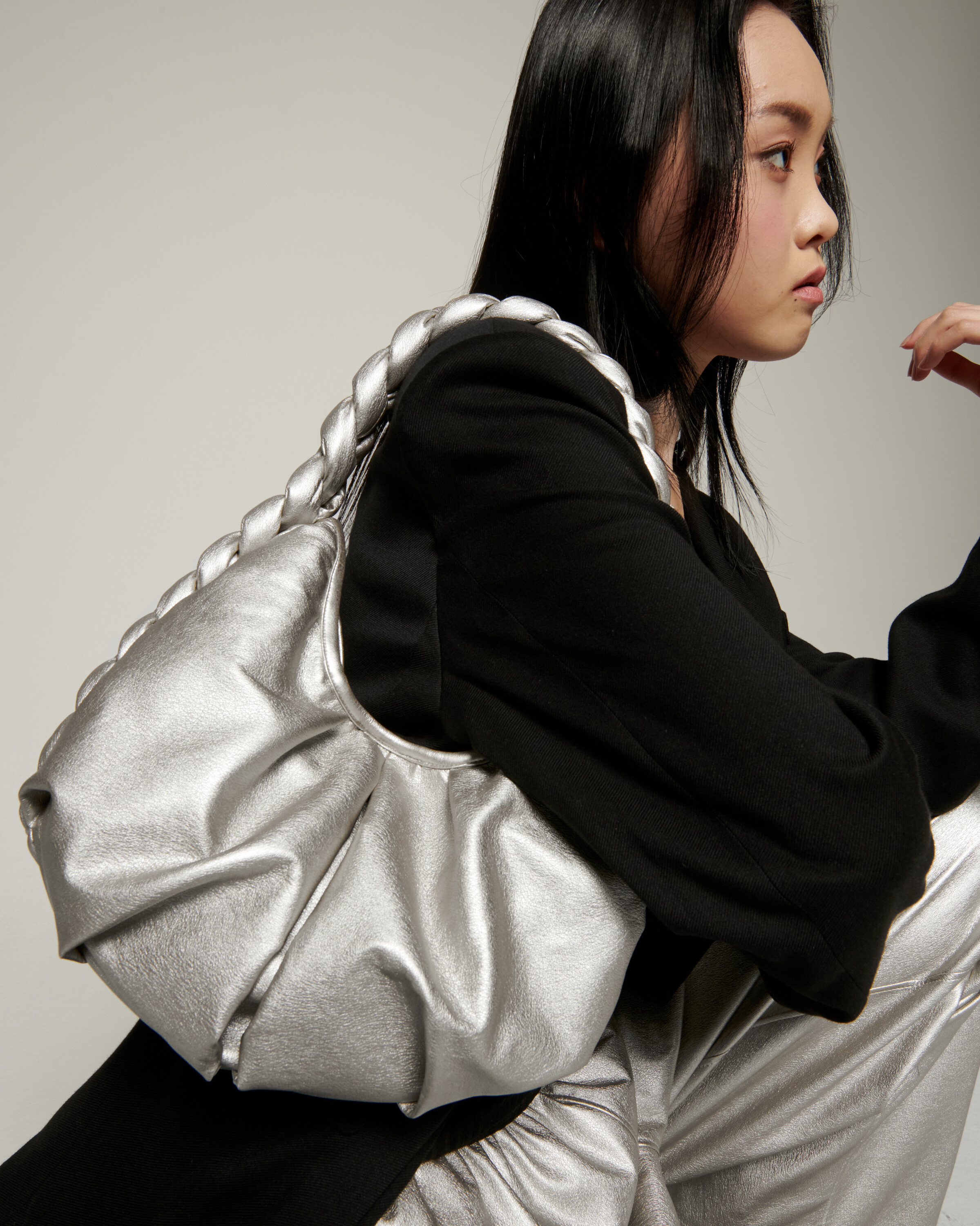 - 광택감이 있는 비건레더 사용
