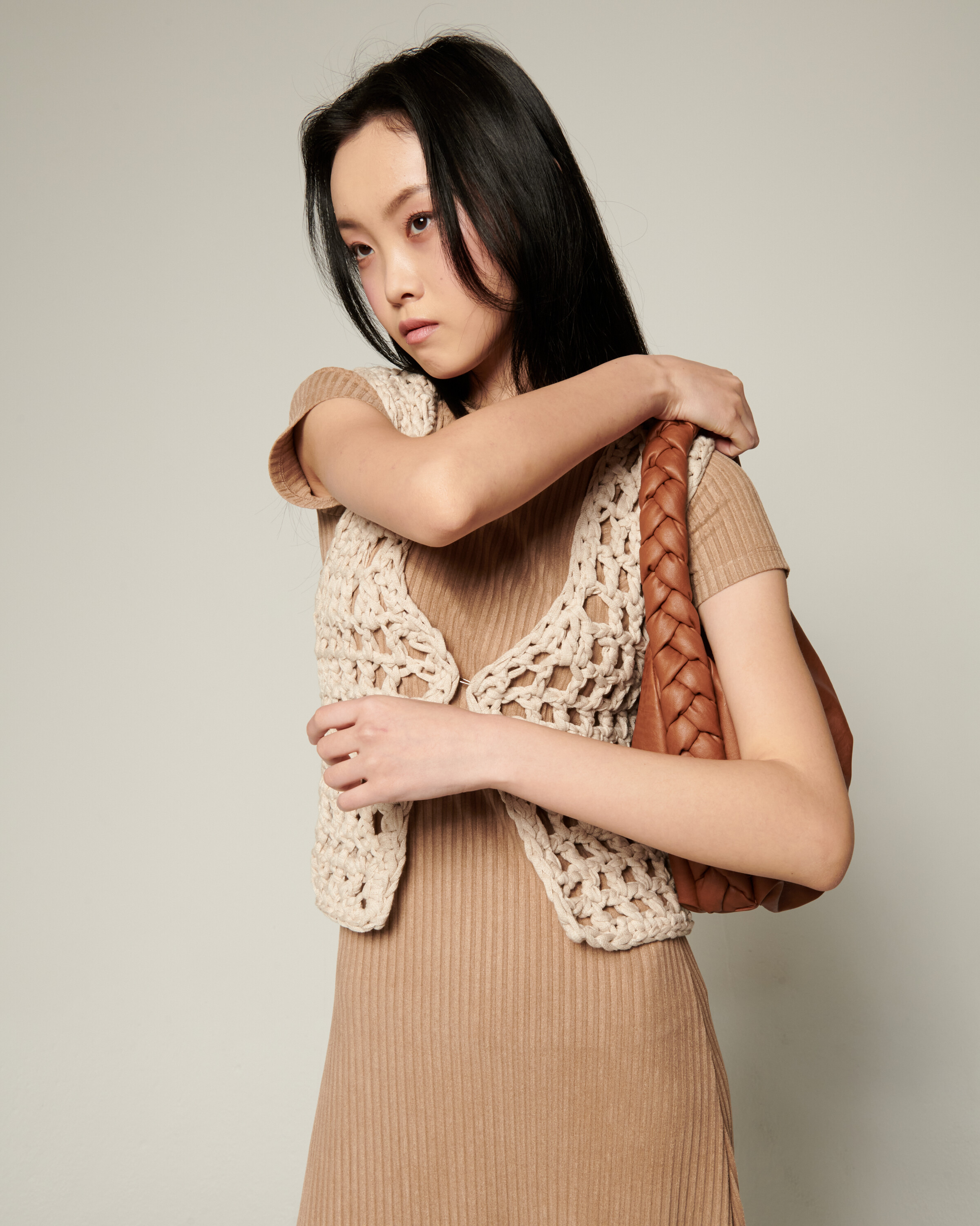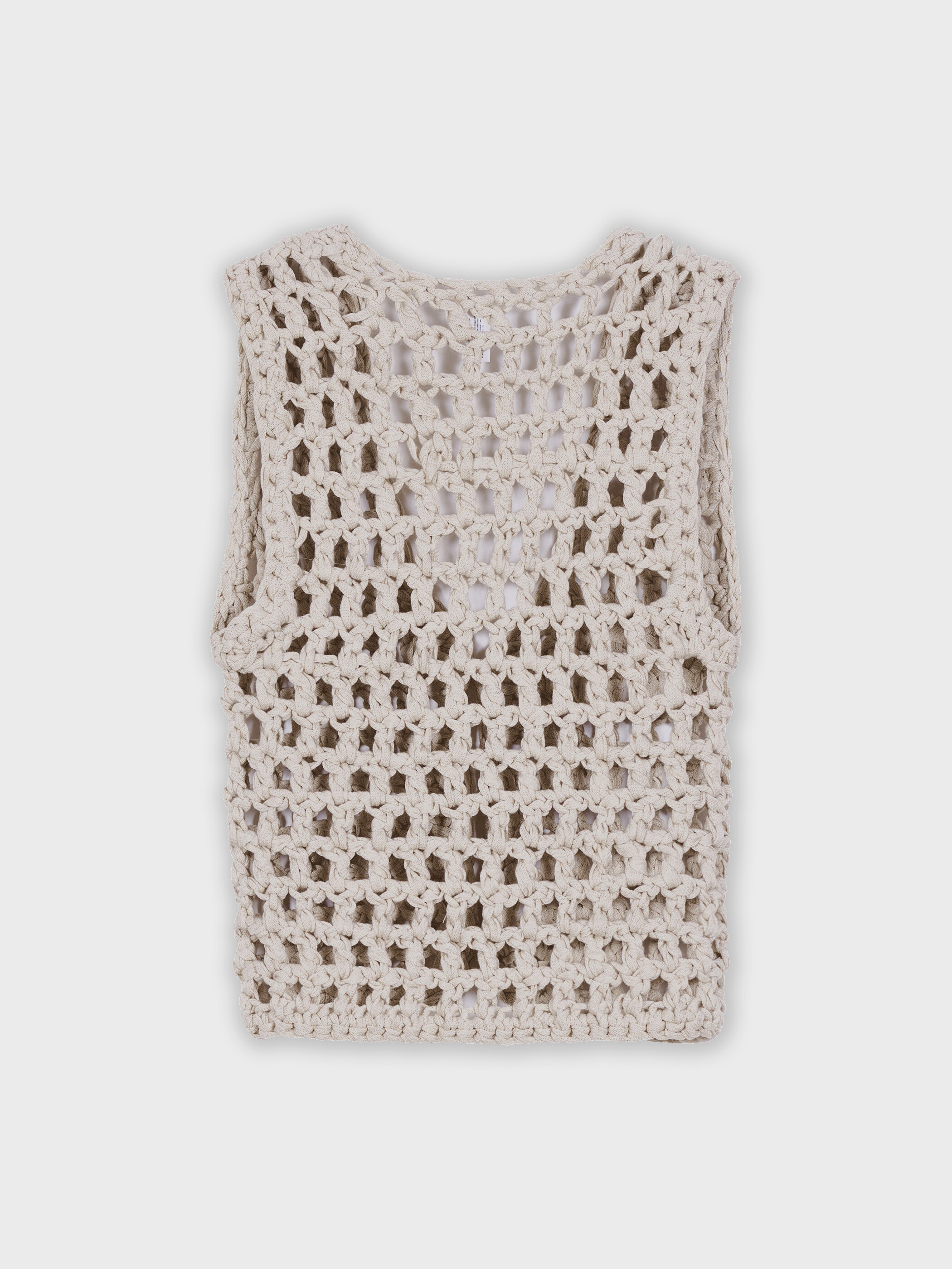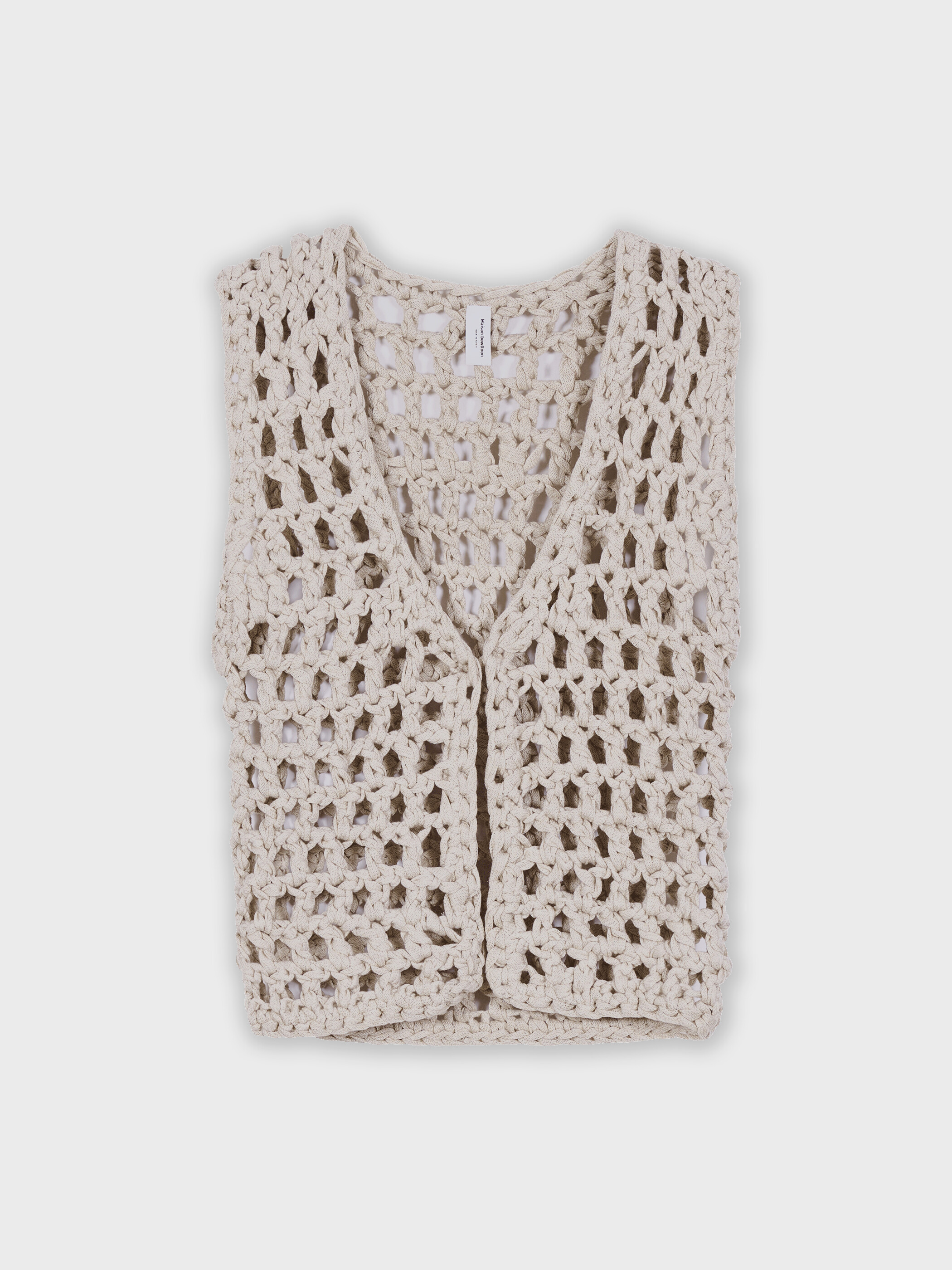 코튼 100%의 패브릭얀을 사용하여 핸드크로쉐 기법으로 짜여진 베스트입니다.