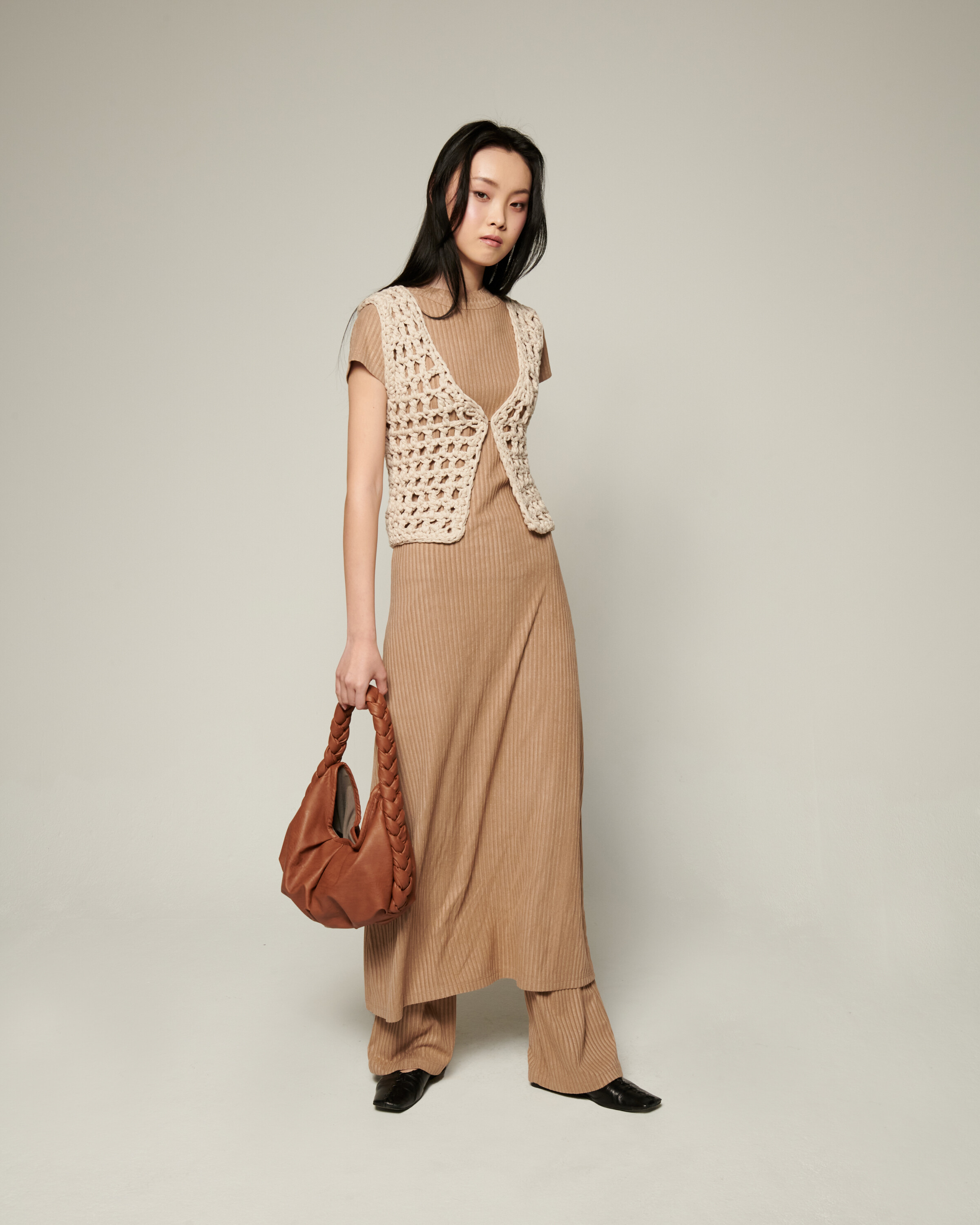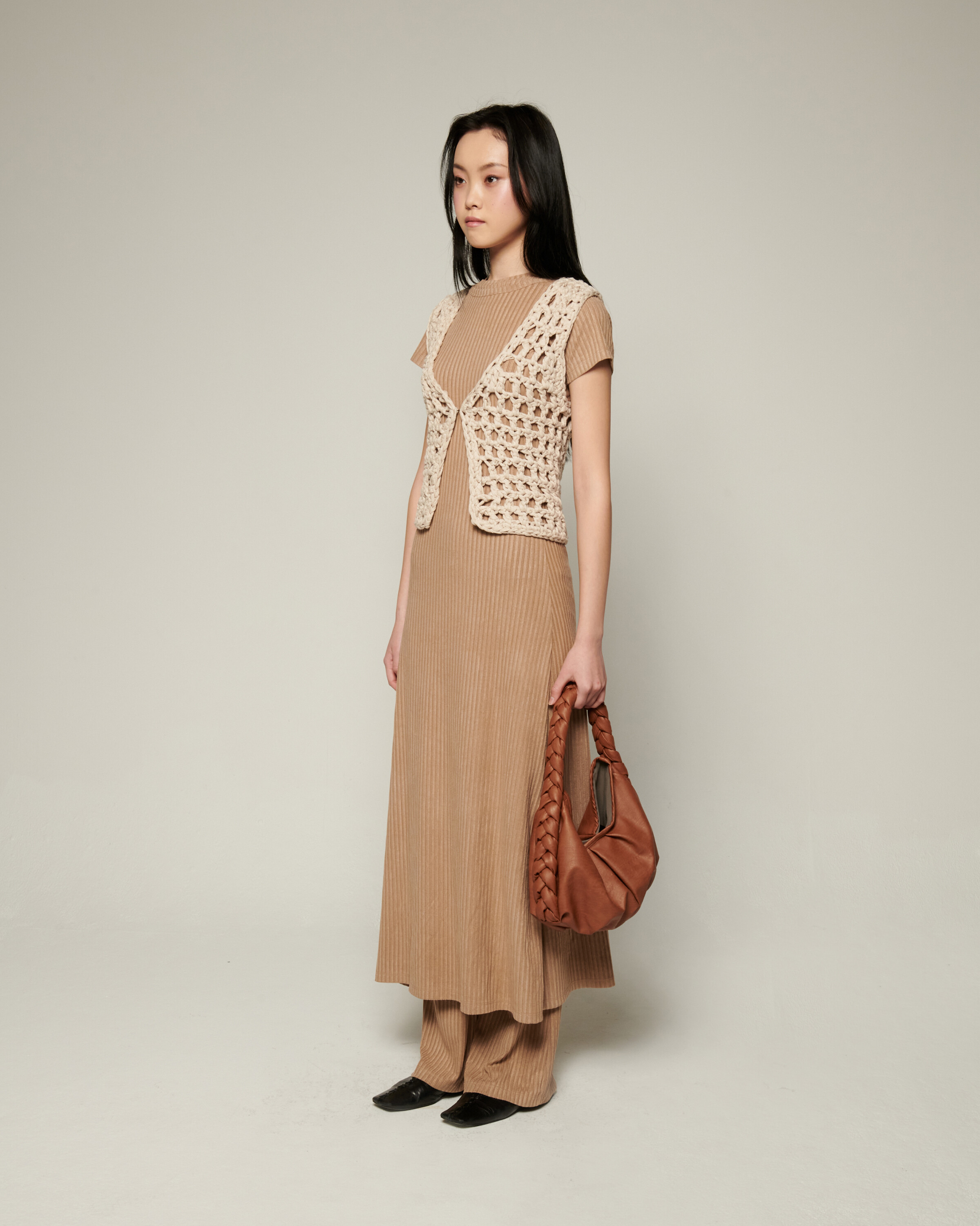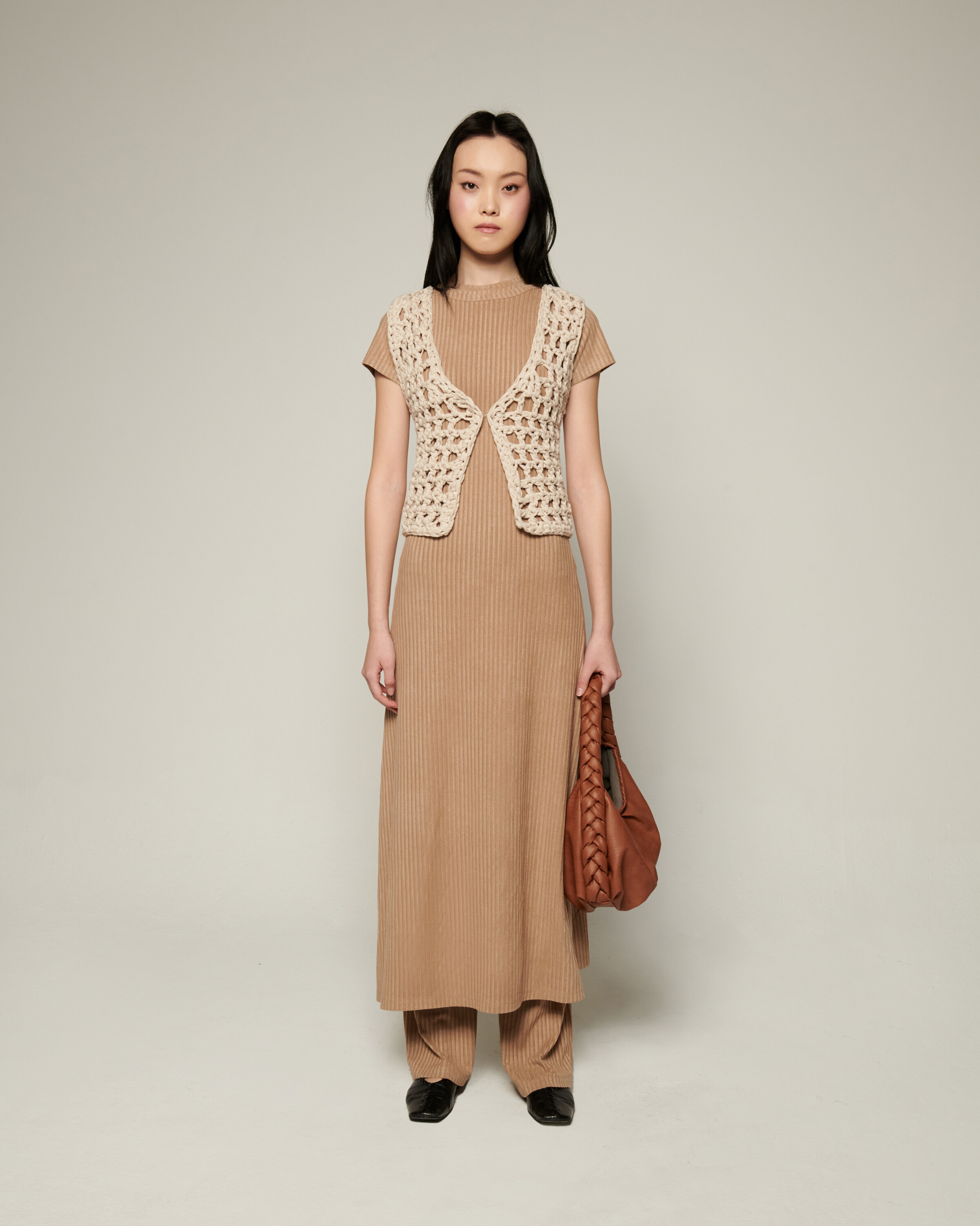코튼 100%의 패브릭얀을 사용하여 핸드크로쉐 기법으로 짜여진 베스트입니다.