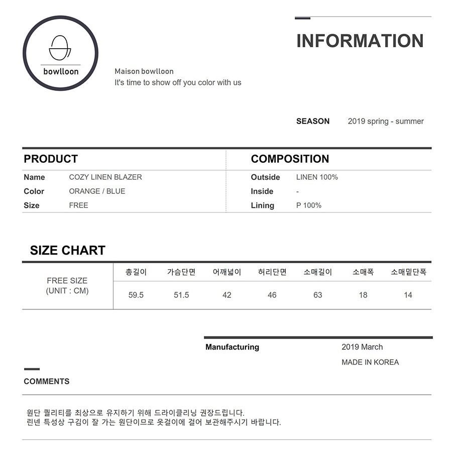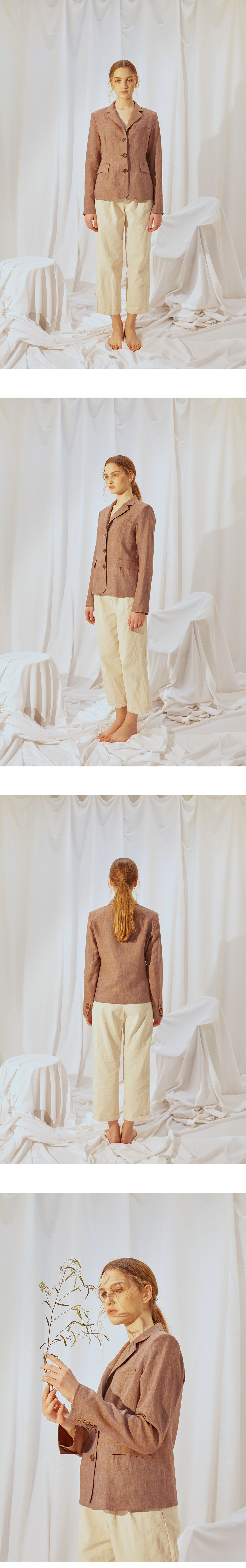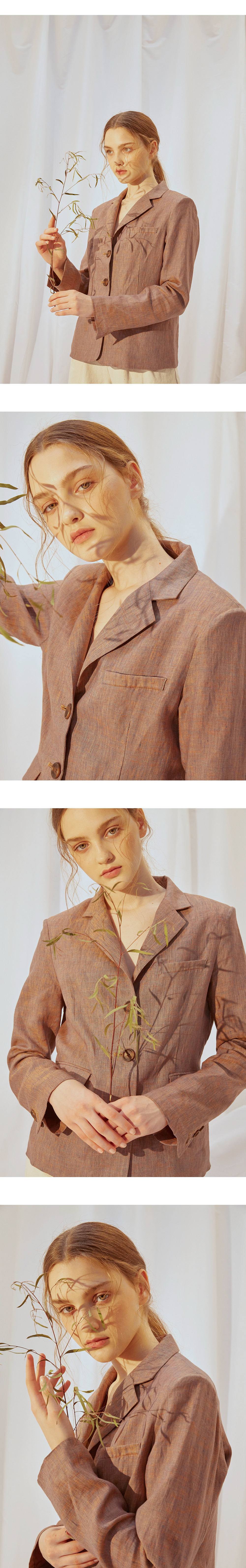 고급 린넨으로 제작된 가벼운 기장감의 블레이저입니다.